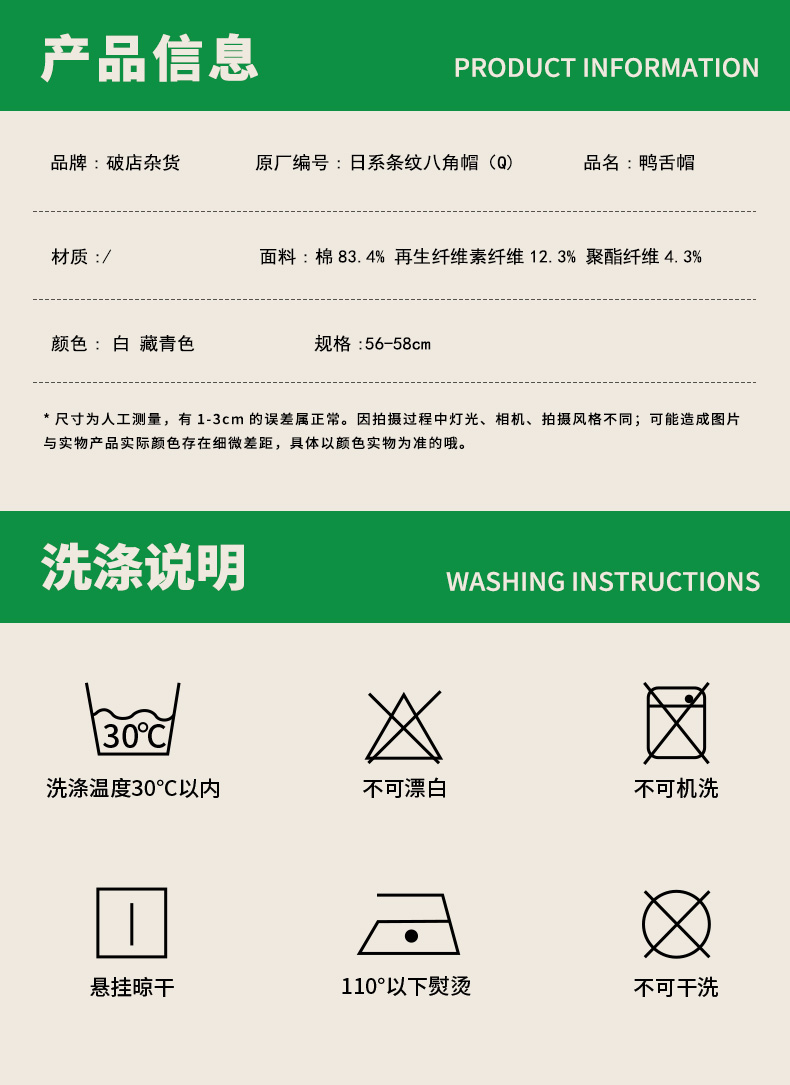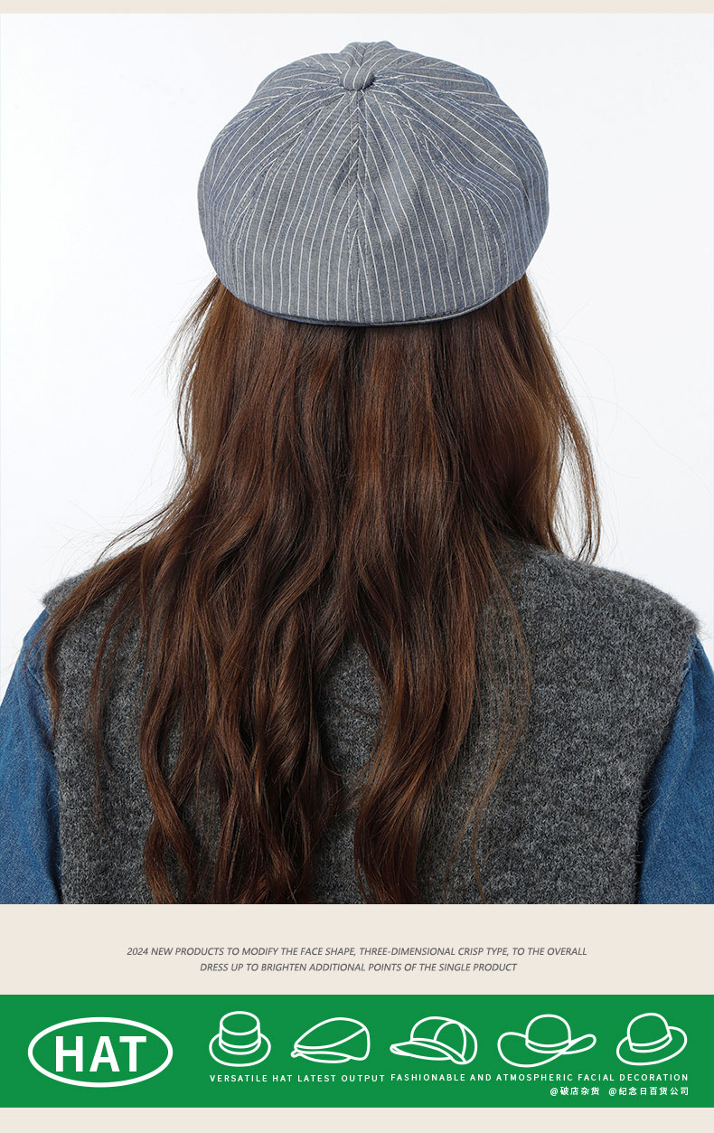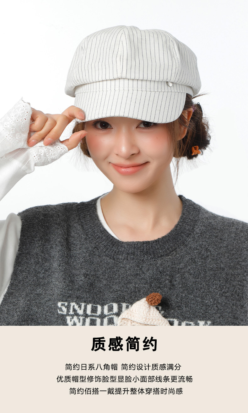 简约日系条纹八角帽鸭舌帽-纪念日百货门店同款169265338