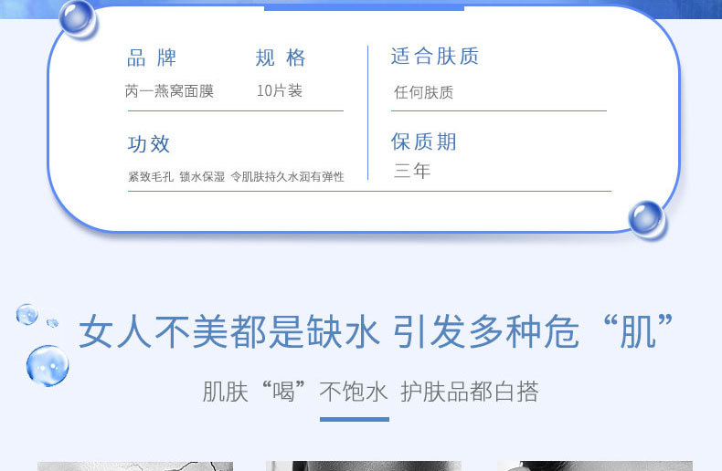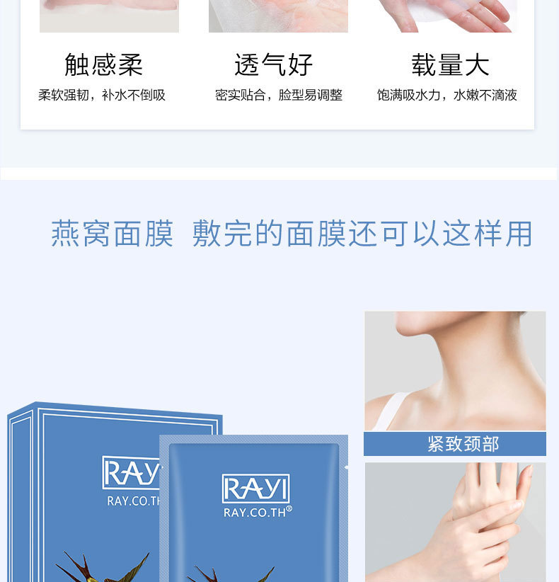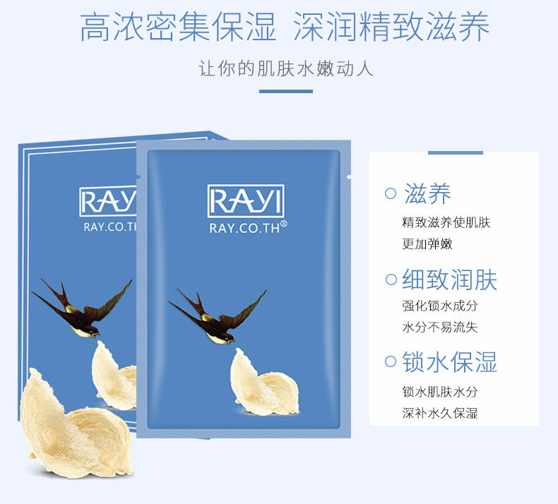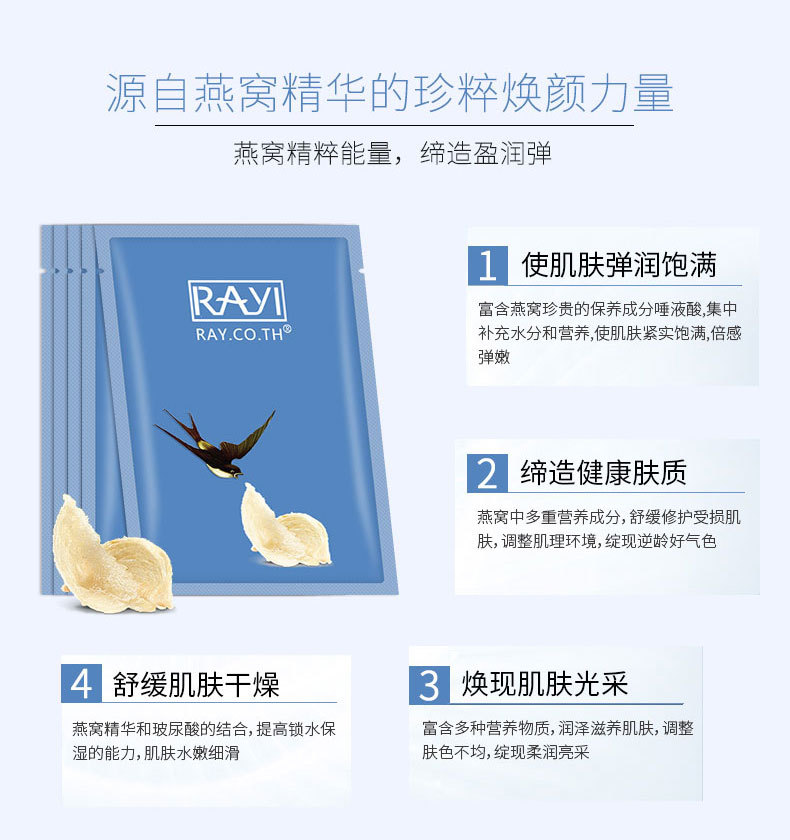LUER新品上市泰国RAYI燕窝蚕丝面膜补水保湿男女 35g*10片