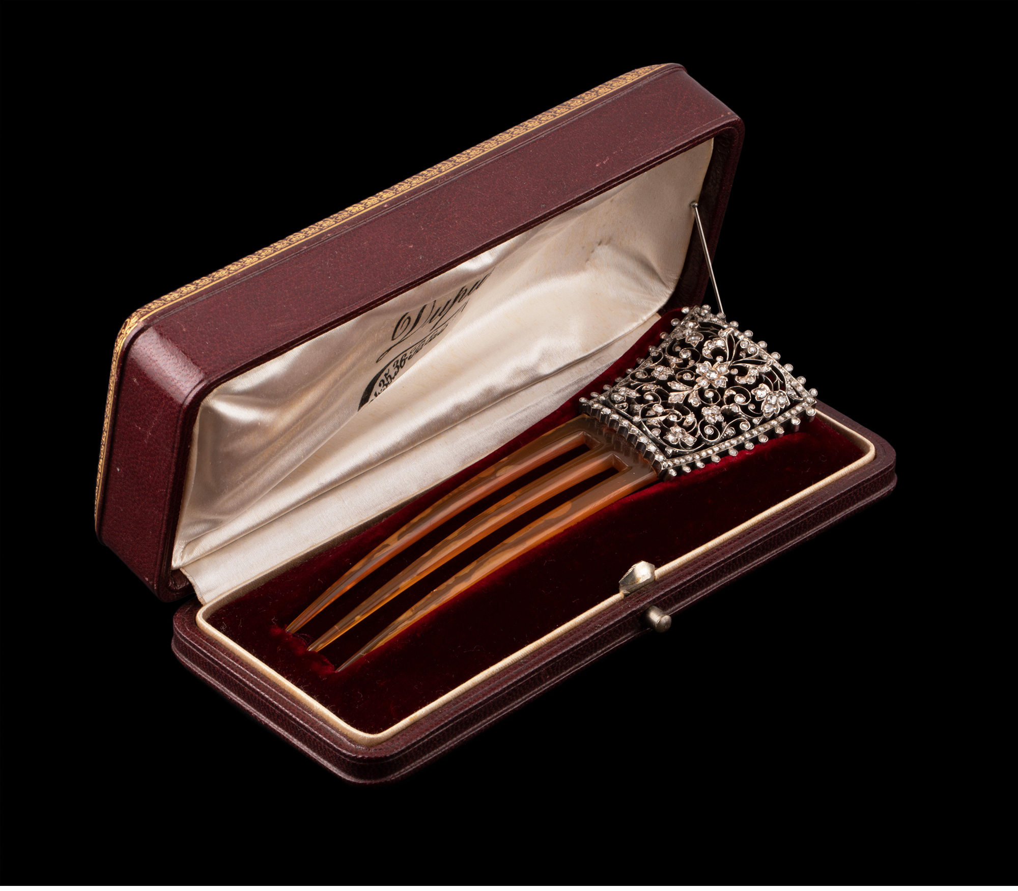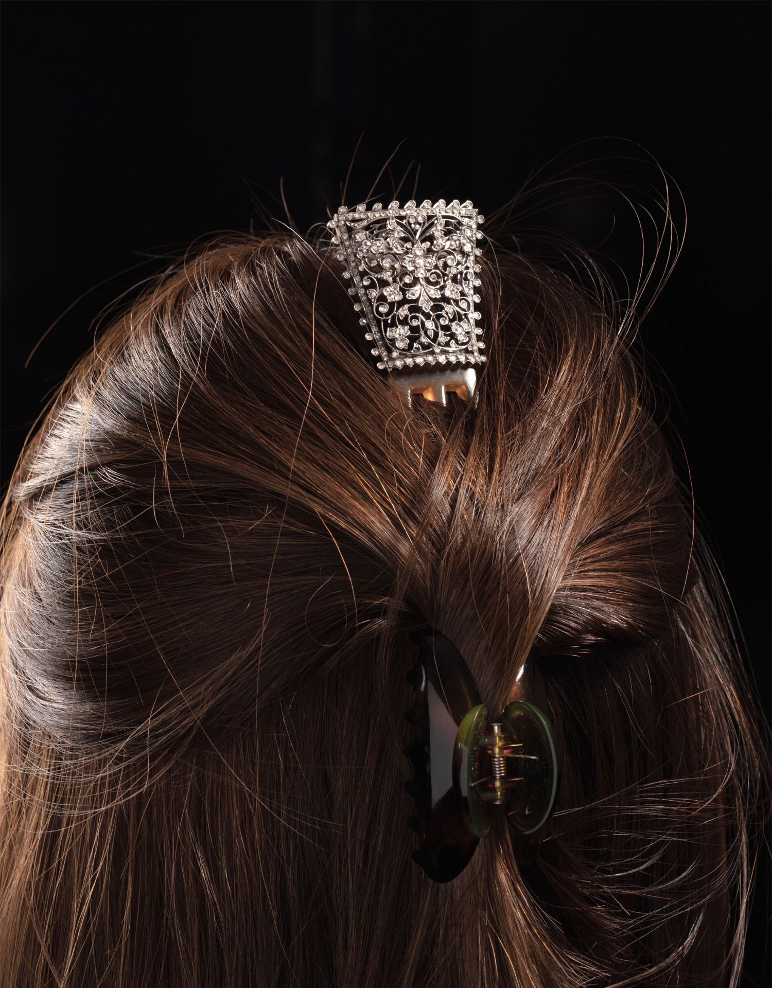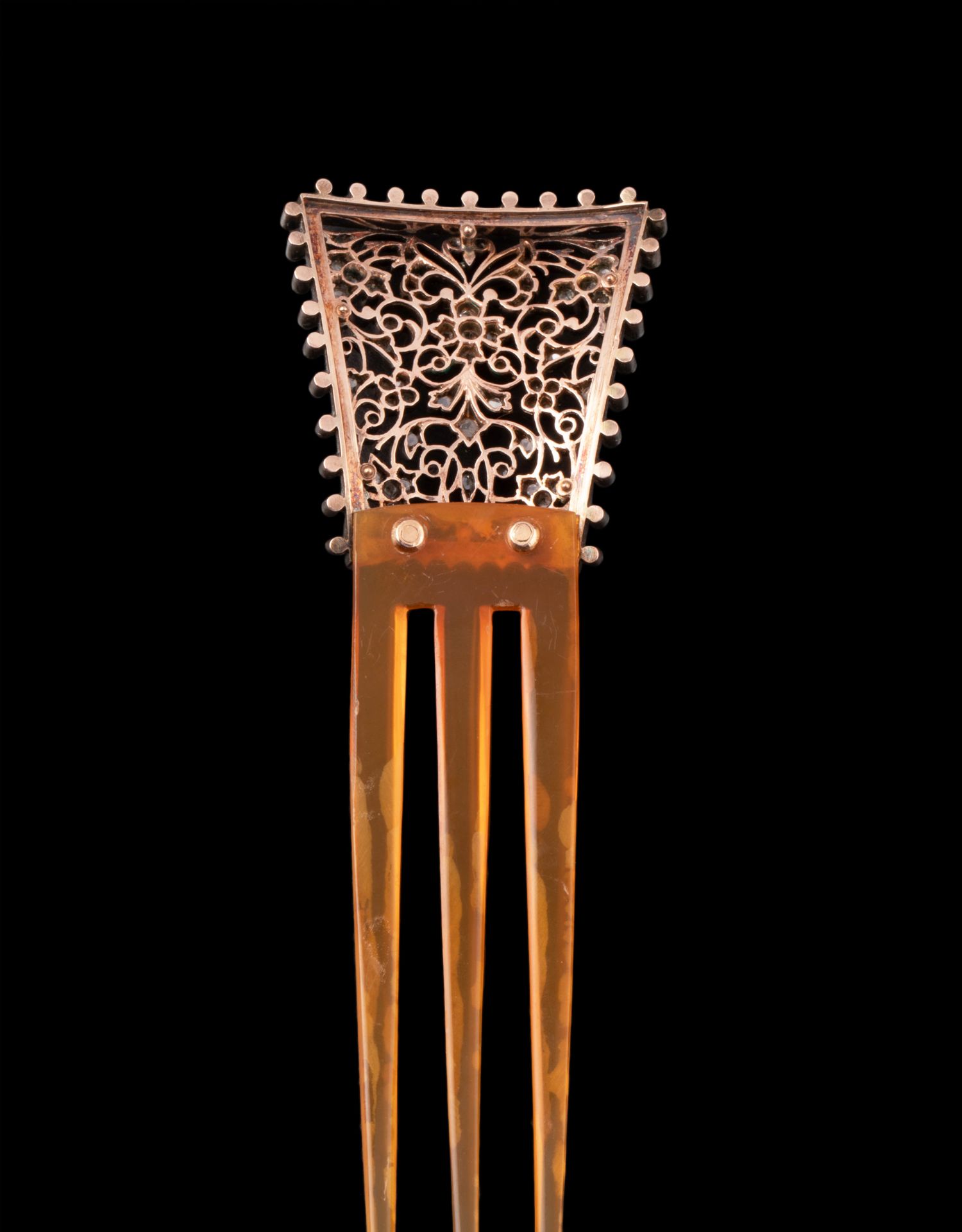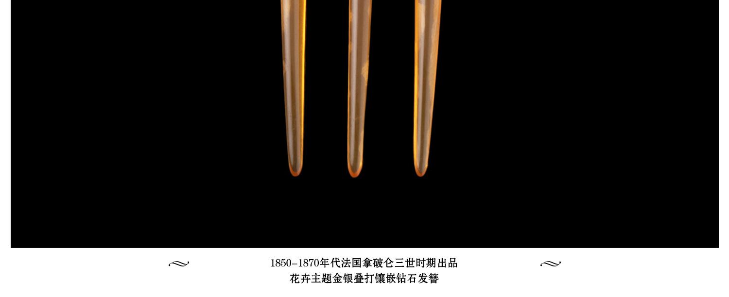 独角鹿西洋古董法国拿破仑三世时期花卉金银叠打镶嵌钻石发簪发饰