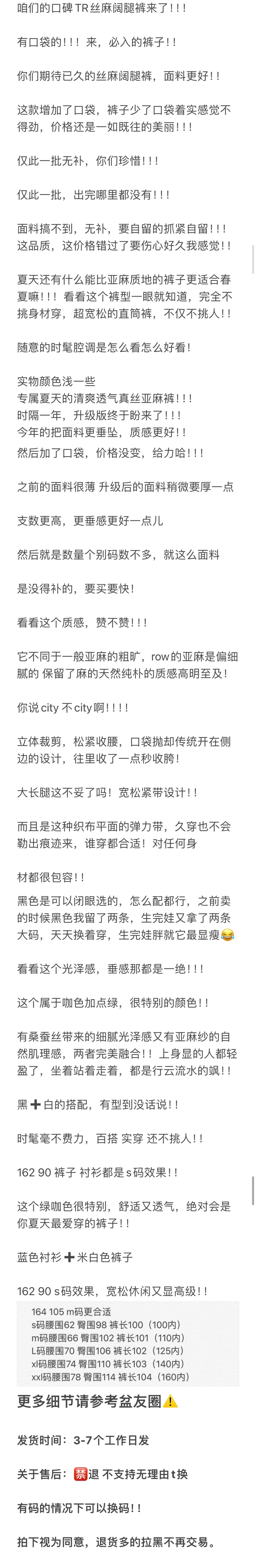 人手款!TR丝麻阔腿裤 复古光泽感 冰凉舒爽 亚麻空气裤!