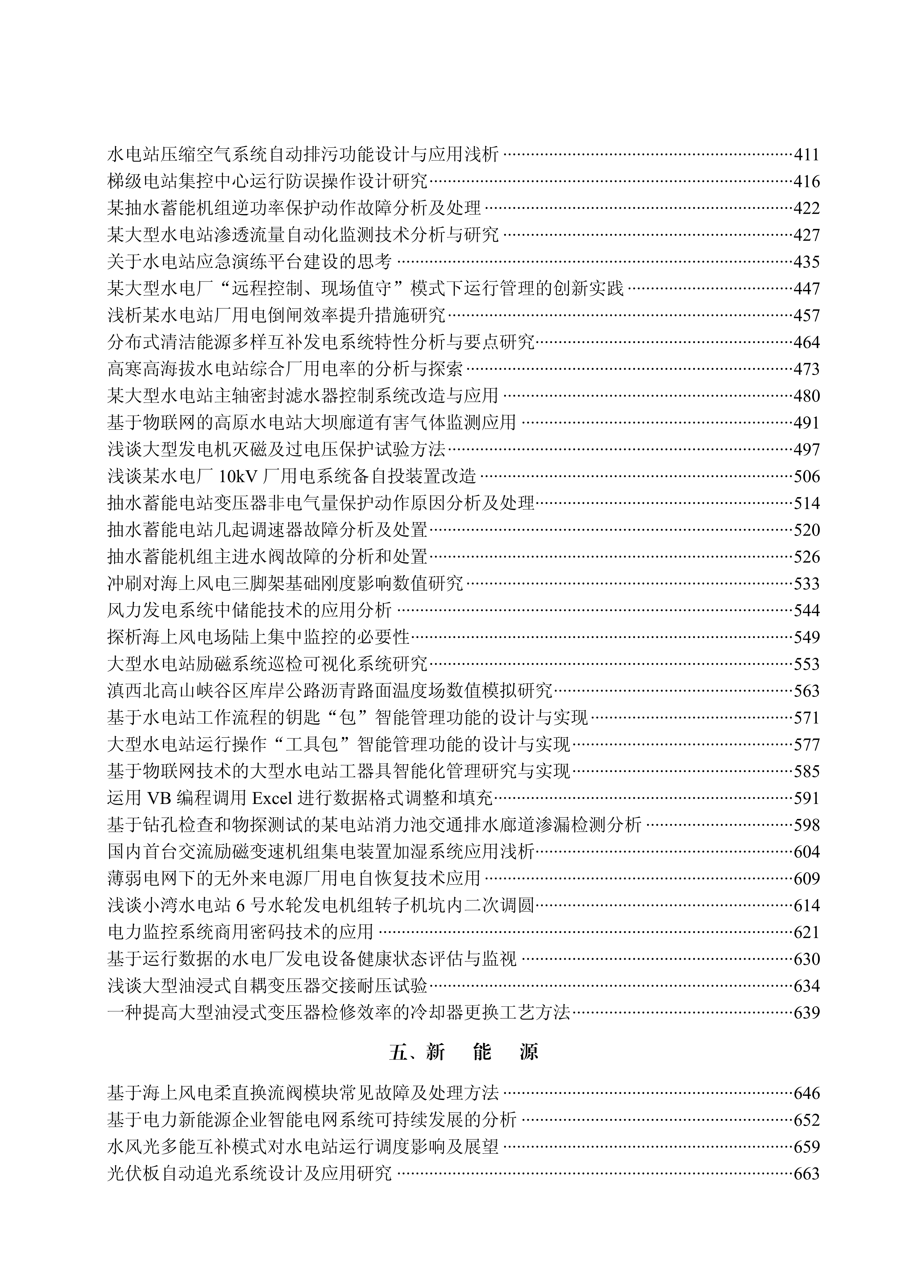 本论文集共收录论文100篇,涵盖规划勘察设计、机组装备试验与制造、施工实践、建设管理、运行与维护、新能源六个方向,基本反映了水电和新能源行业的工程实践及前沿热点问题,可供水电及新能源各专业领域的科技工作人员学习借鉴及参考。