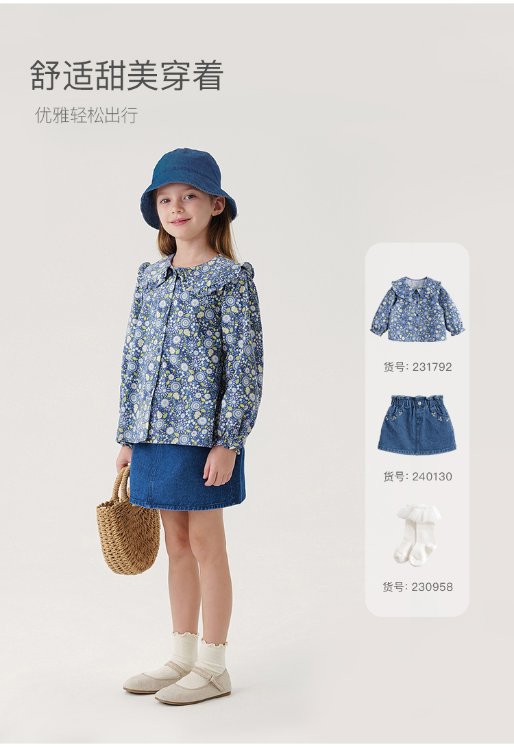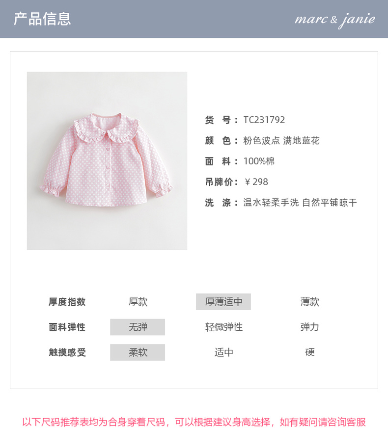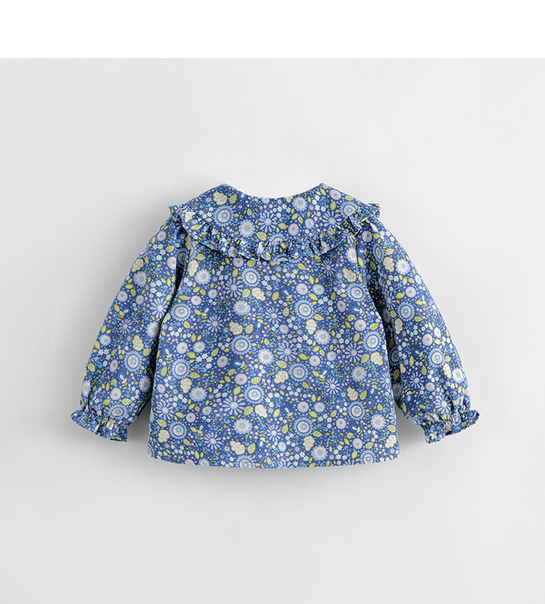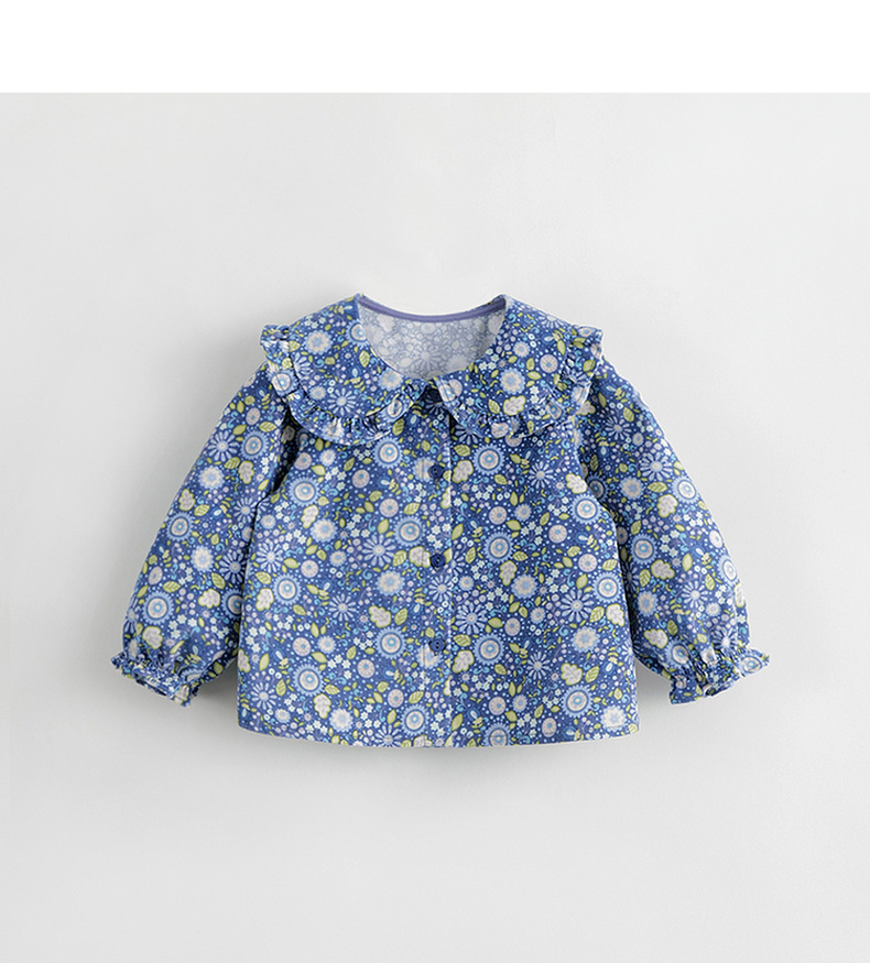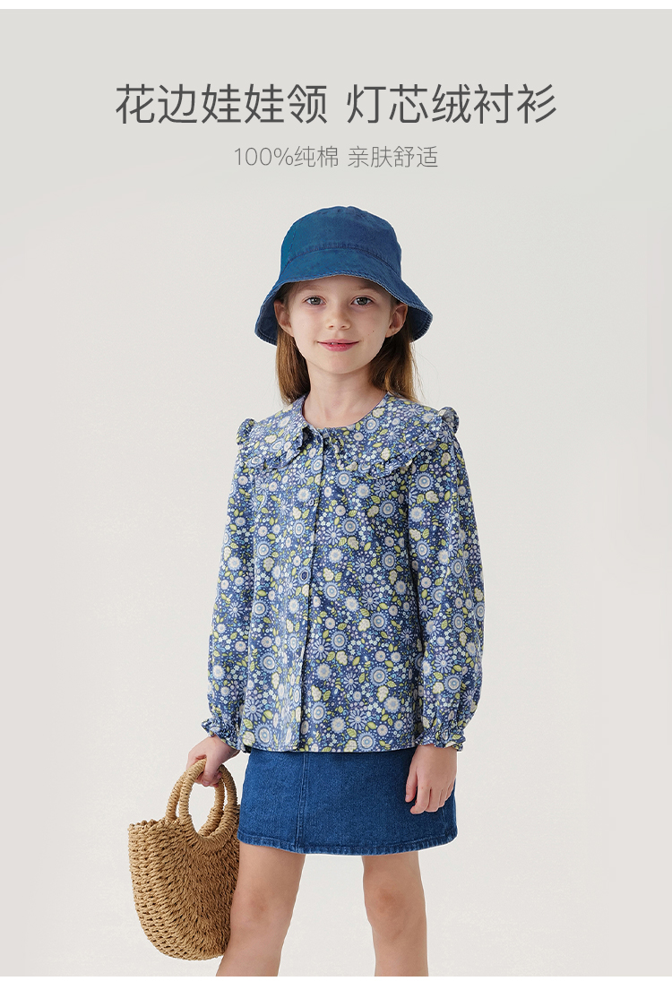 马克珍妮宝宝秋装新款 女童大翻领满印细灯芯绒衬衫娃娃衫231792