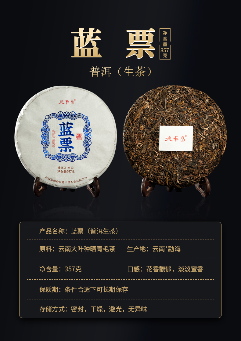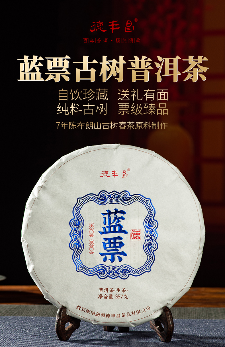 德丰昌7年老料【蓝票生茶】普洱茶357克/饼 布朗山茶区