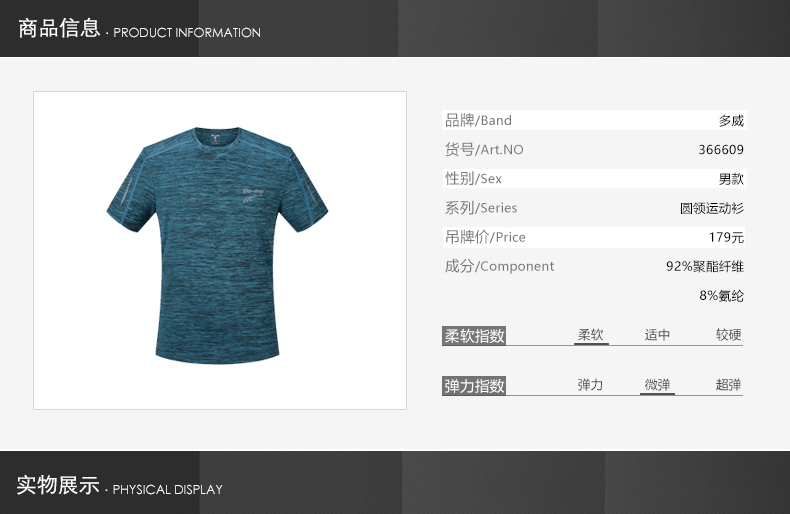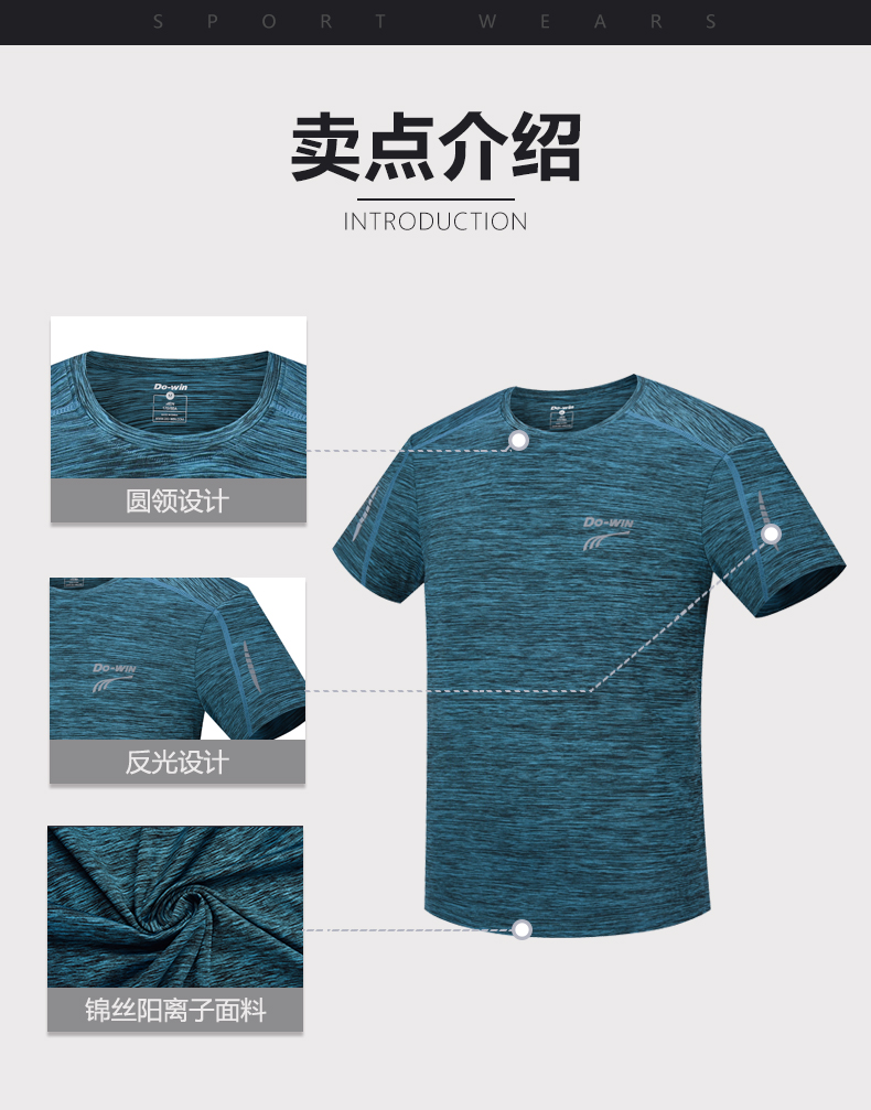 多威dowin运动T恤男圆领衫健身短袖男士透气休闲运动服366609
