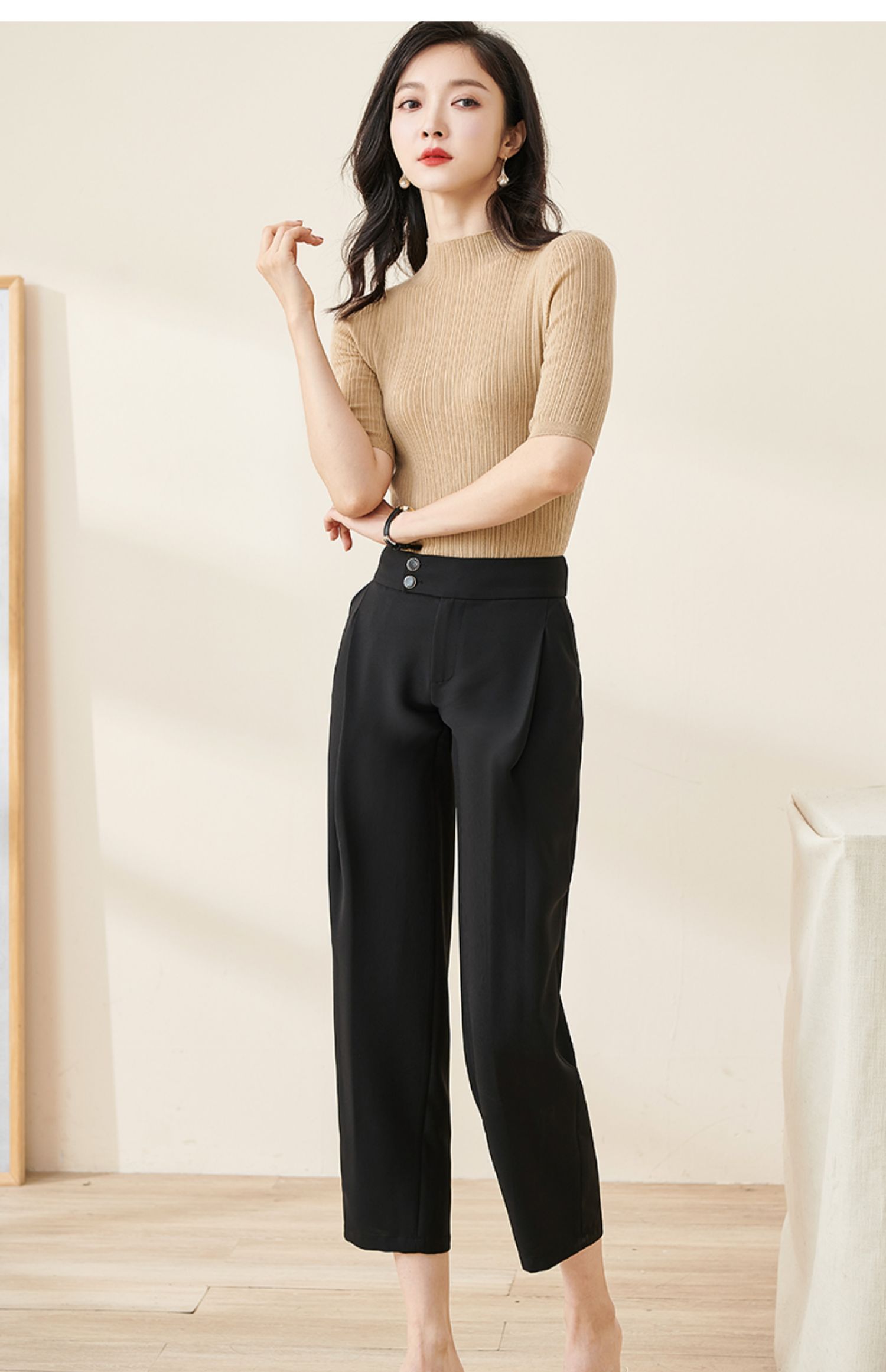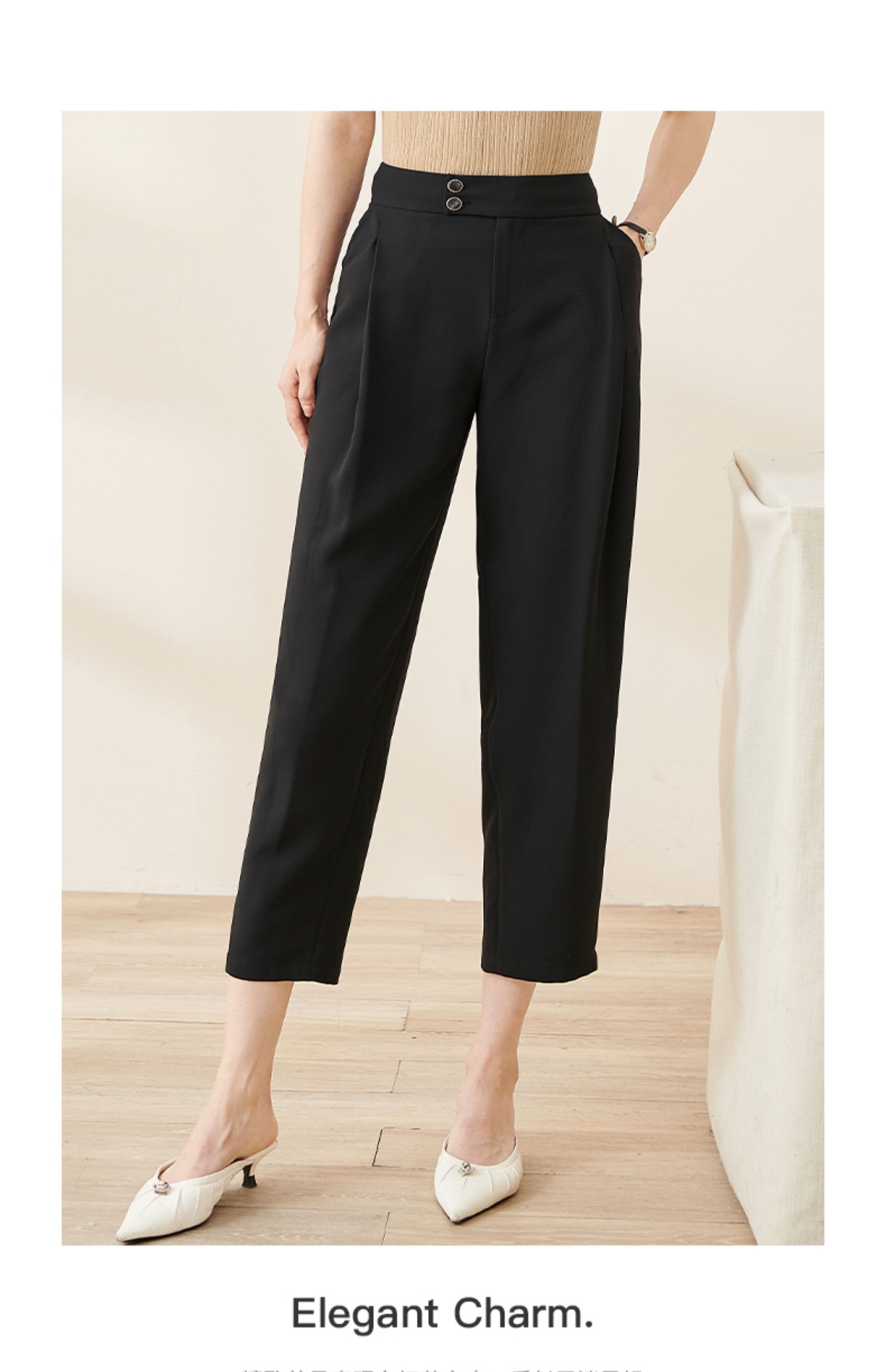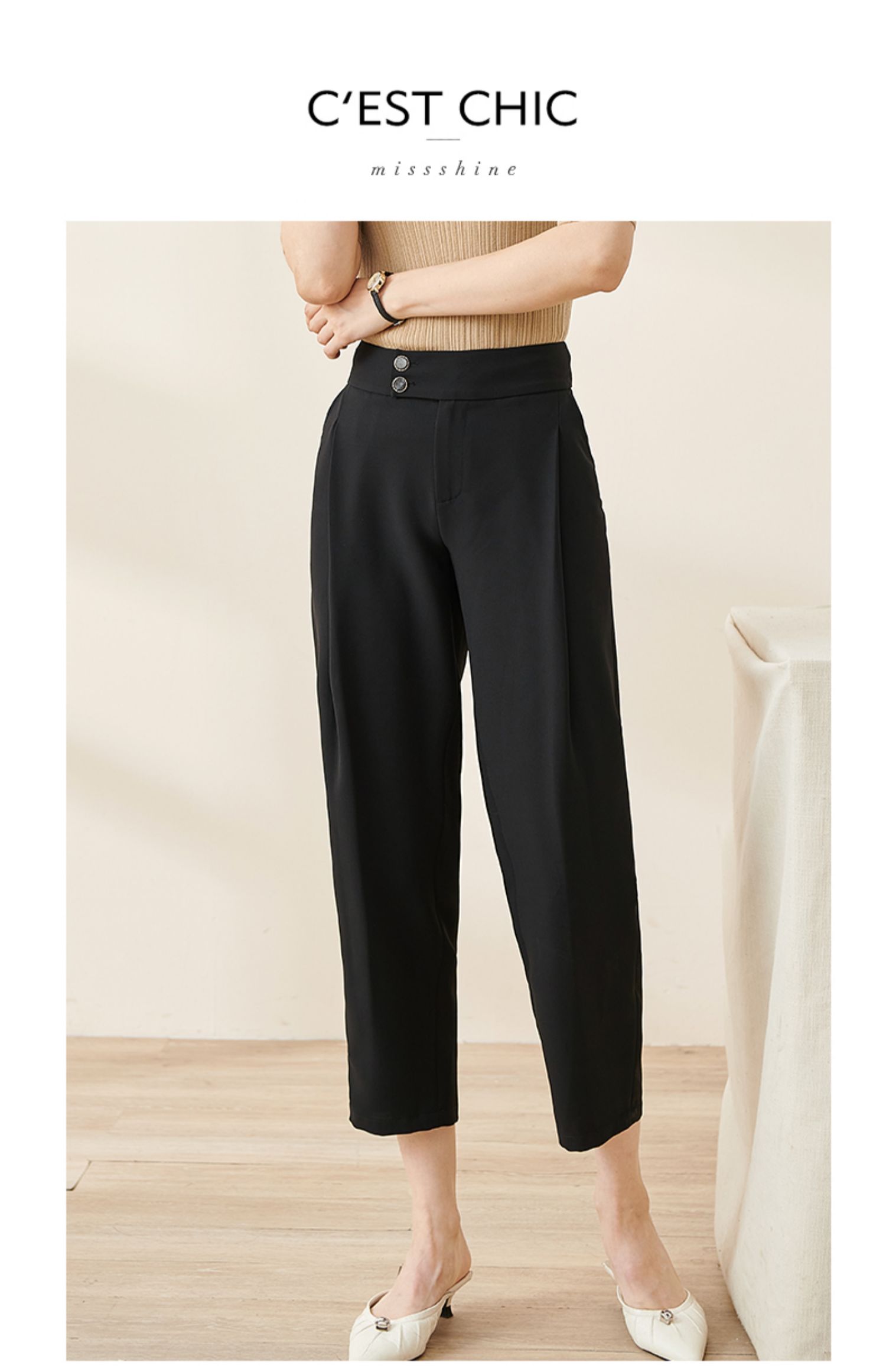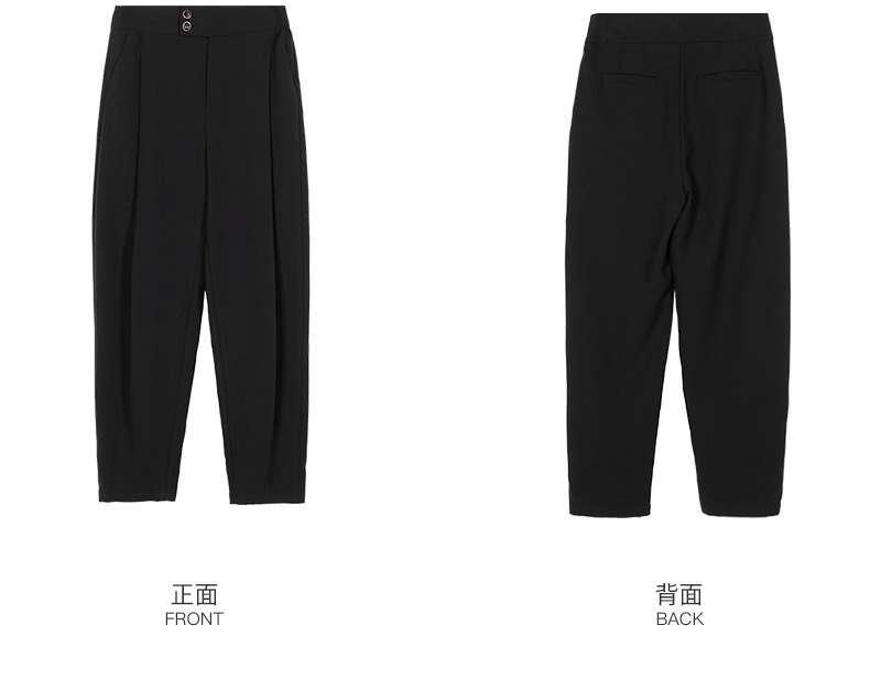 米思阳2024秋季新款时尚通勤黑色九分休闲裤大褶宽松哈伦裤女2103