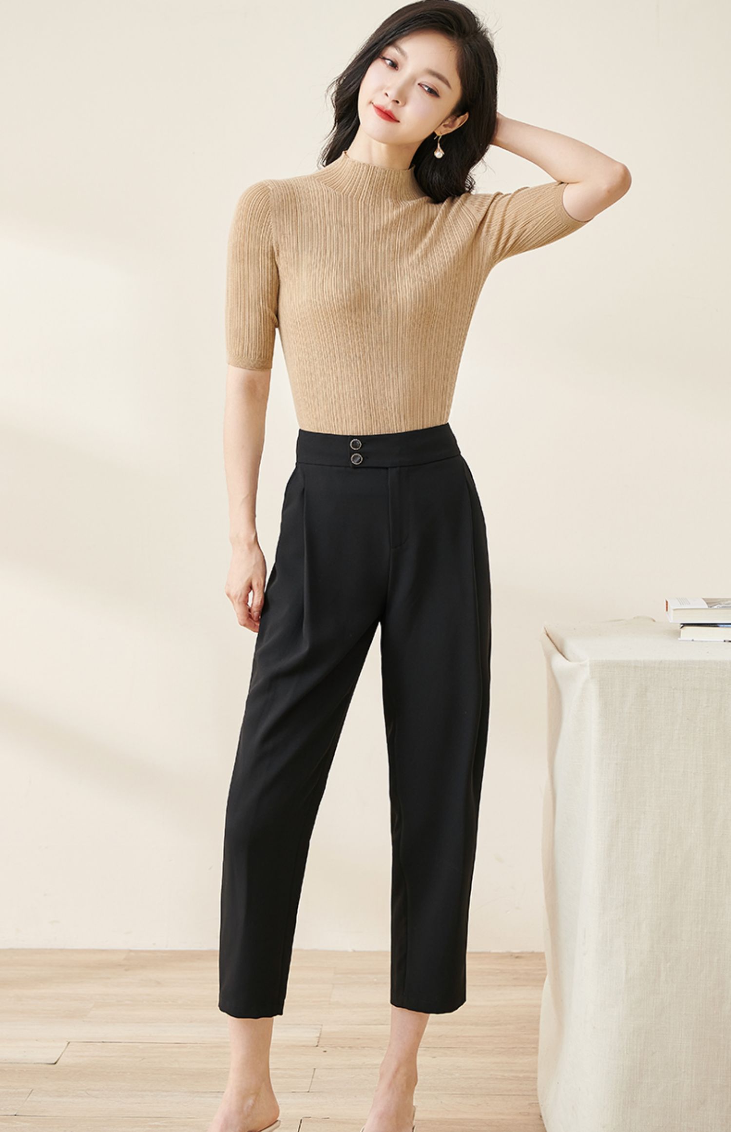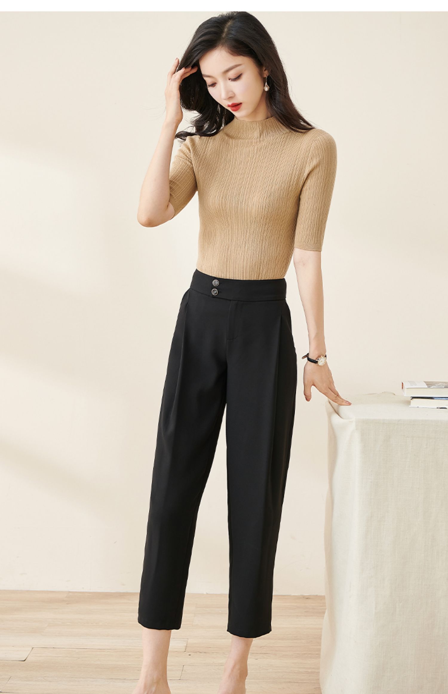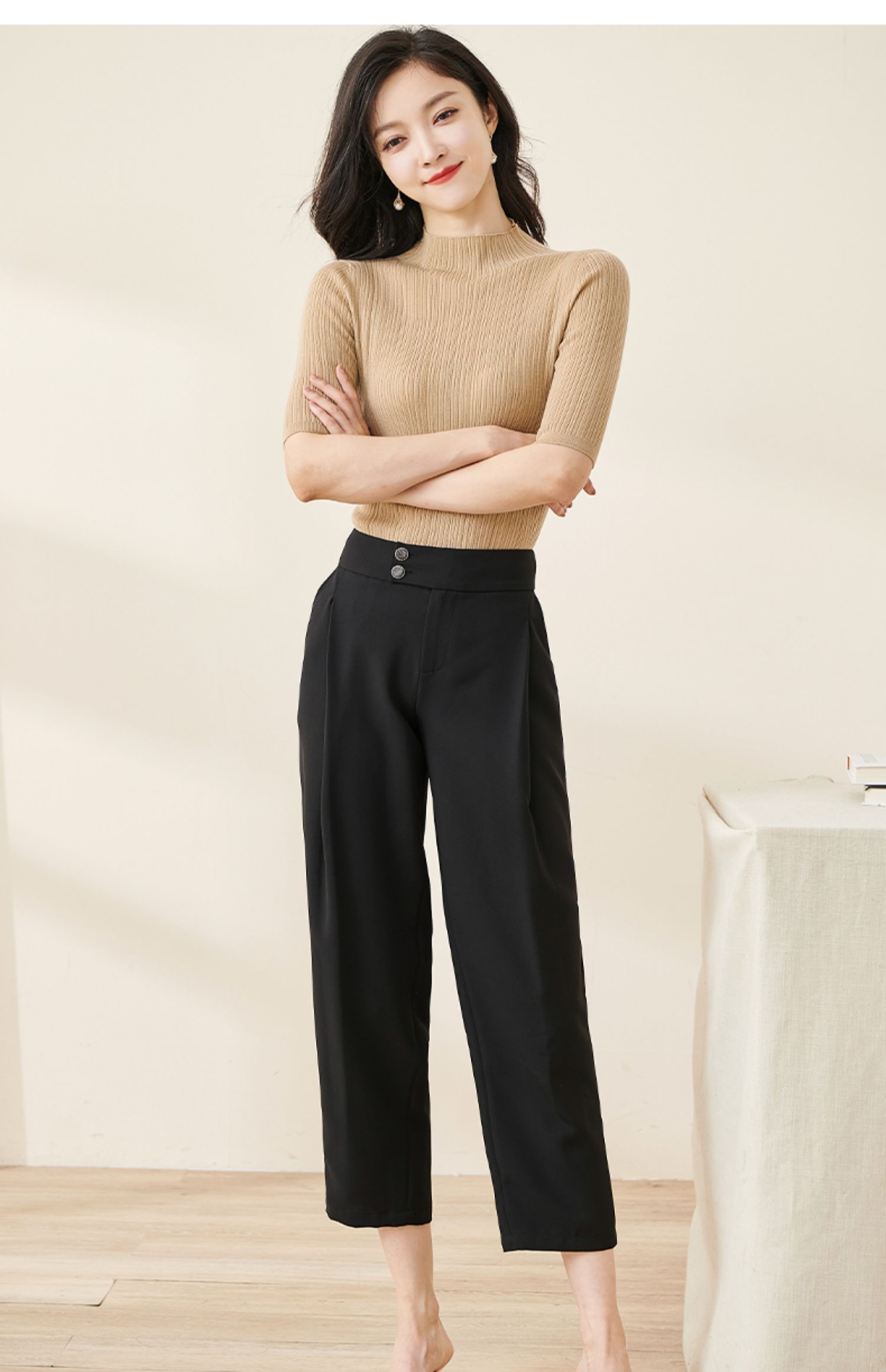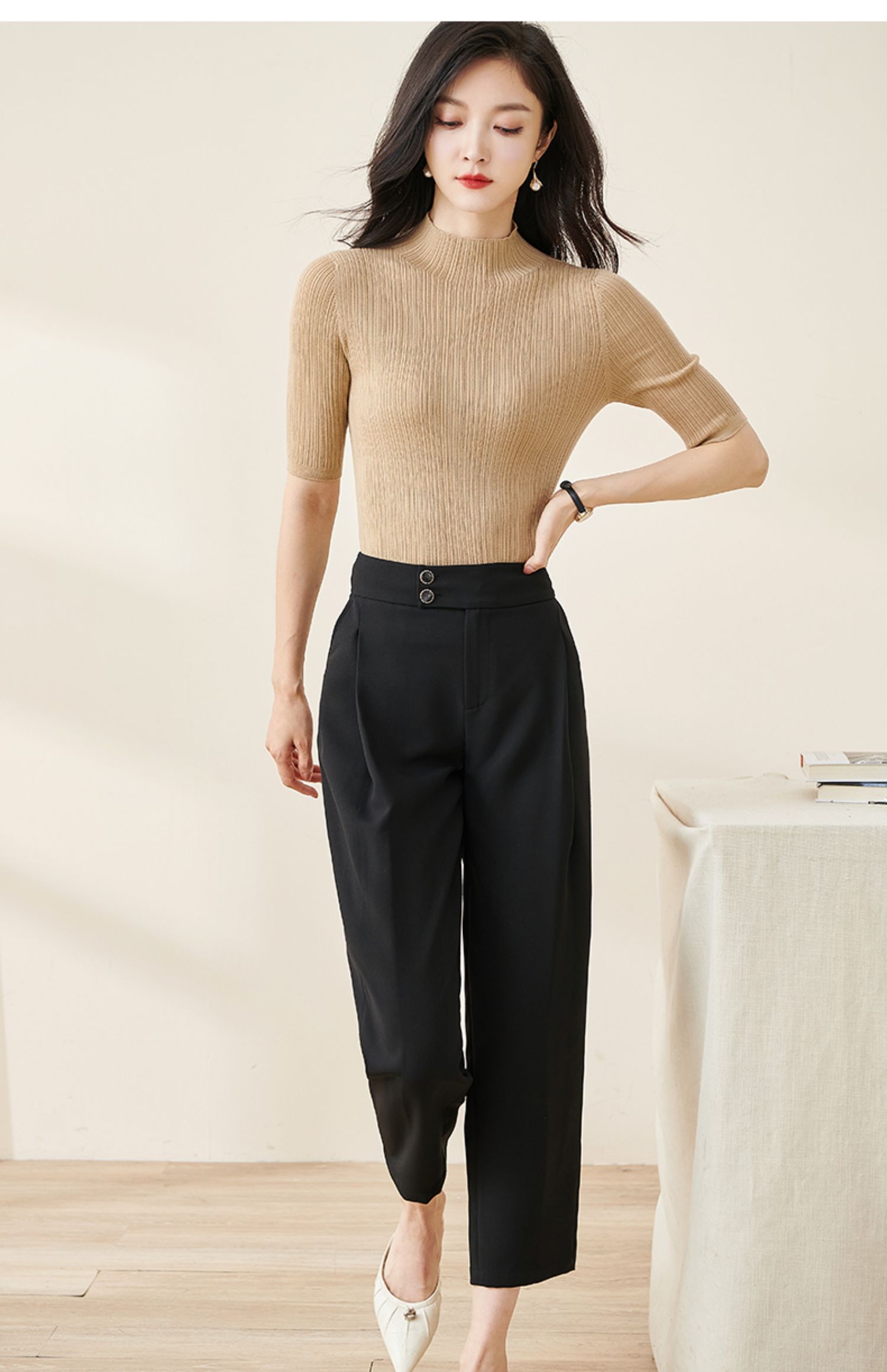 米思阳2024秋季新款时尚通勤黑色九分休闲裤大褶宽松哈伦裤女2103