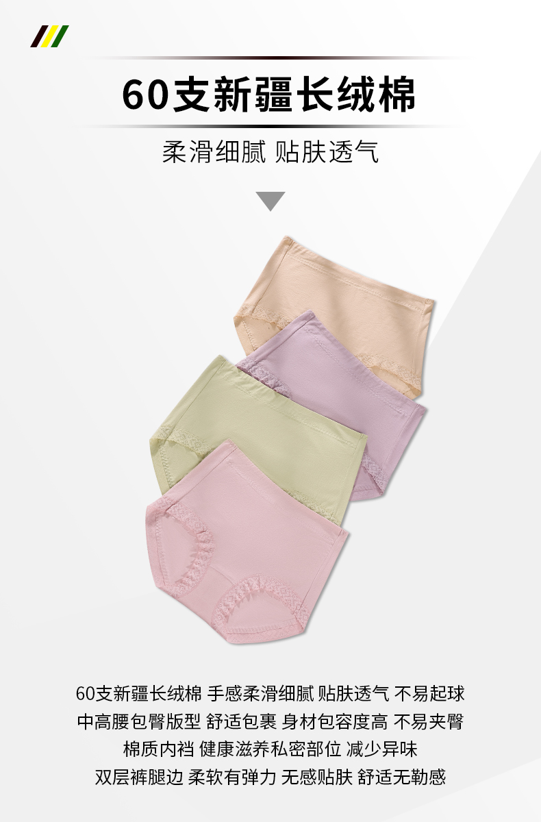 女士中腰包臂抗菌内裤新疆长绒棉2324#