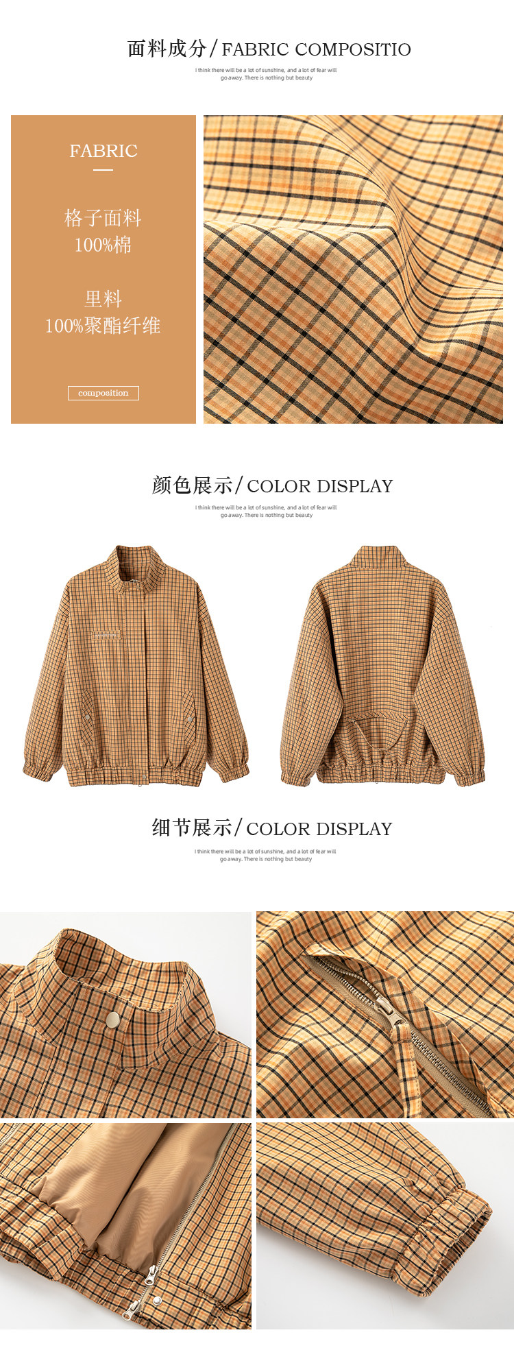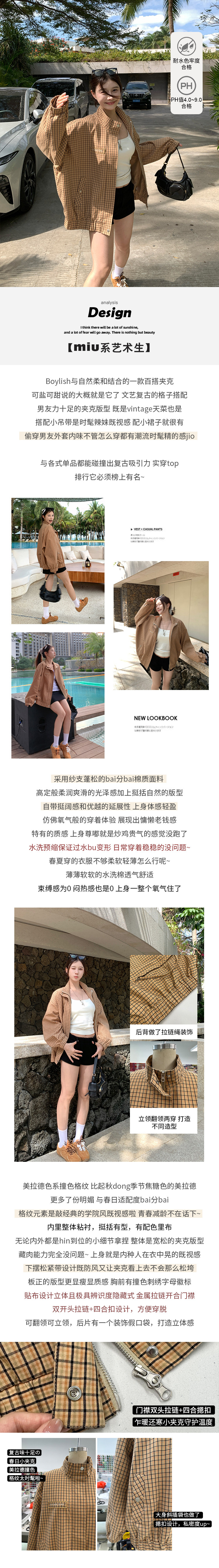 EKOOL衣库 美拉德系复古格子外套女春秋宽松显瘦拉链开衫立领上衣