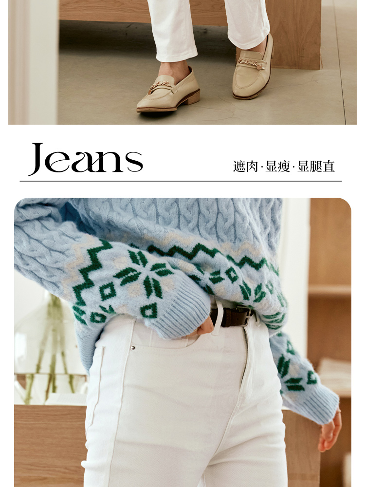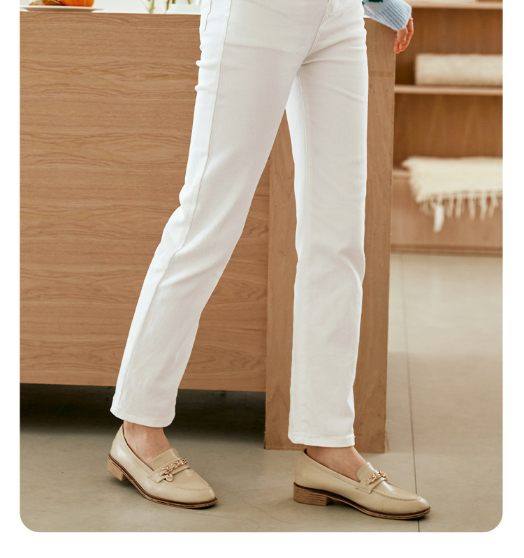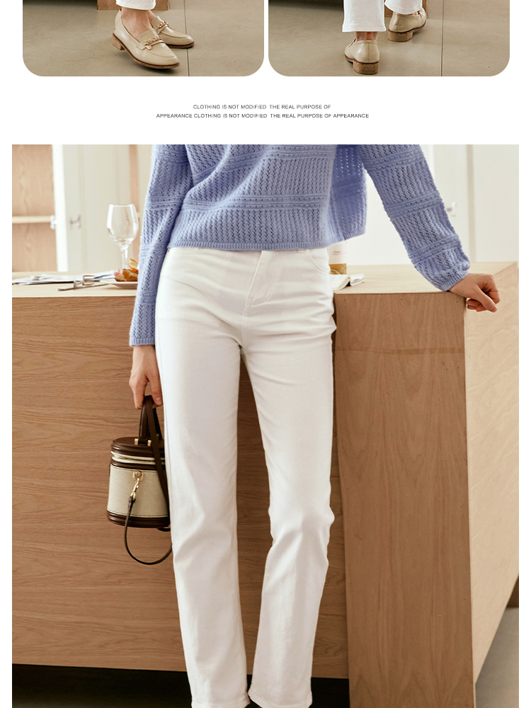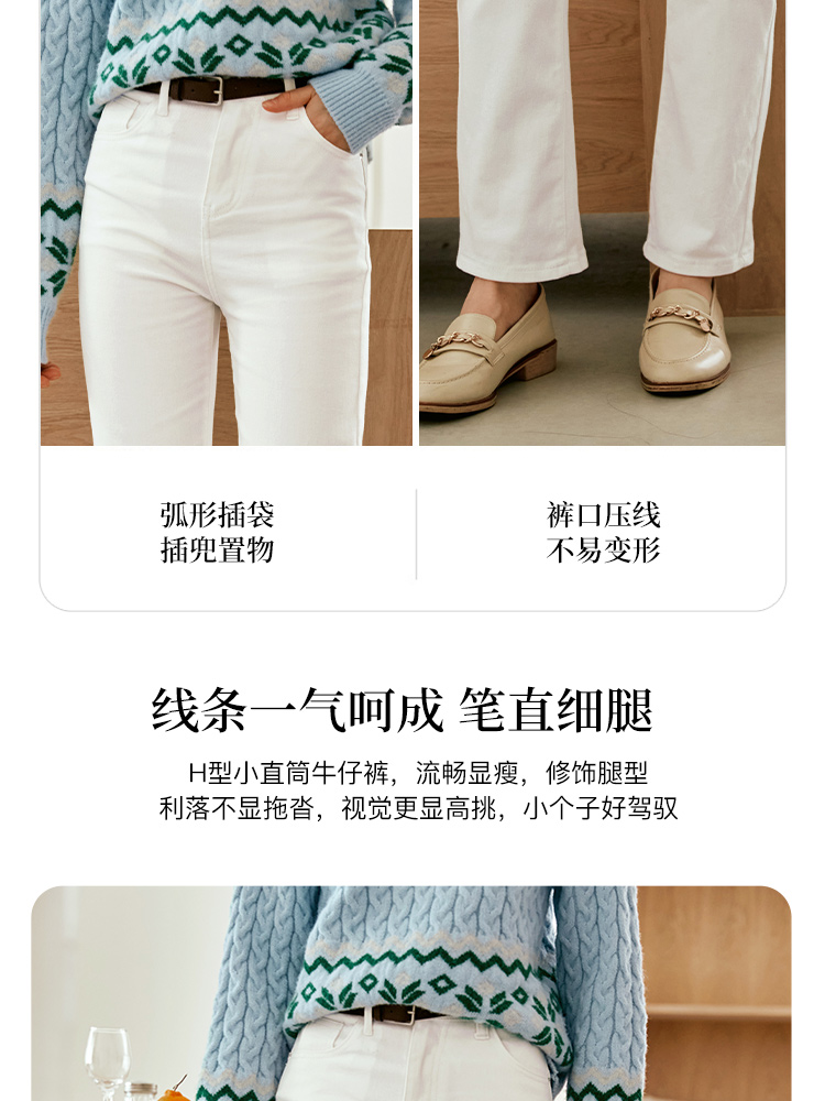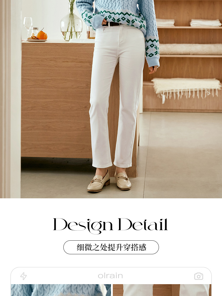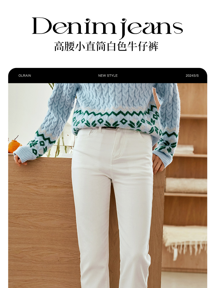 OLrain欧芮儿白色高腰牛仔裤女秋季2024新款休闲直筒百搭显瘦裤子