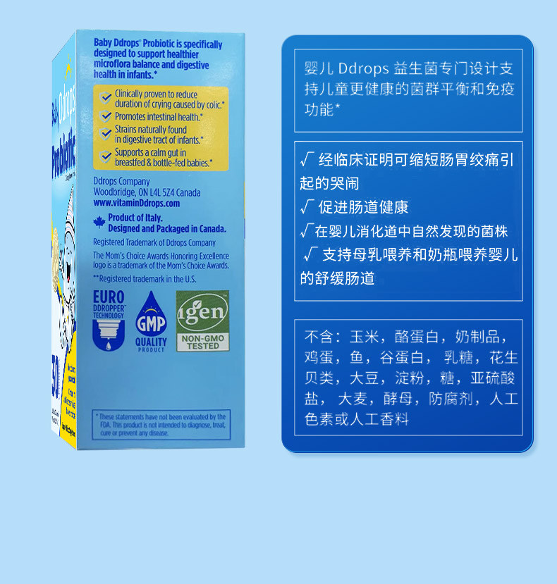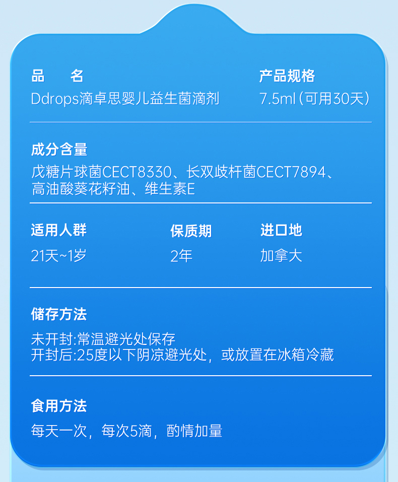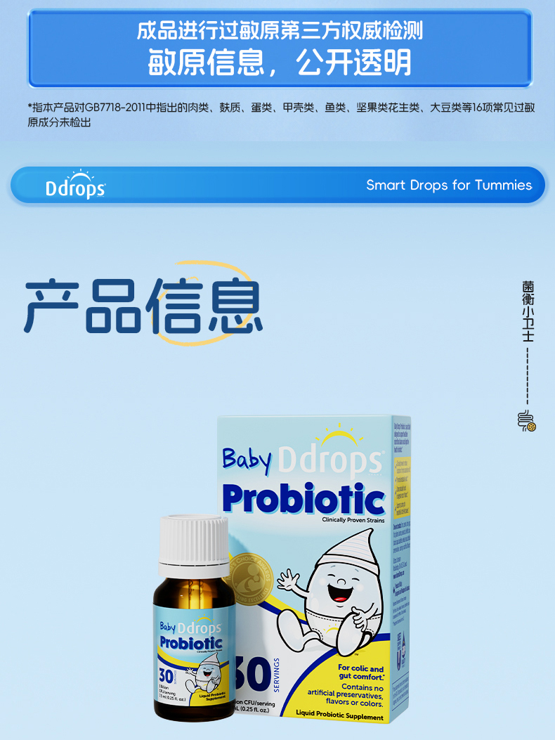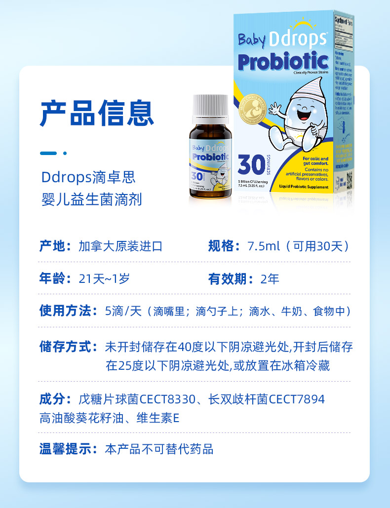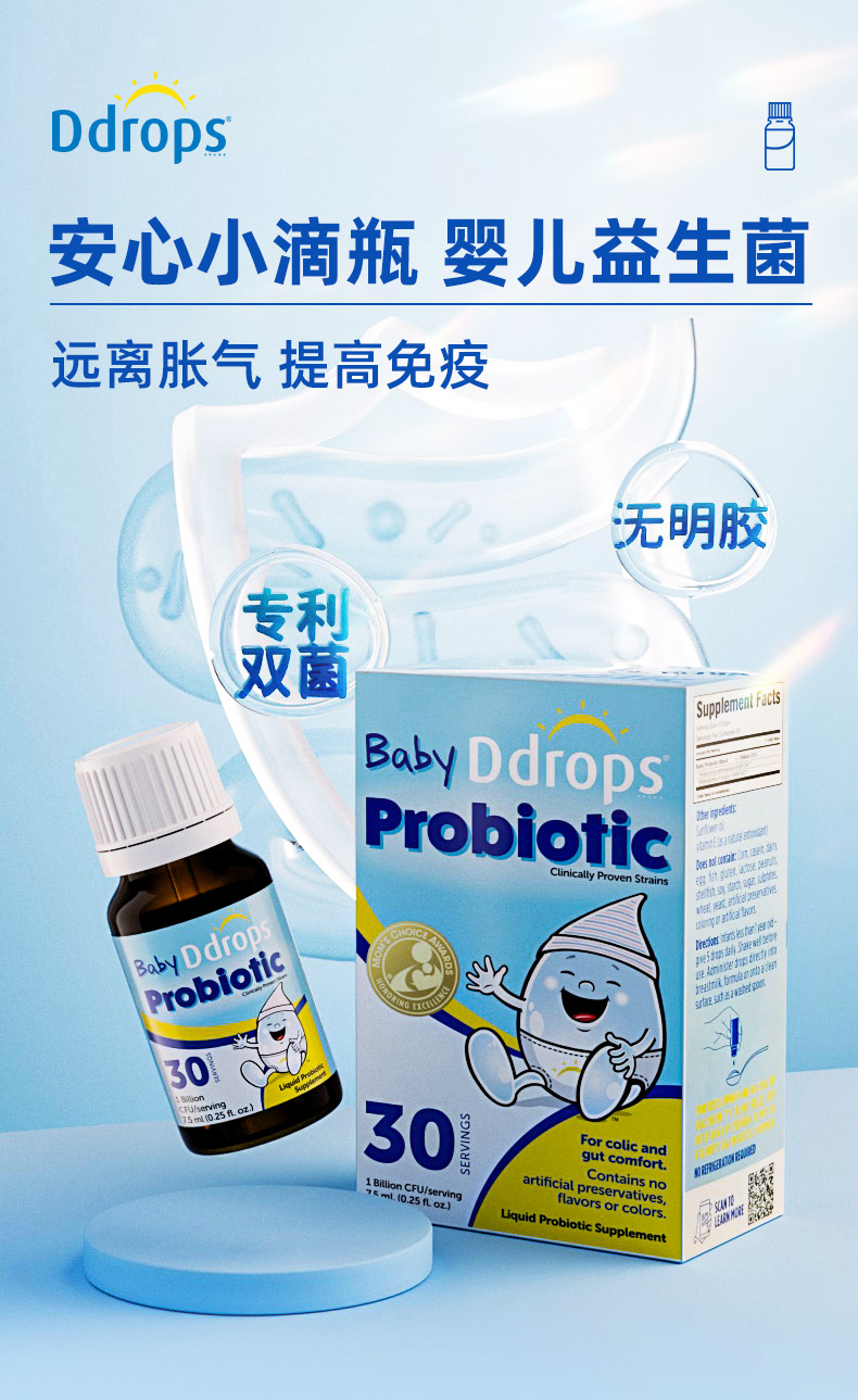 Ddrops滴卓思婴儿益生菌滴剂 缓解肠绞痛 7.5ml/瓶SC