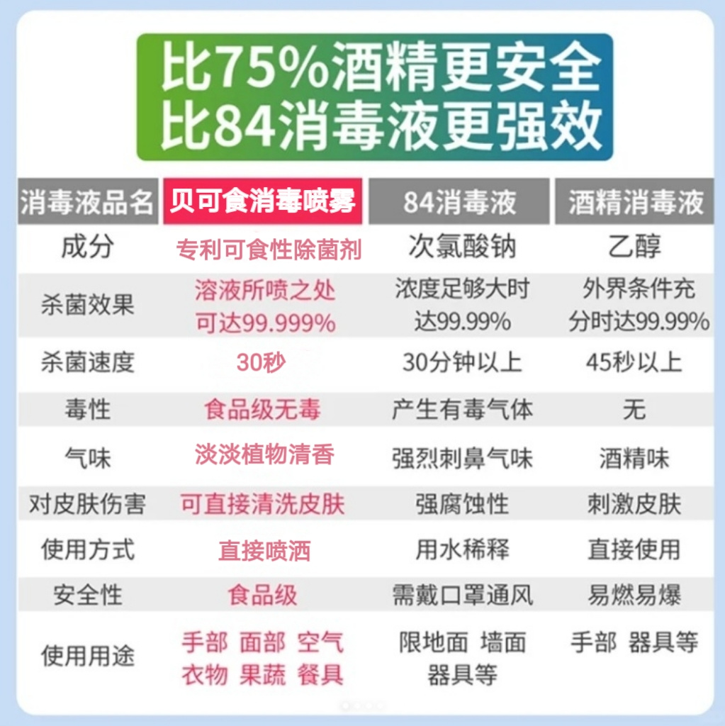 【产品品名】:贝可食消毒喷雾