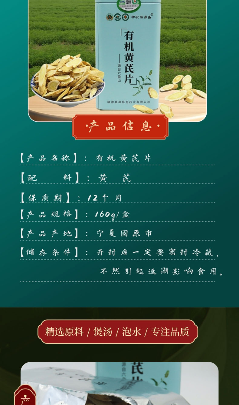 神农葆易圣有机黄芪中药材切片干货泡茶正品新货160g