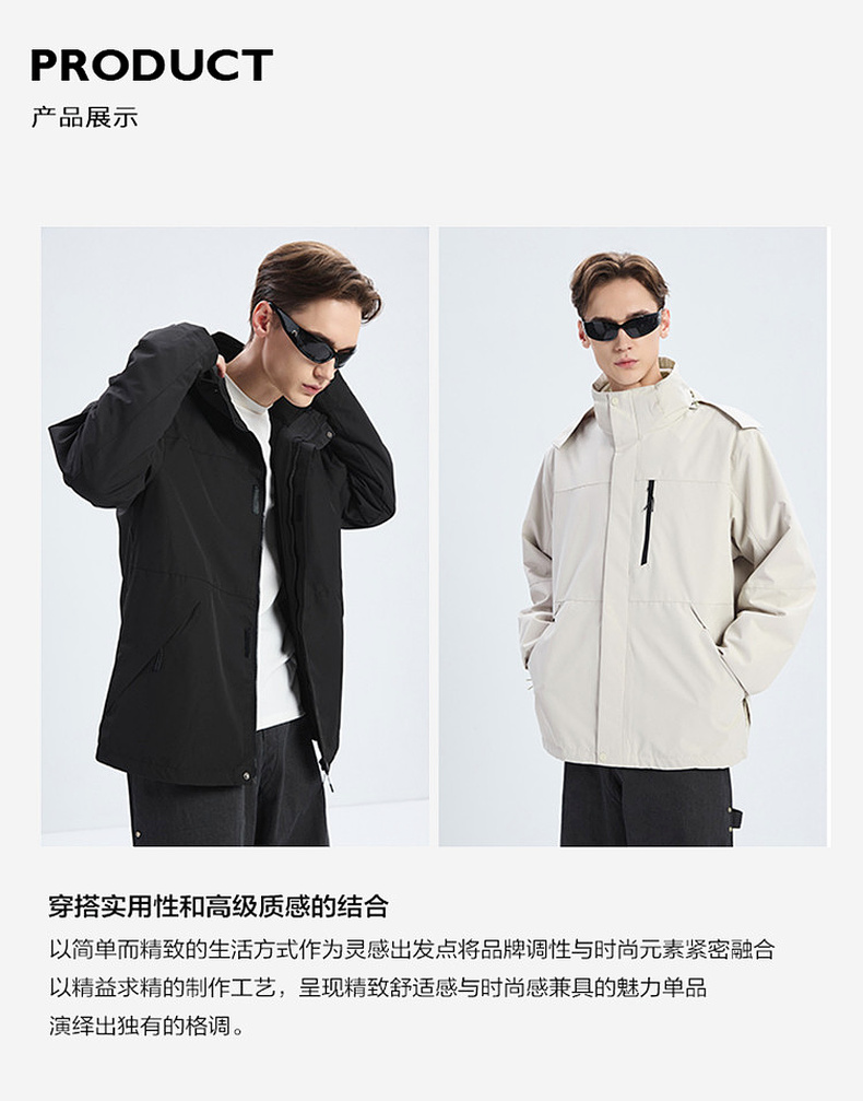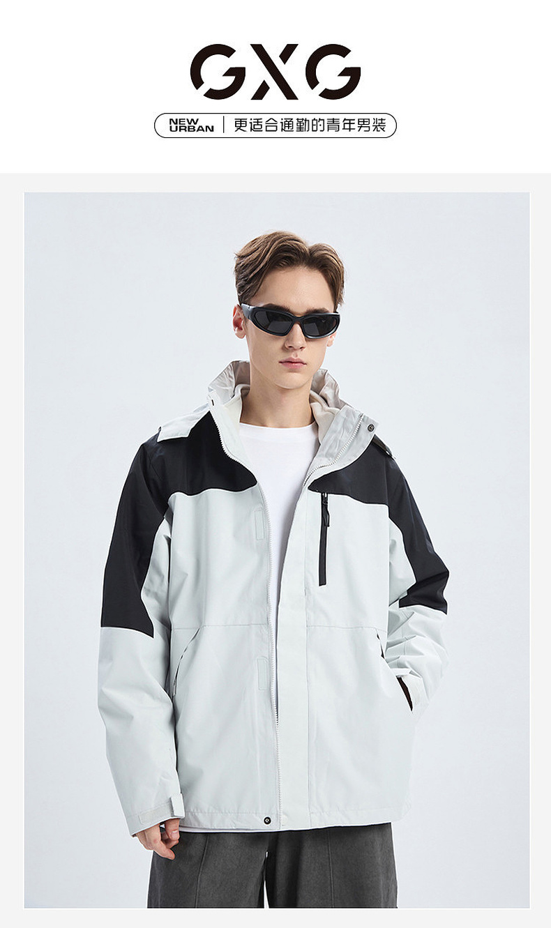 【GXG男装】冬季潮流连帽夹克男式户外山系冲锋衣登山服外套K&C