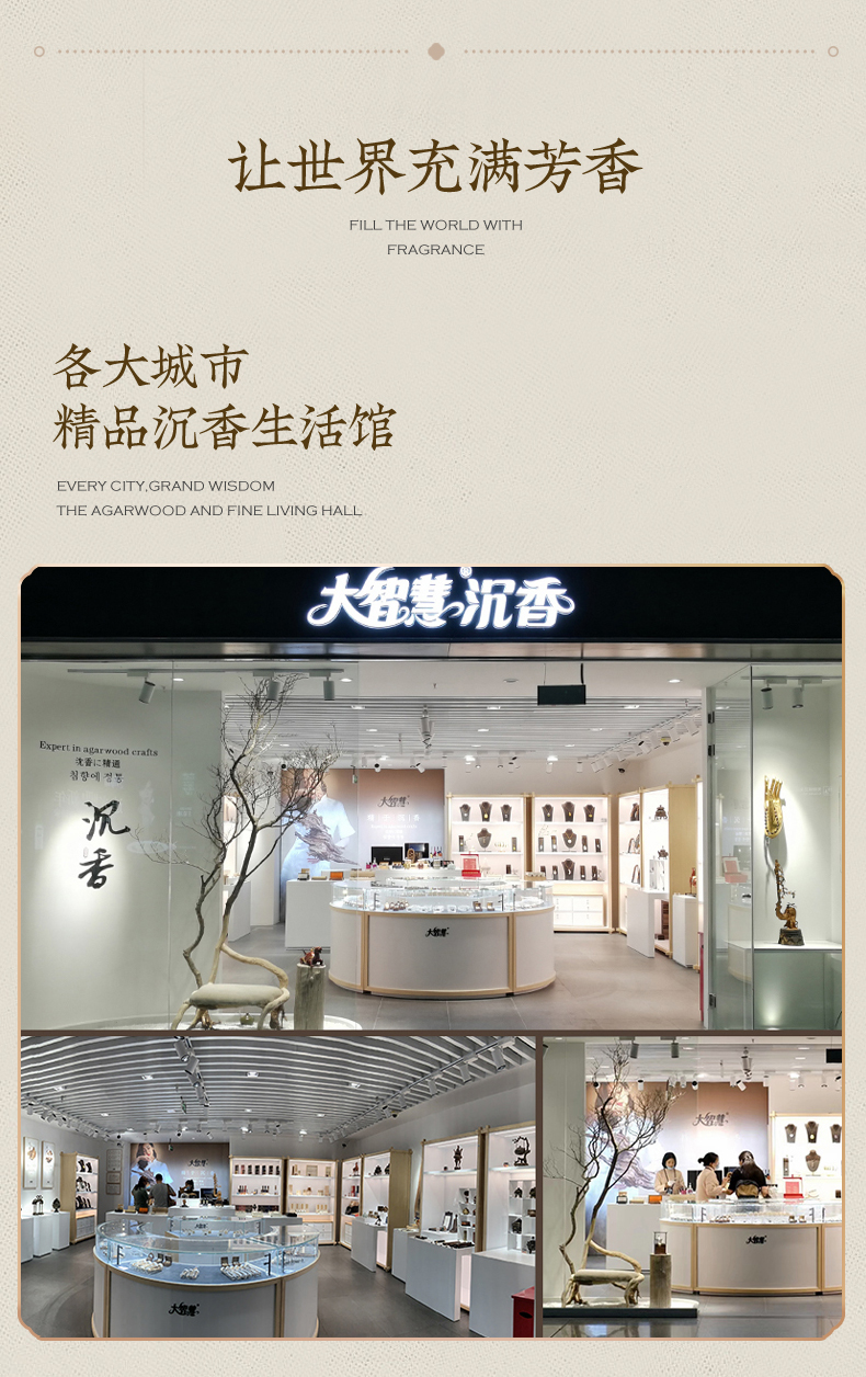 - 以沉香为媒,大智慧沉香述说中国人香事生活中的美与智慧。 将沉香与生俱来的雅与趣、净美的生活禅意, 融入现代人的生活场景。