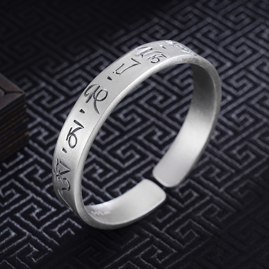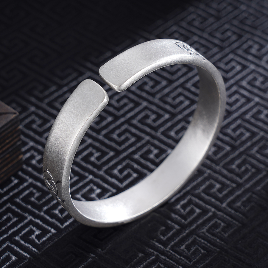 【寓意】:纯银开口手镯,镯面錾刻六字真言,搭配净土之花“莲花”,自蕴禅韵,寓花开悟禅,福满心圆。