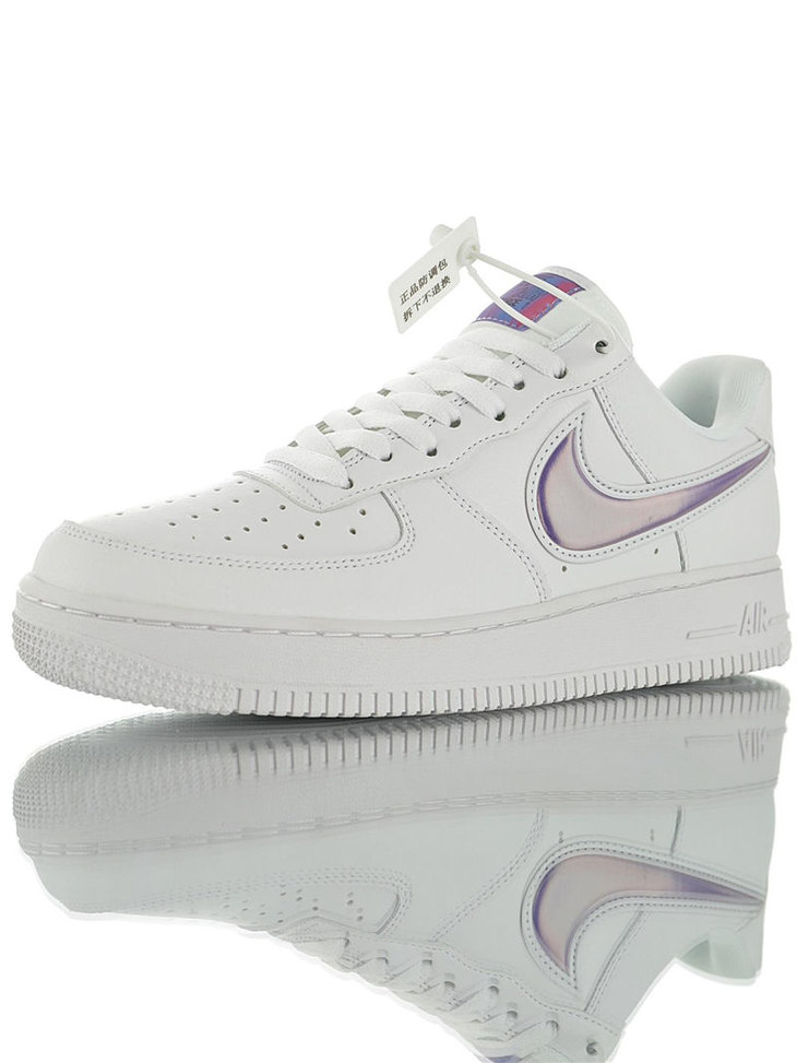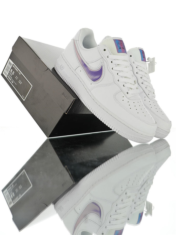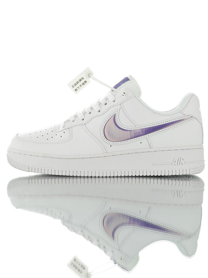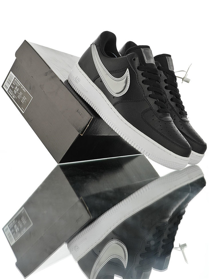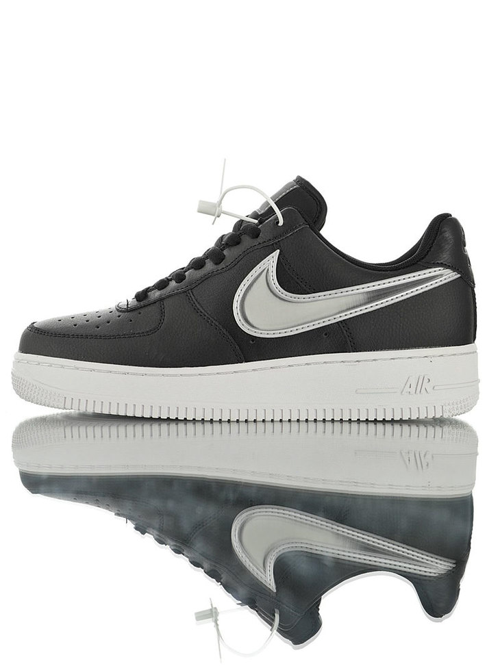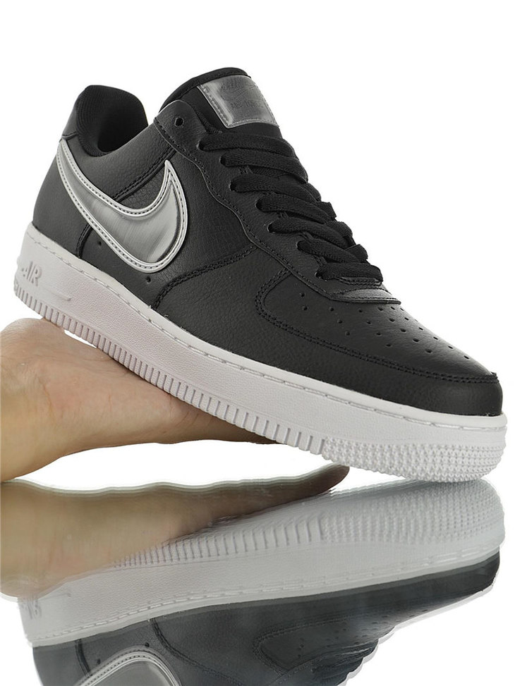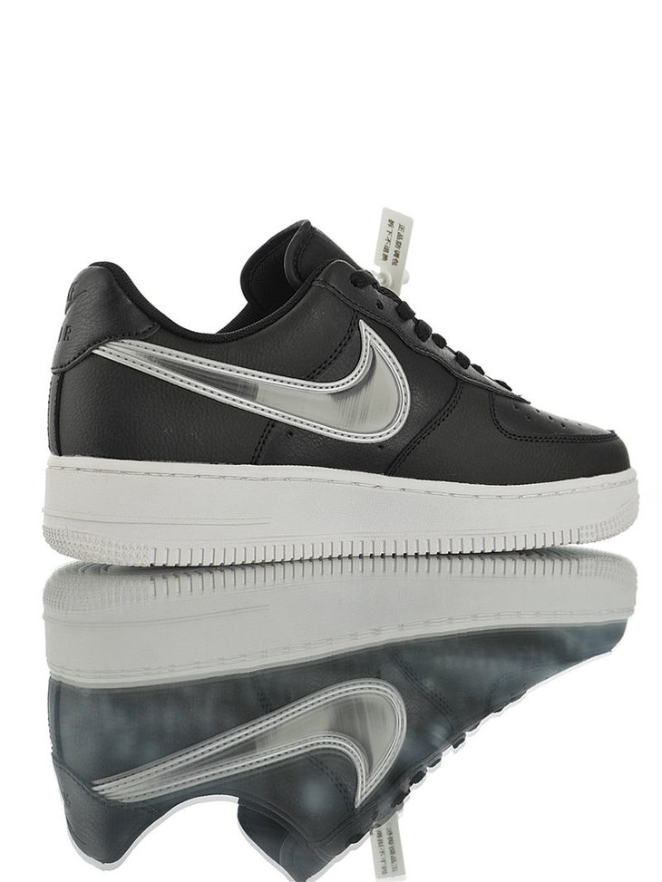 耐克Nike Air Force 1 07 LV8 采用牛剖层移膜革 内置全掌air sole气垫 空军一号经典百搭休闲运动板鞋 黑皮灰银渐变放大钩