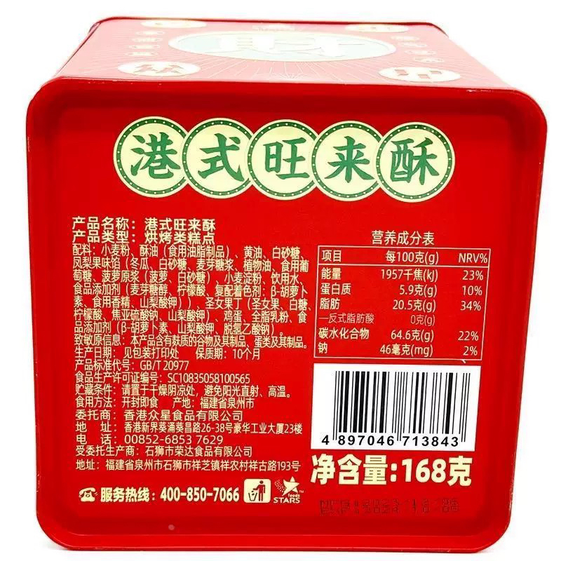 众星港式旺来酥168g