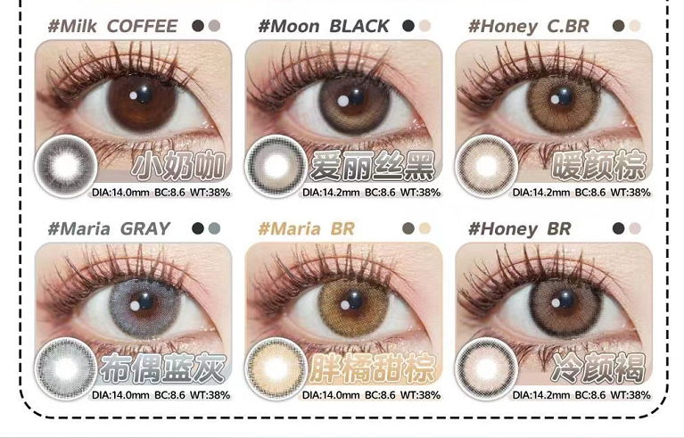 镜片材质: 硅水凝胶年抛
