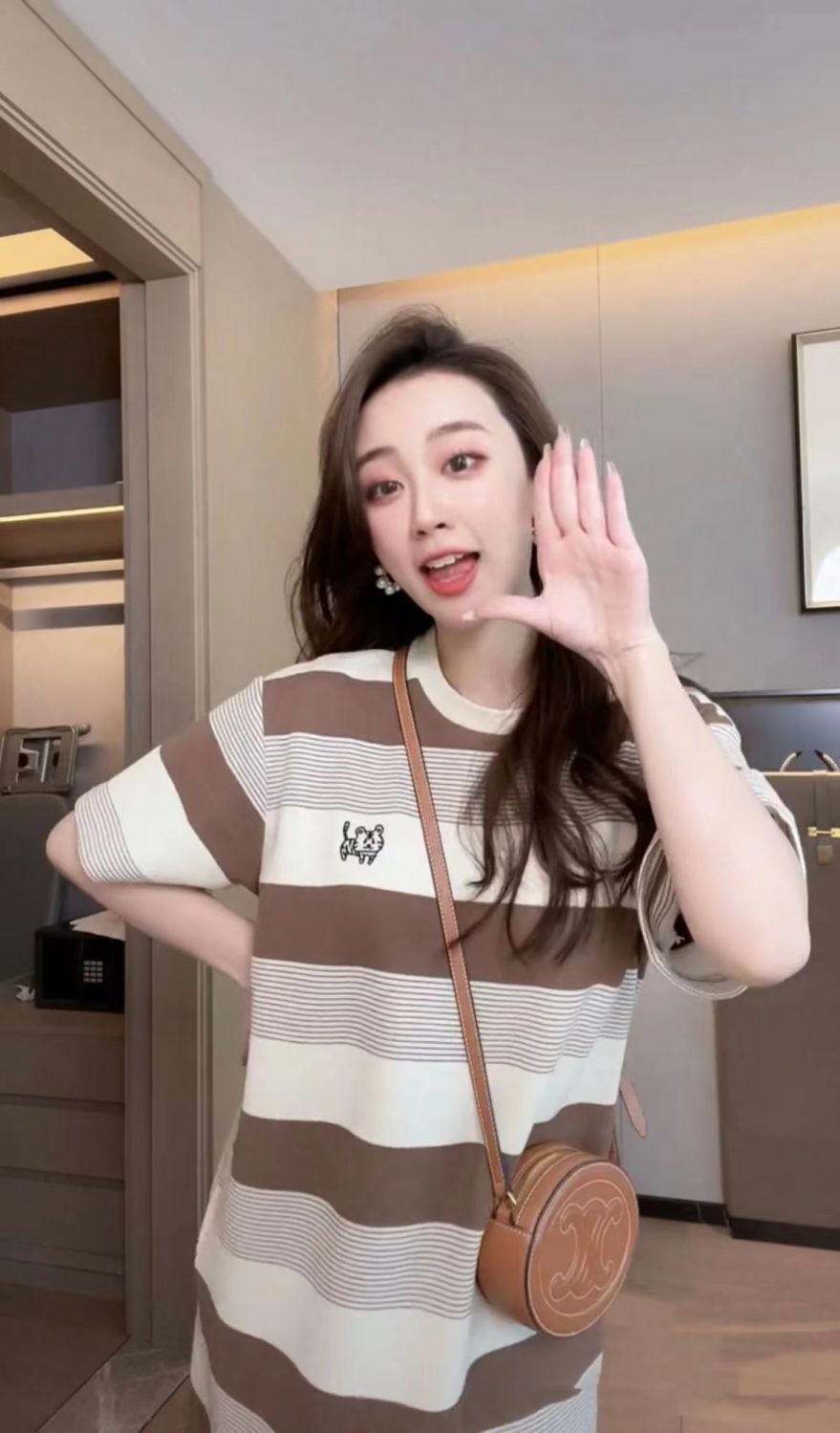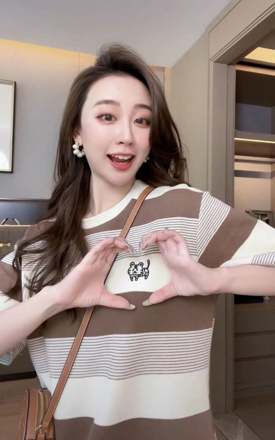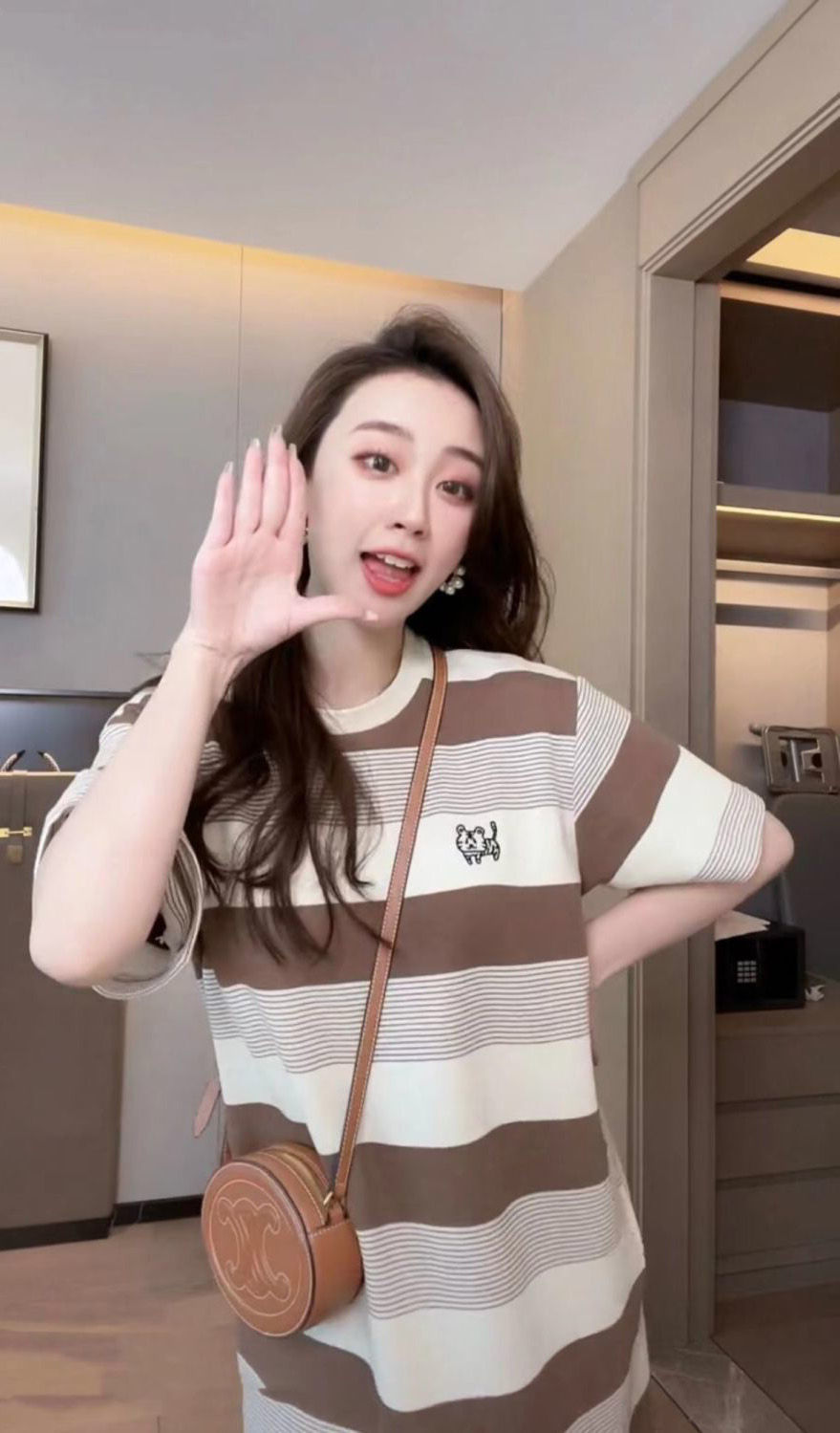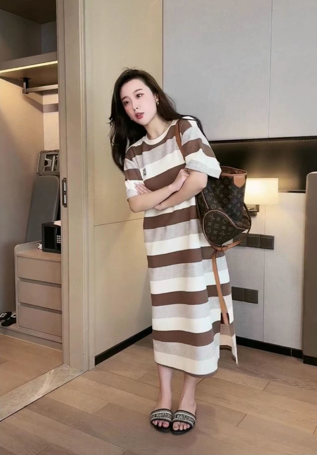 黛唯梵冰丝针织孕妇连衣裙夏装时尚短袖圆领宽松大码条纹网红夏季孕妇装