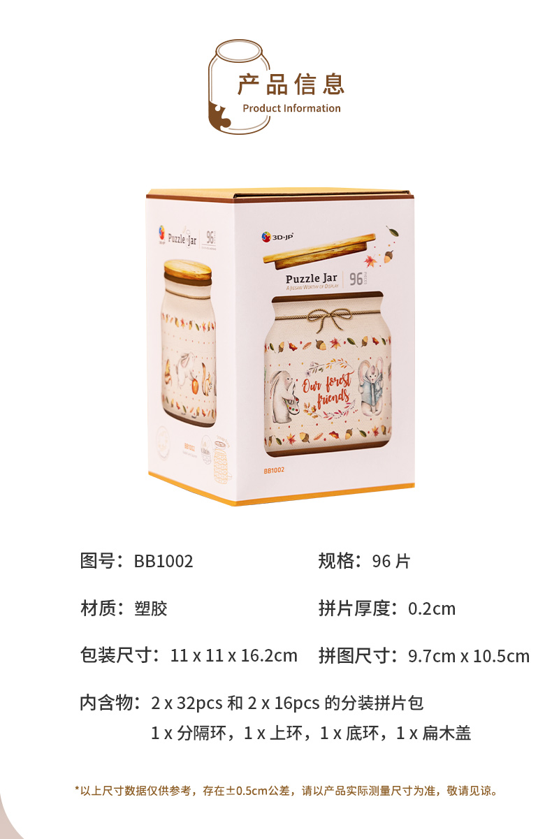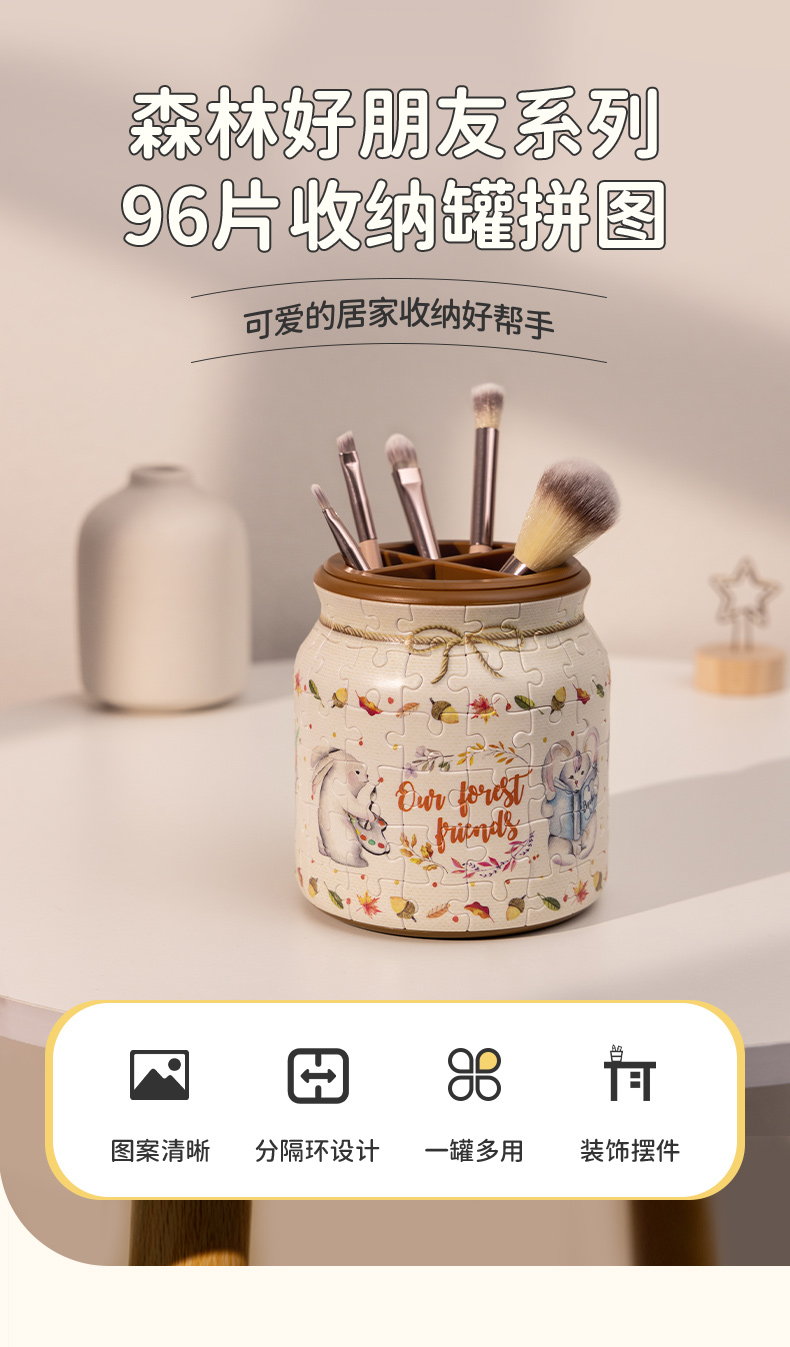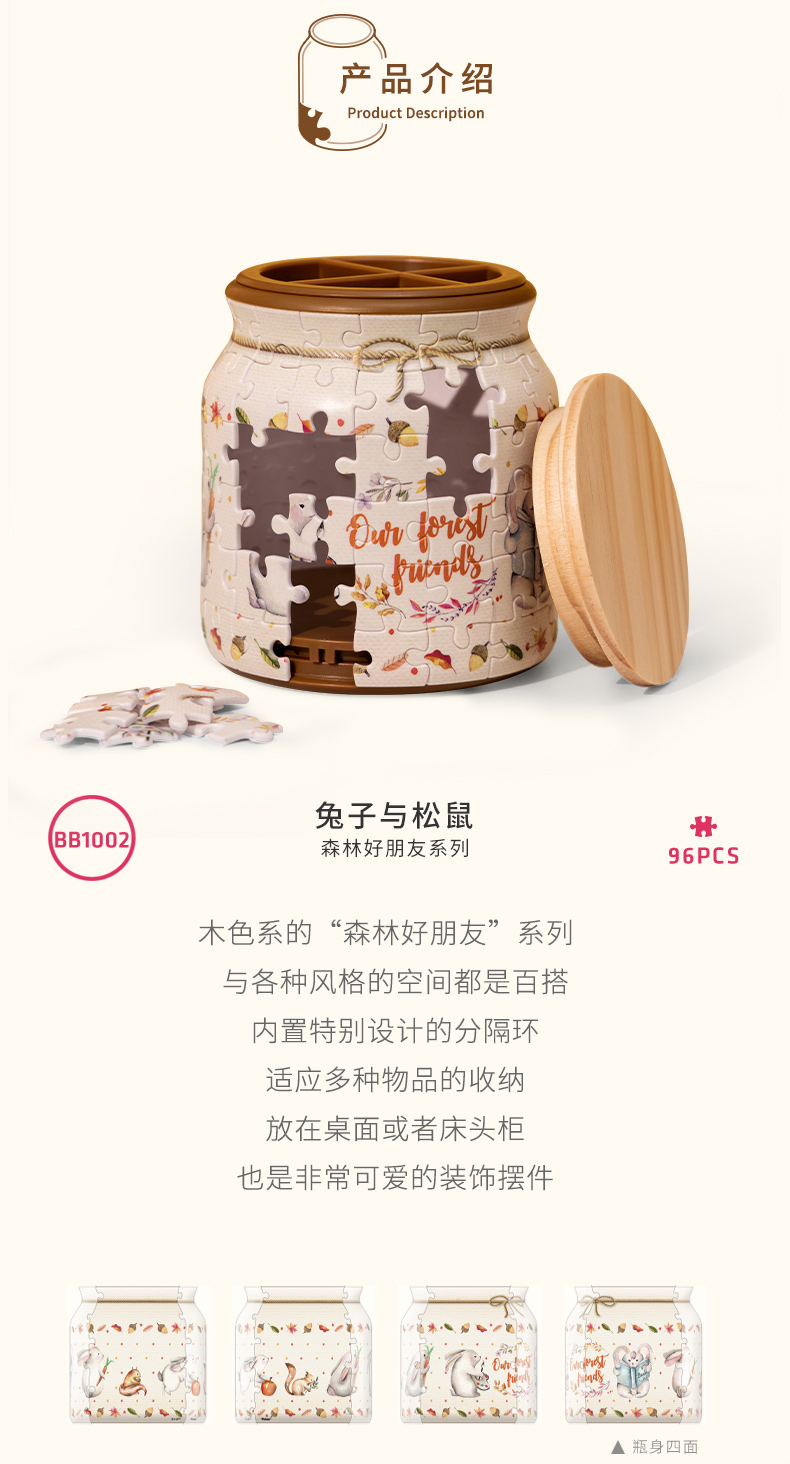 96片 收纳罐拼图 塑料拼图 BB1002 森林好朋友-兔子与松鼠