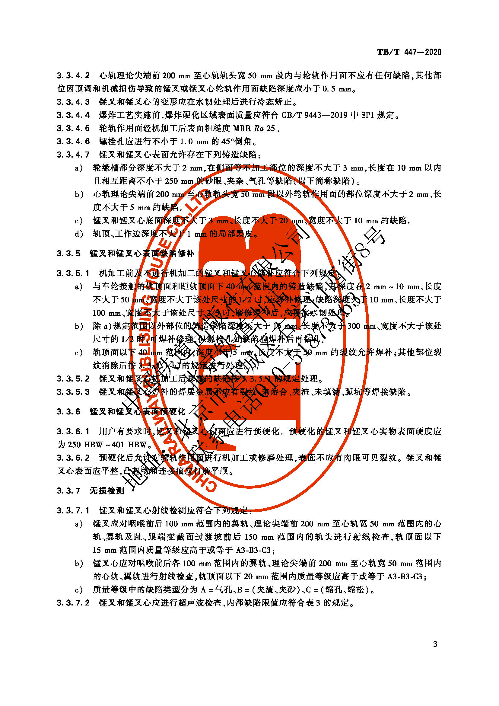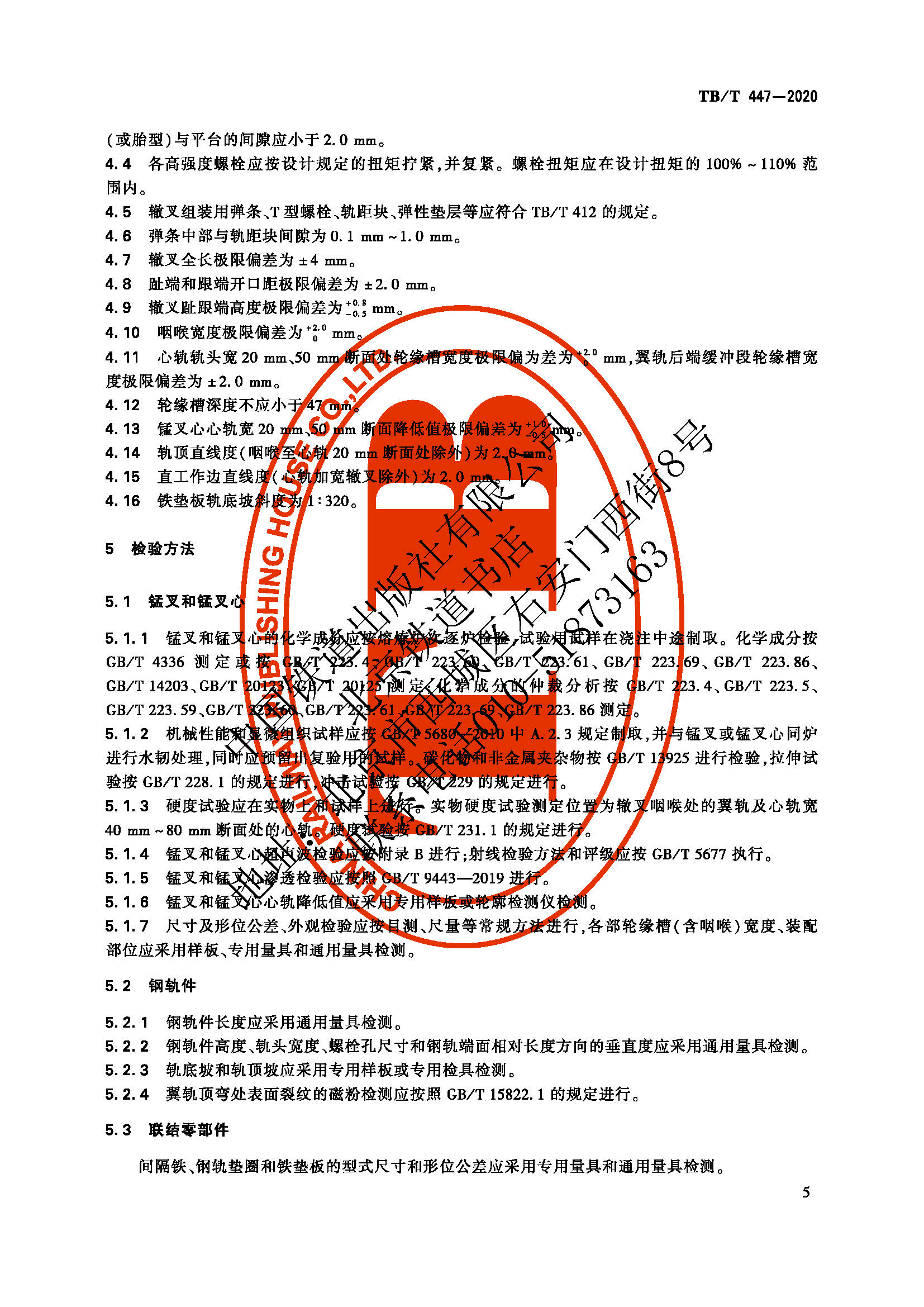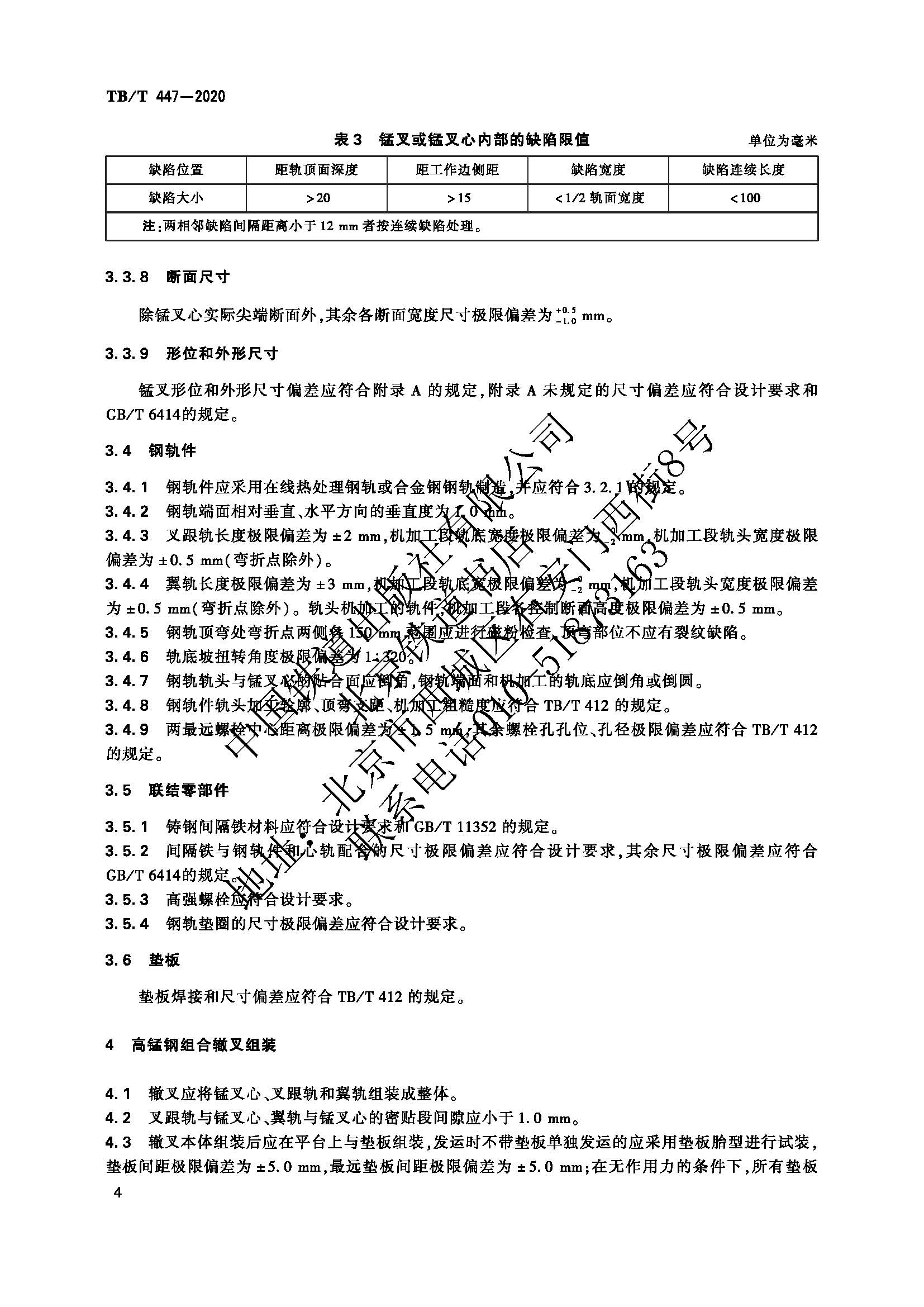 15113.6153高锰钢辙叉 TB/T 447—2020
