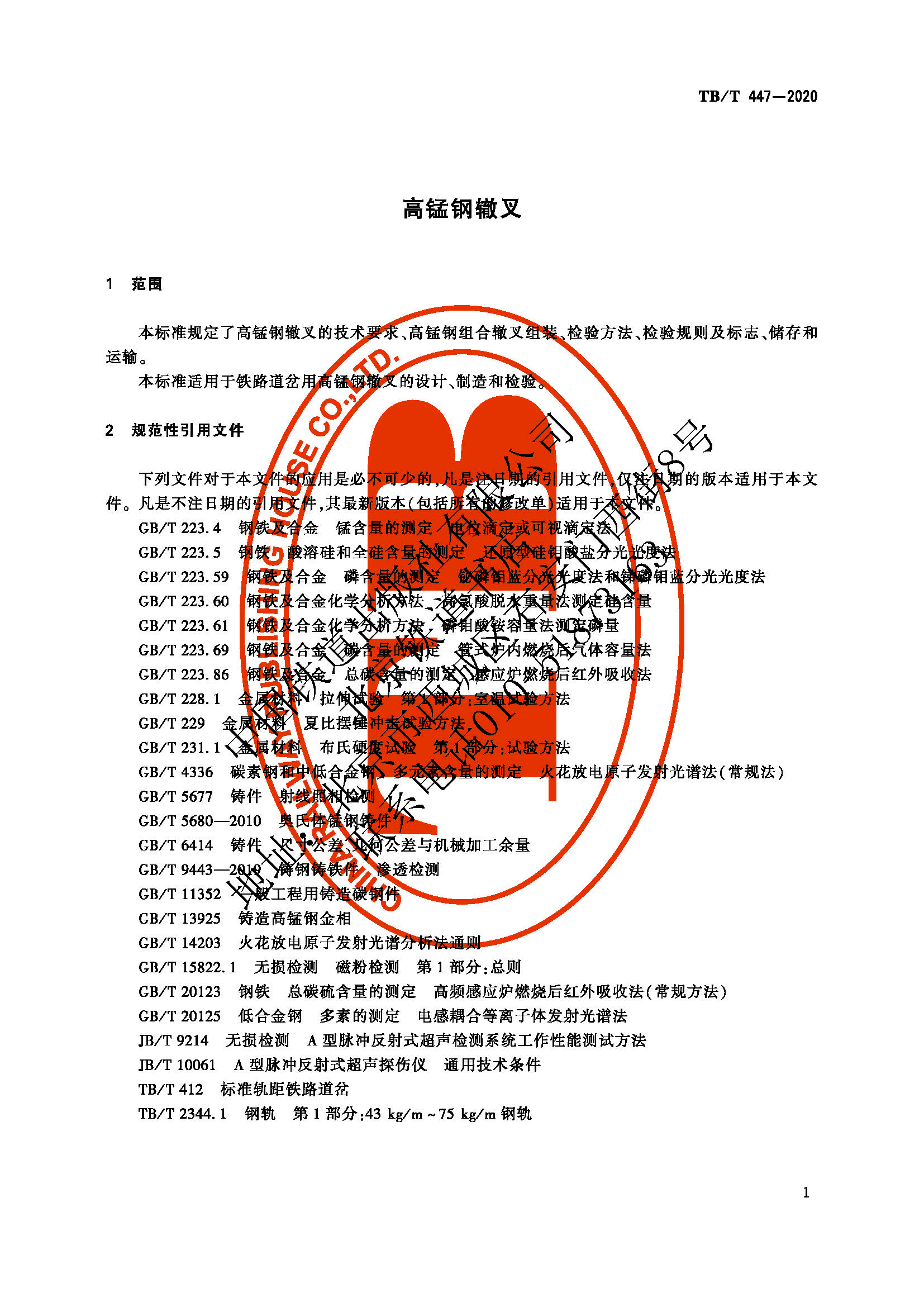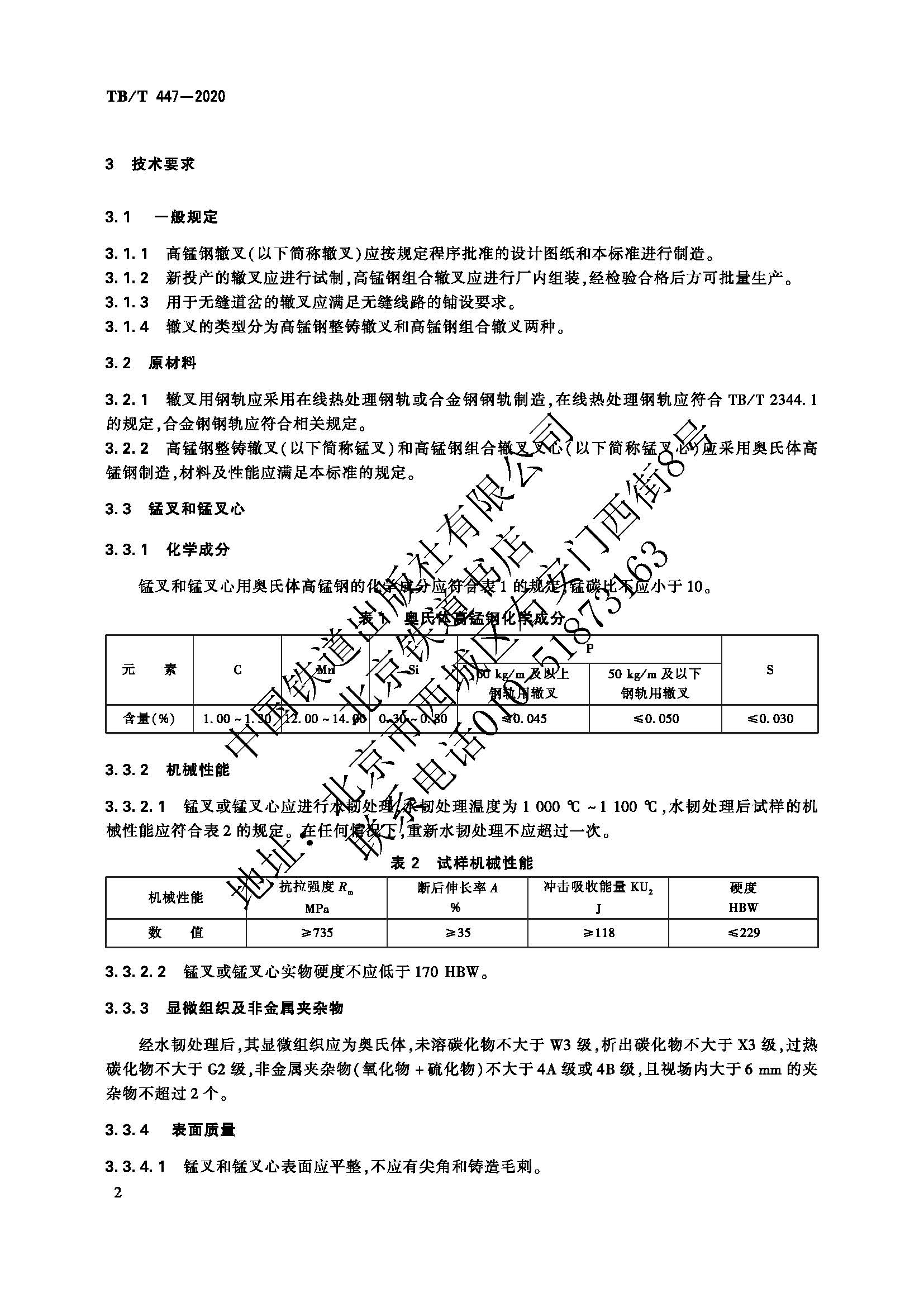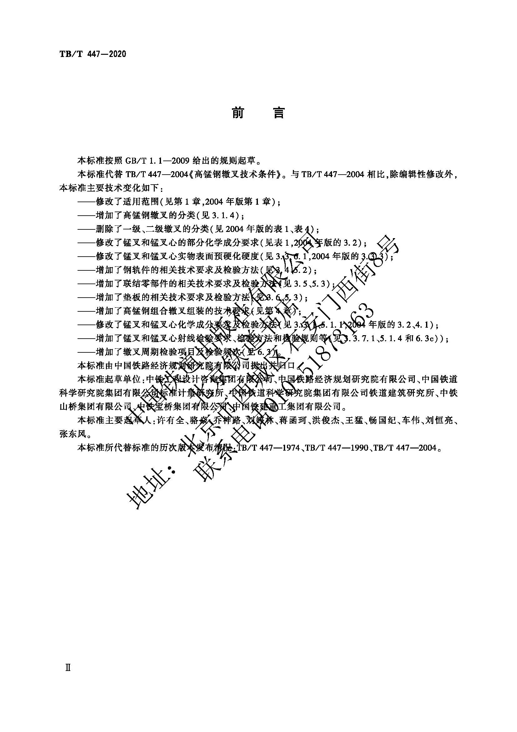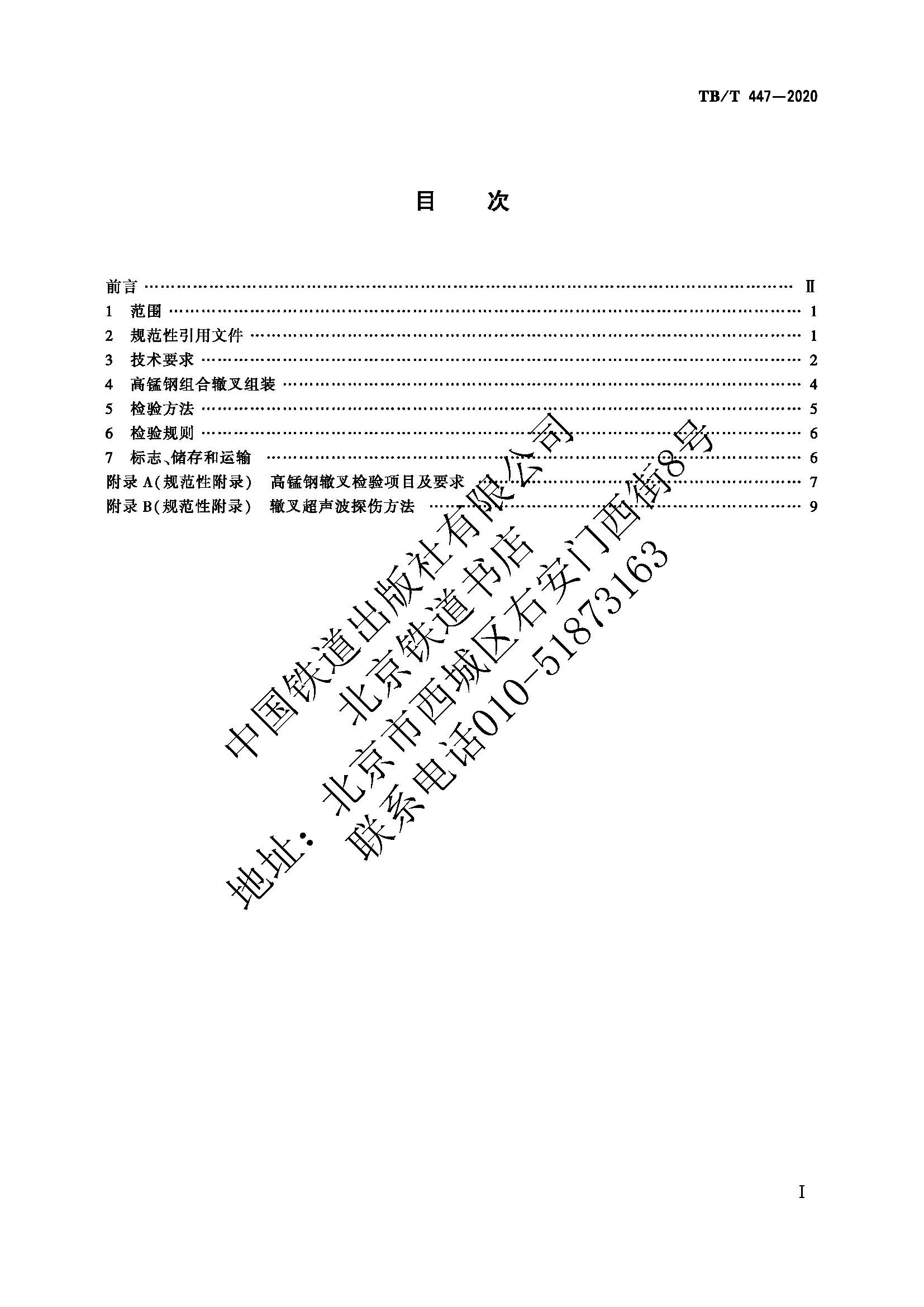 15113.6153高锰钢辙叉 TB/T 447—2020