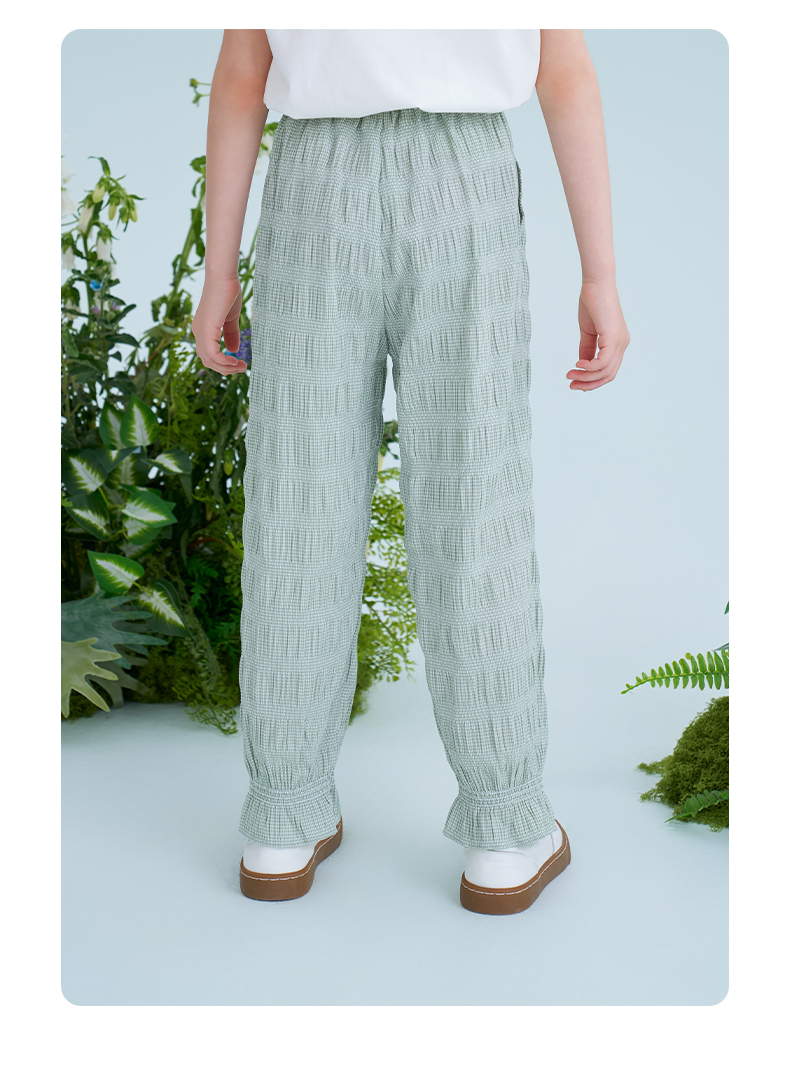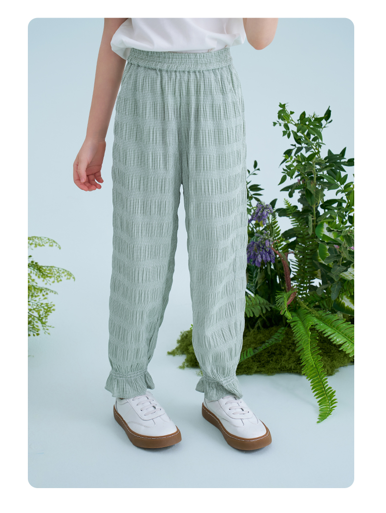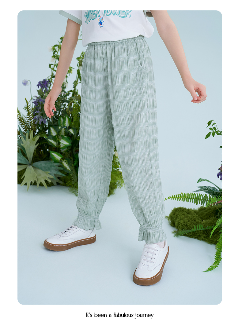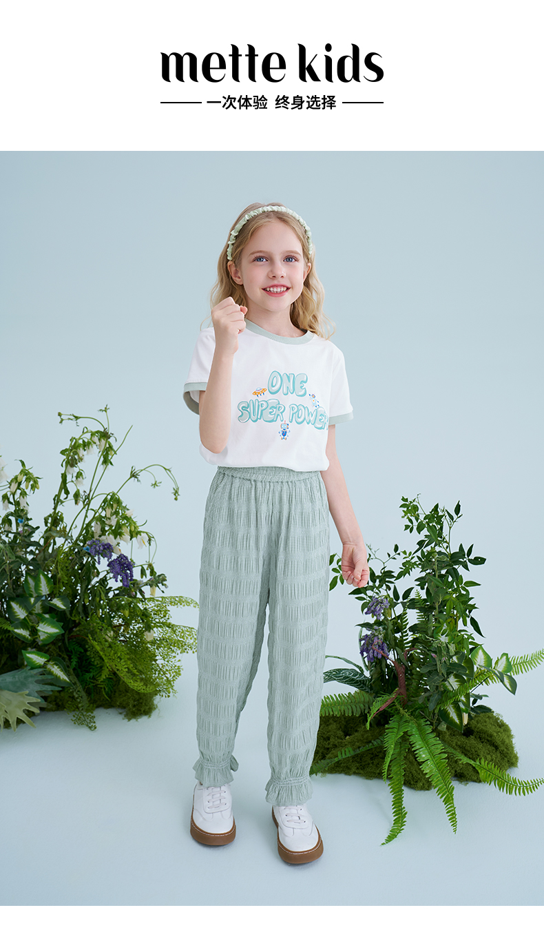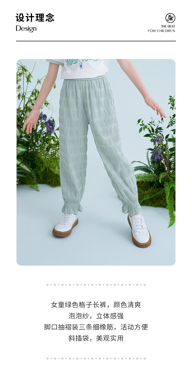 mettekids儿童裤子2025夏季新款女童防蚊裤轻薄透气绿色束脚裤