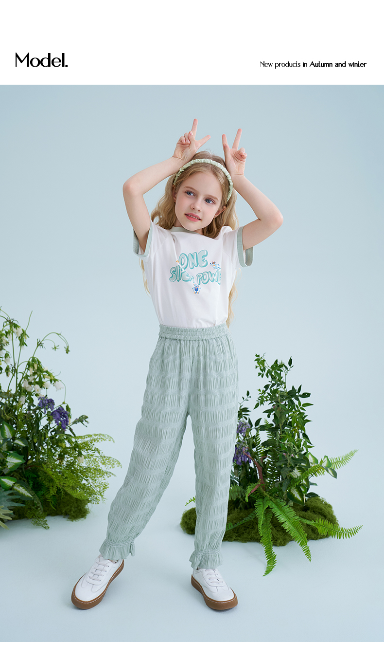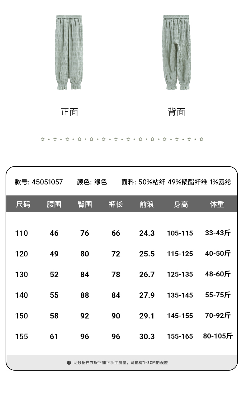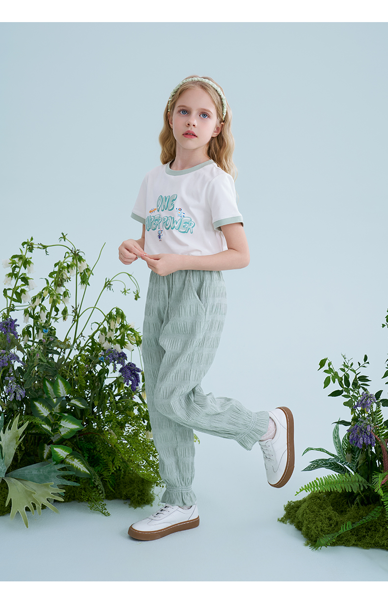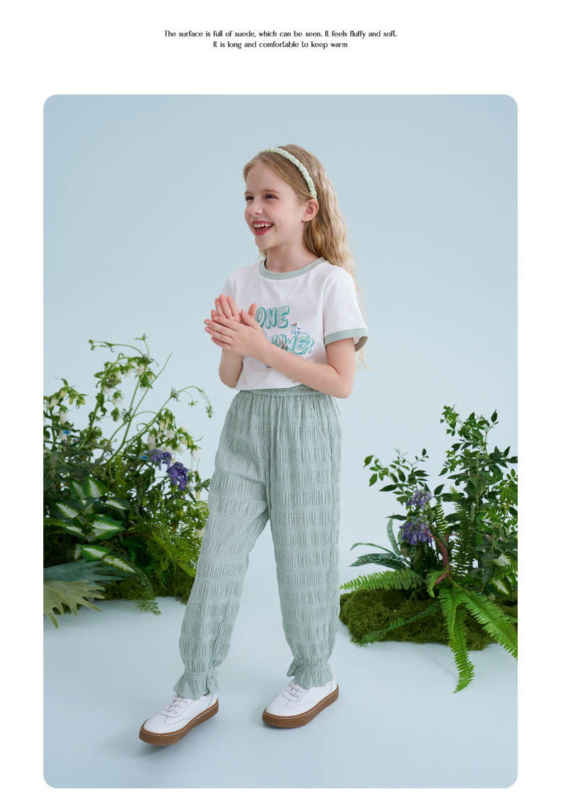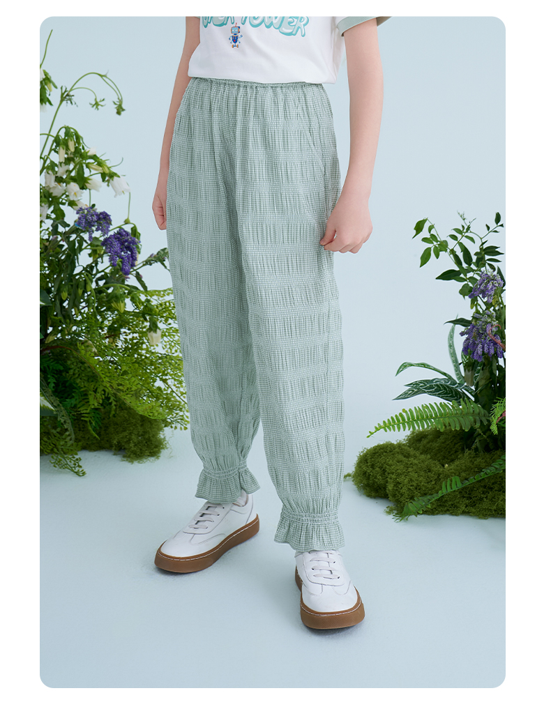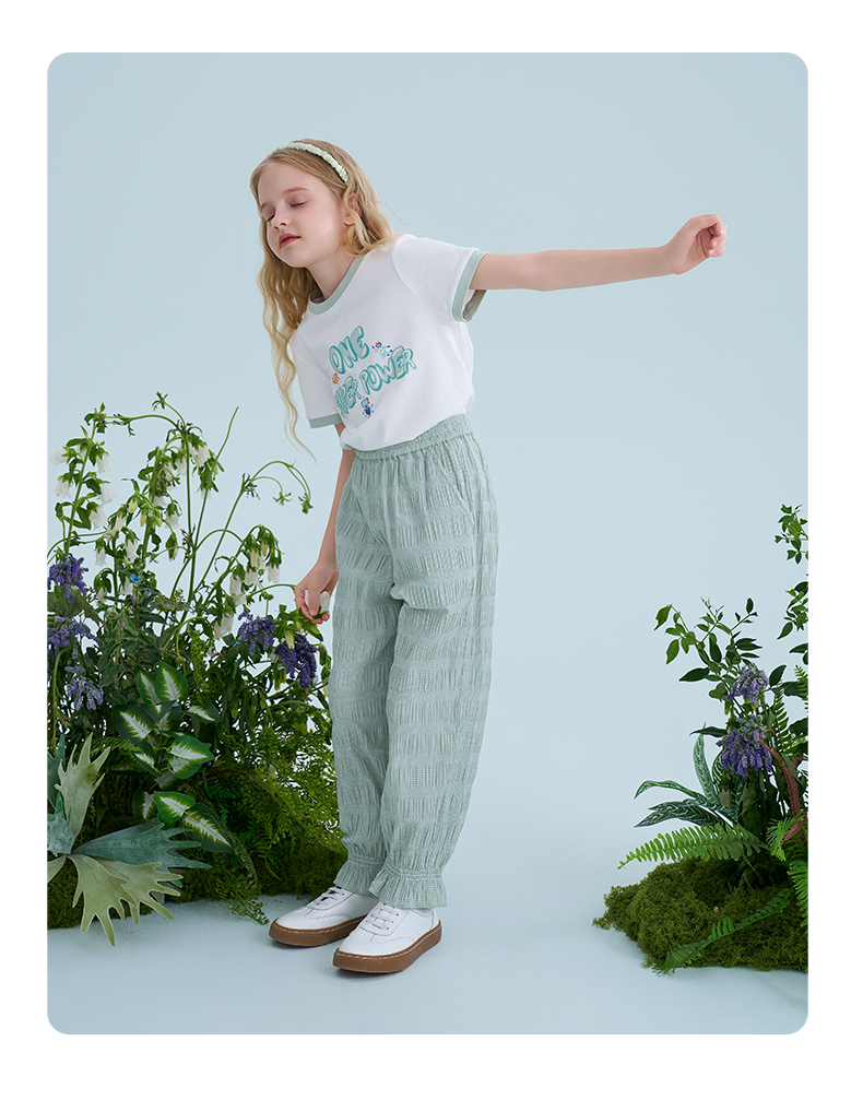 mettekids儿童裤子2025夏季新款女童防蚊裤轻薄透气绿色束脚裤