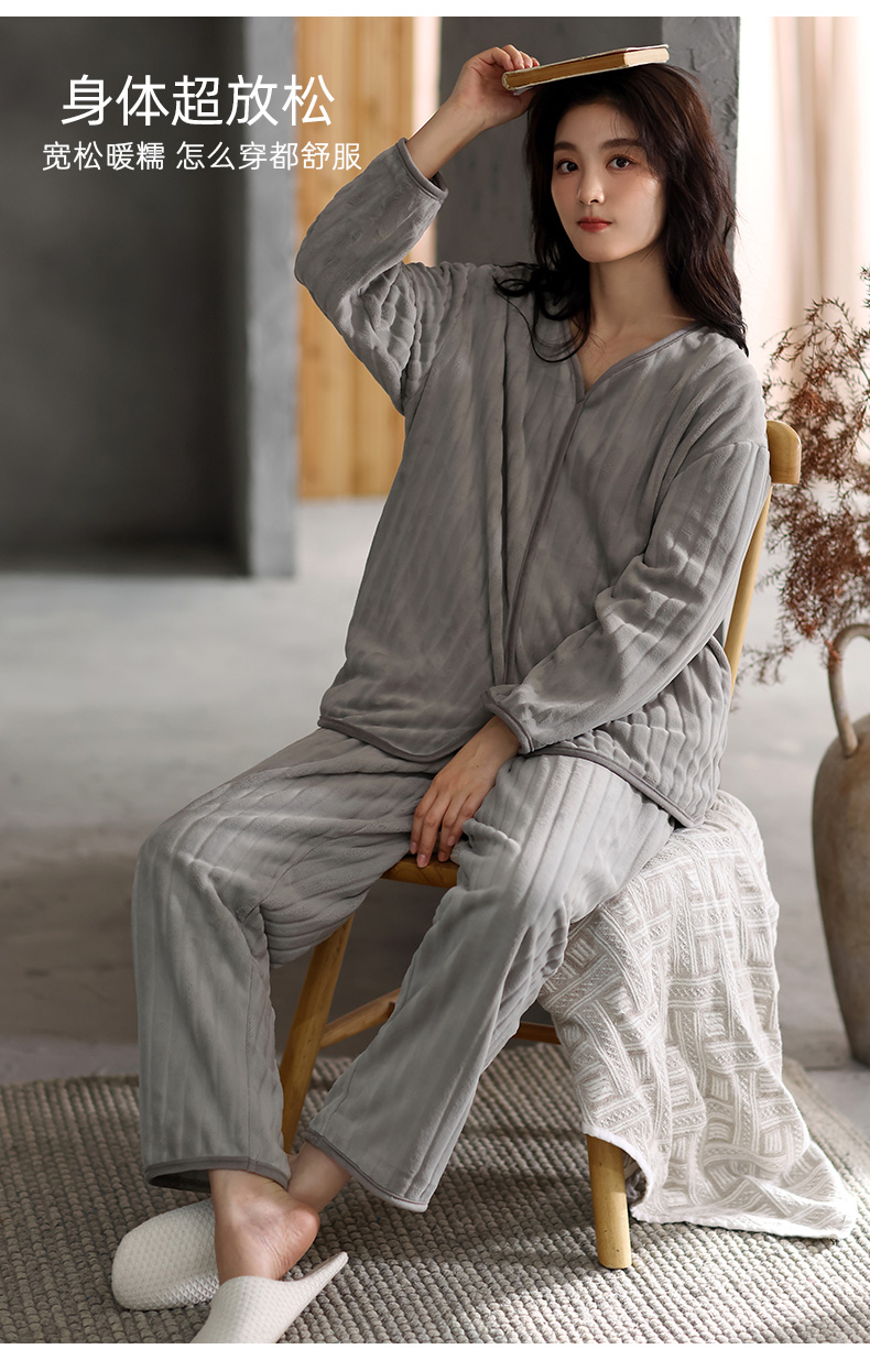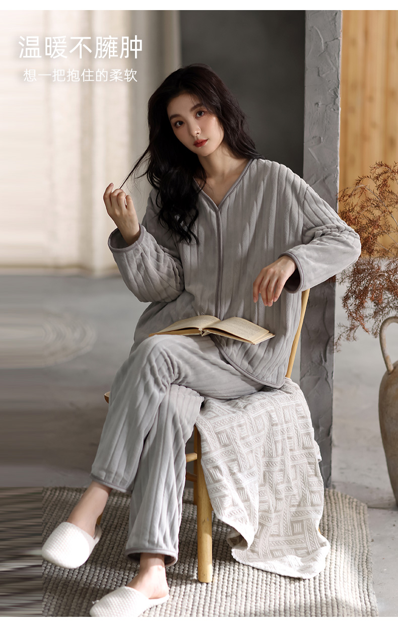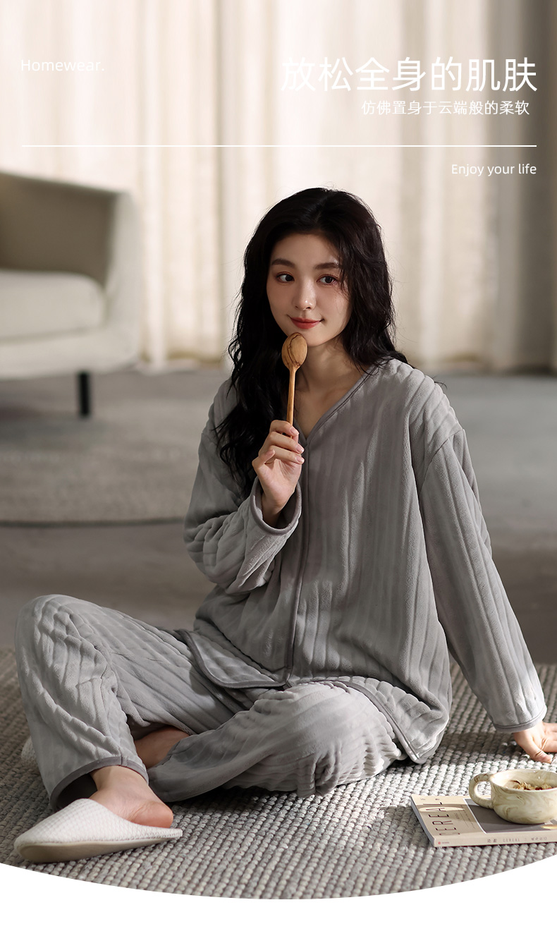 【冬季迎新】洁丽雅大码女士剪花绒国风家居服舒适加厚睡衣套装女