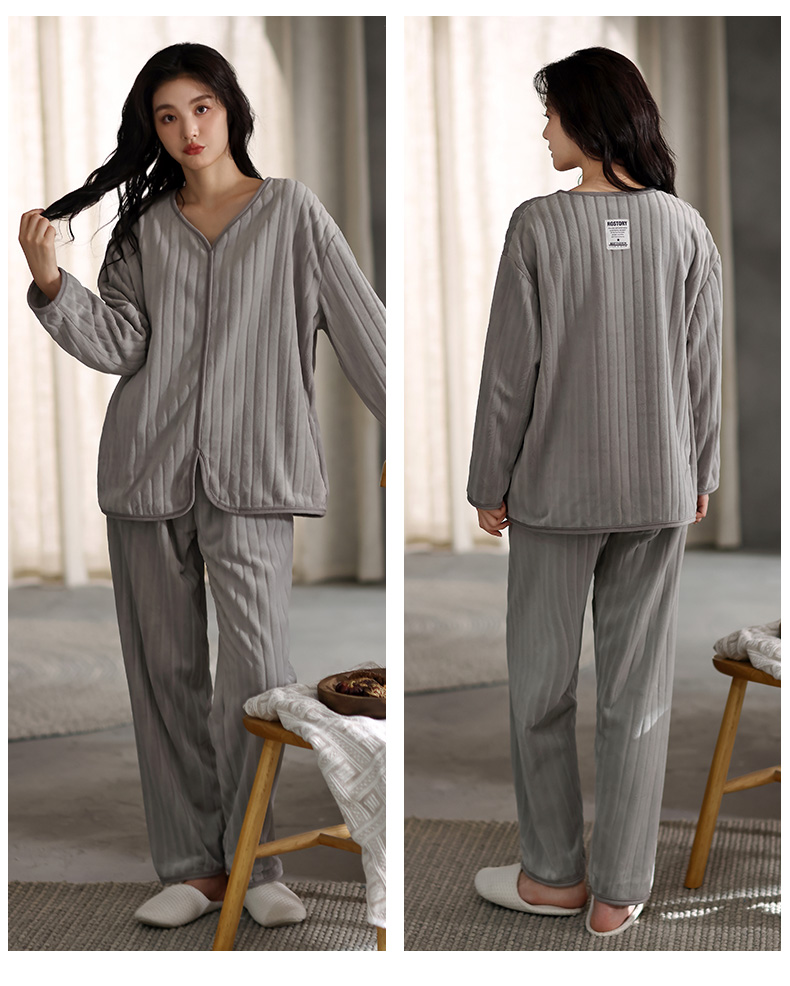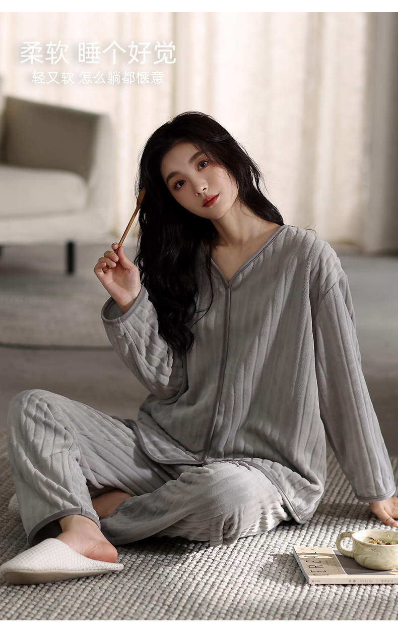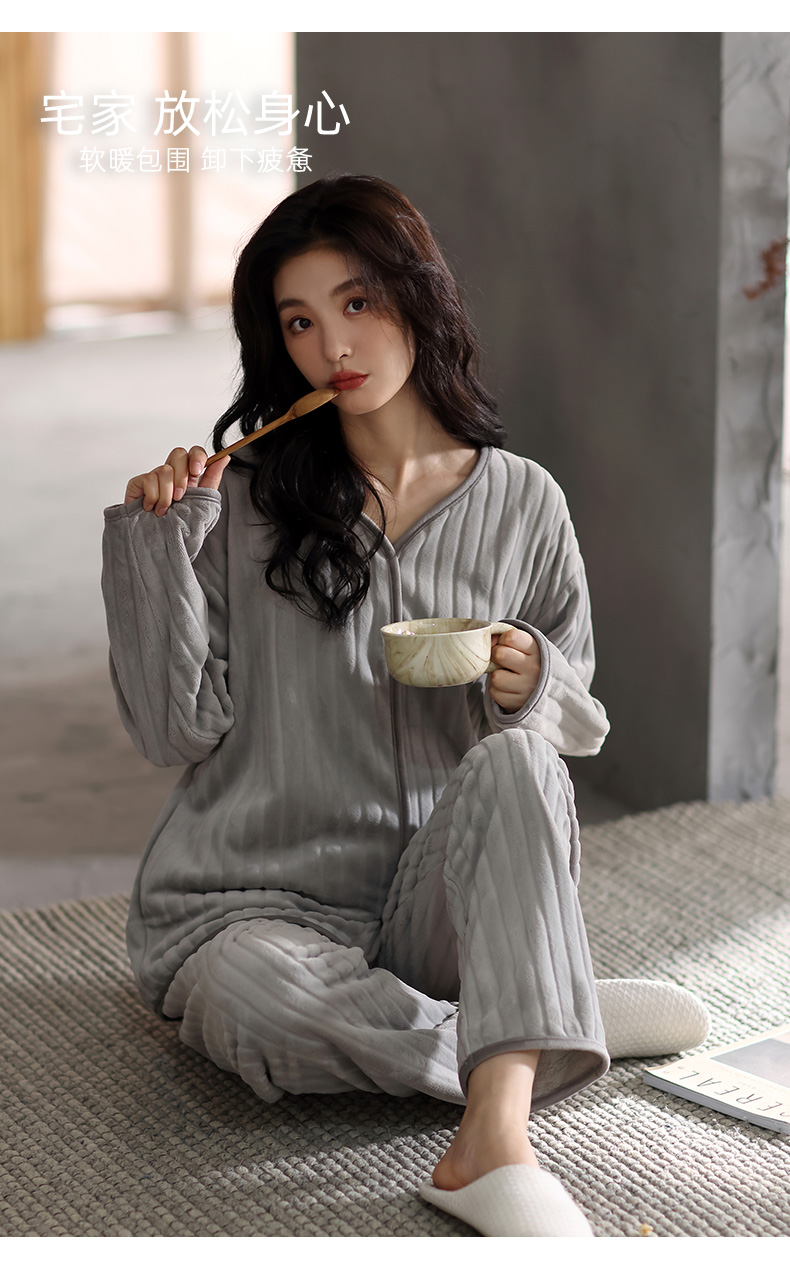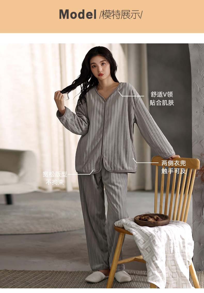 【冬季迎新】洁丽雅大码女士剪花绒国风家居服舒适加厚睡衣套装女