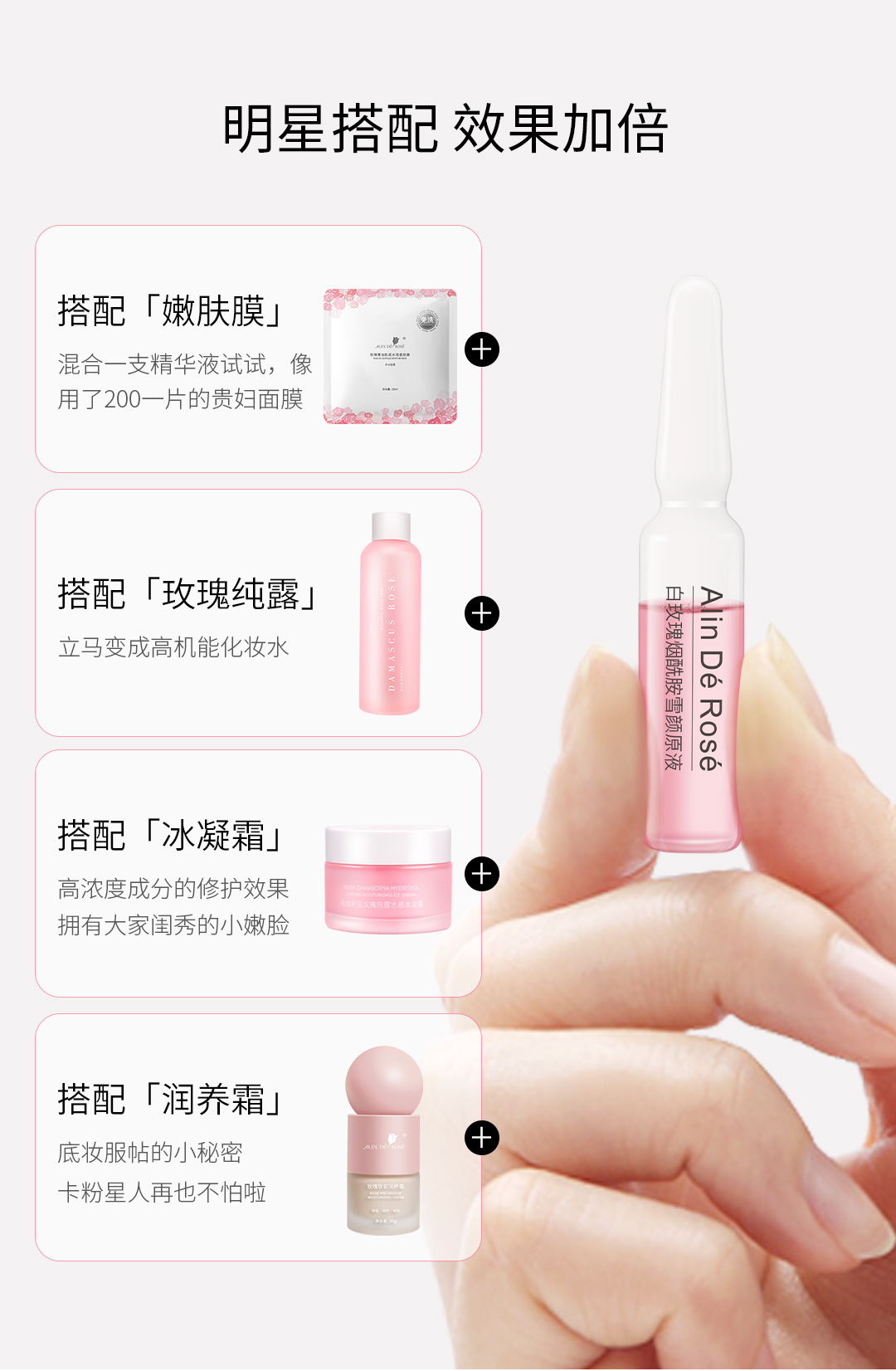【下单送变色唇膏1支+嫩肤膜2片+保湿面膜2片】玫瑰奢护精华4件套 深层滋润 锁水保湿