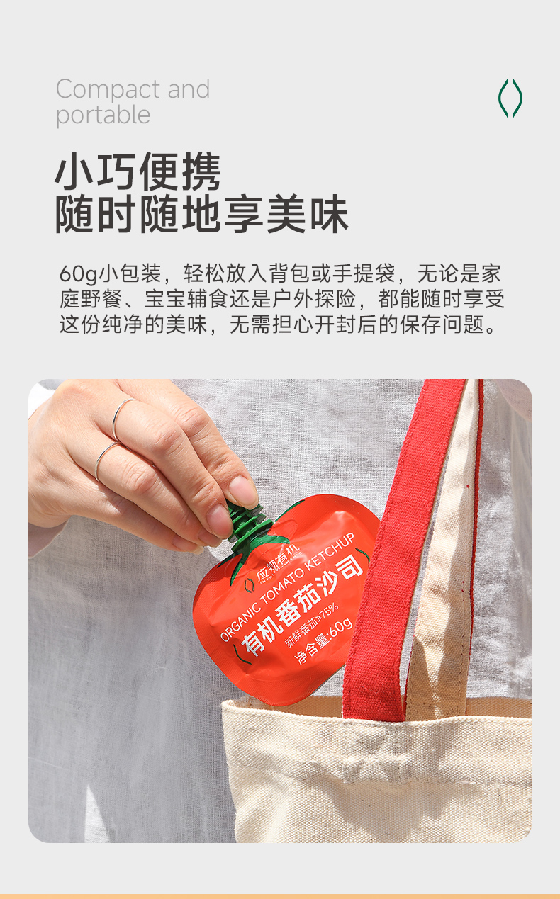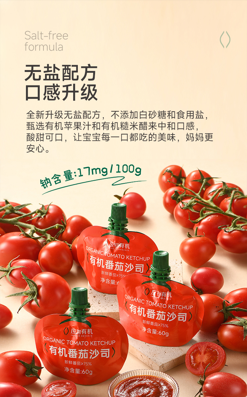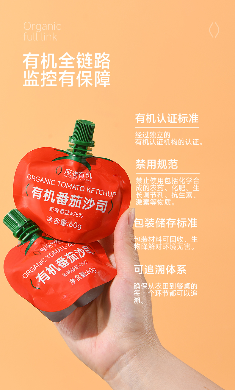【宝宝爱吃】应物有机番茄酱沙司 儿童家用挤压袋小包装西红柿酱60g*3袋