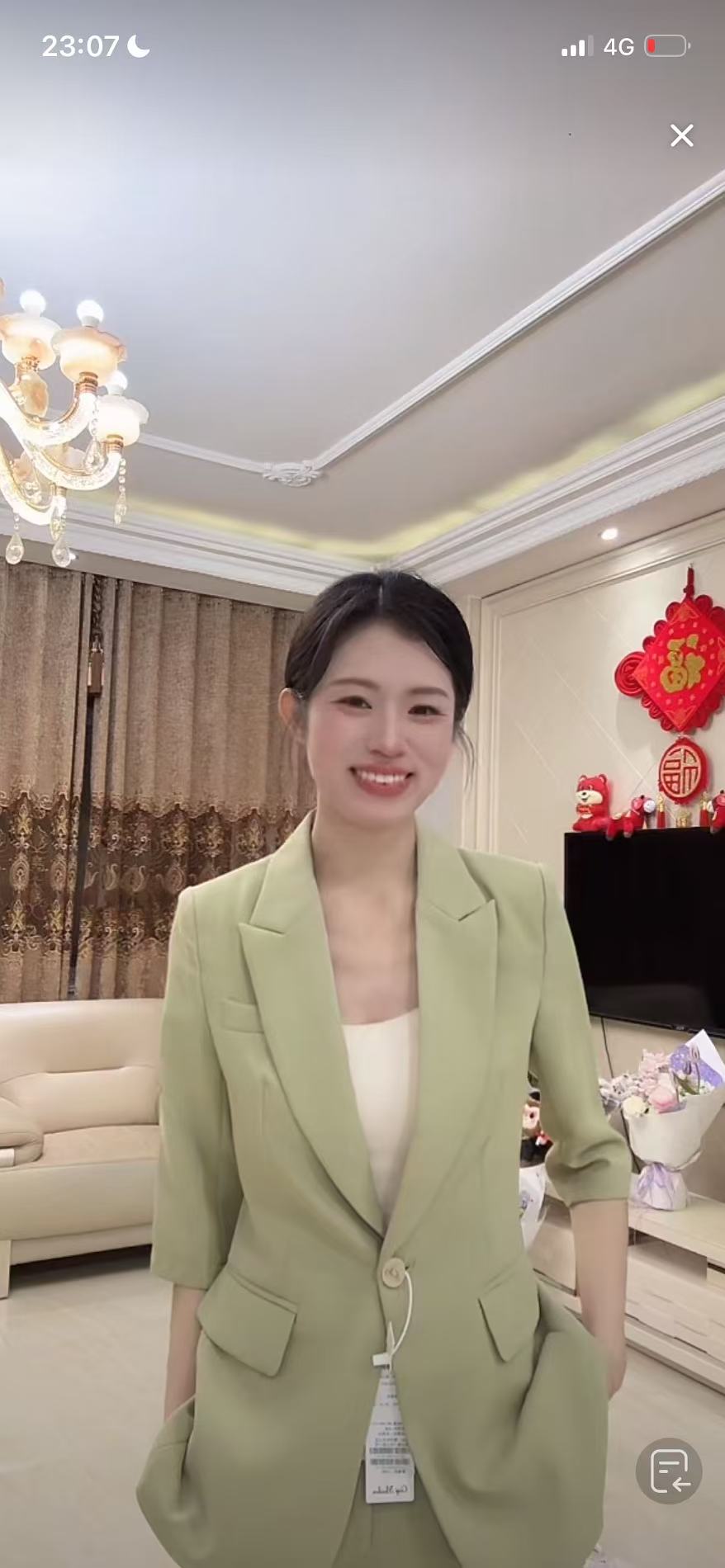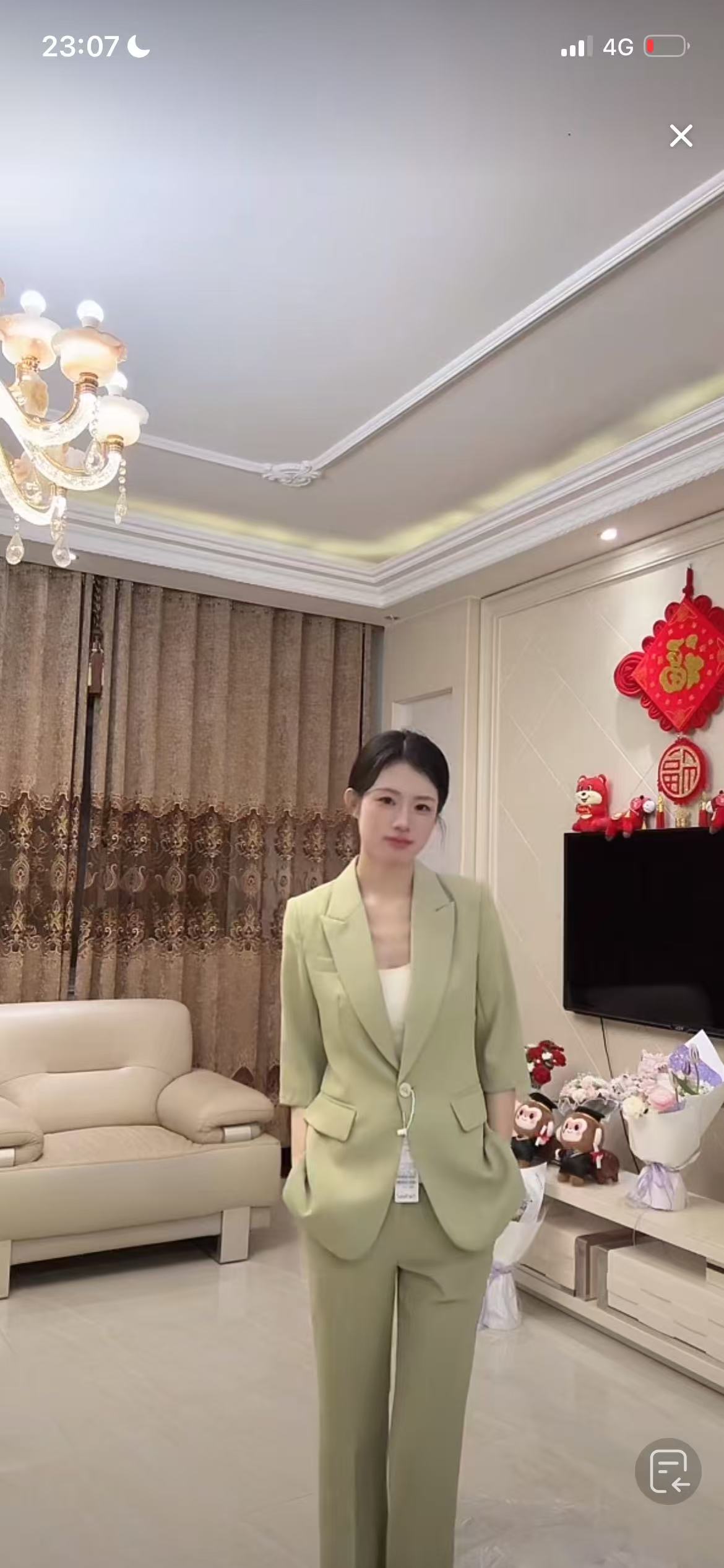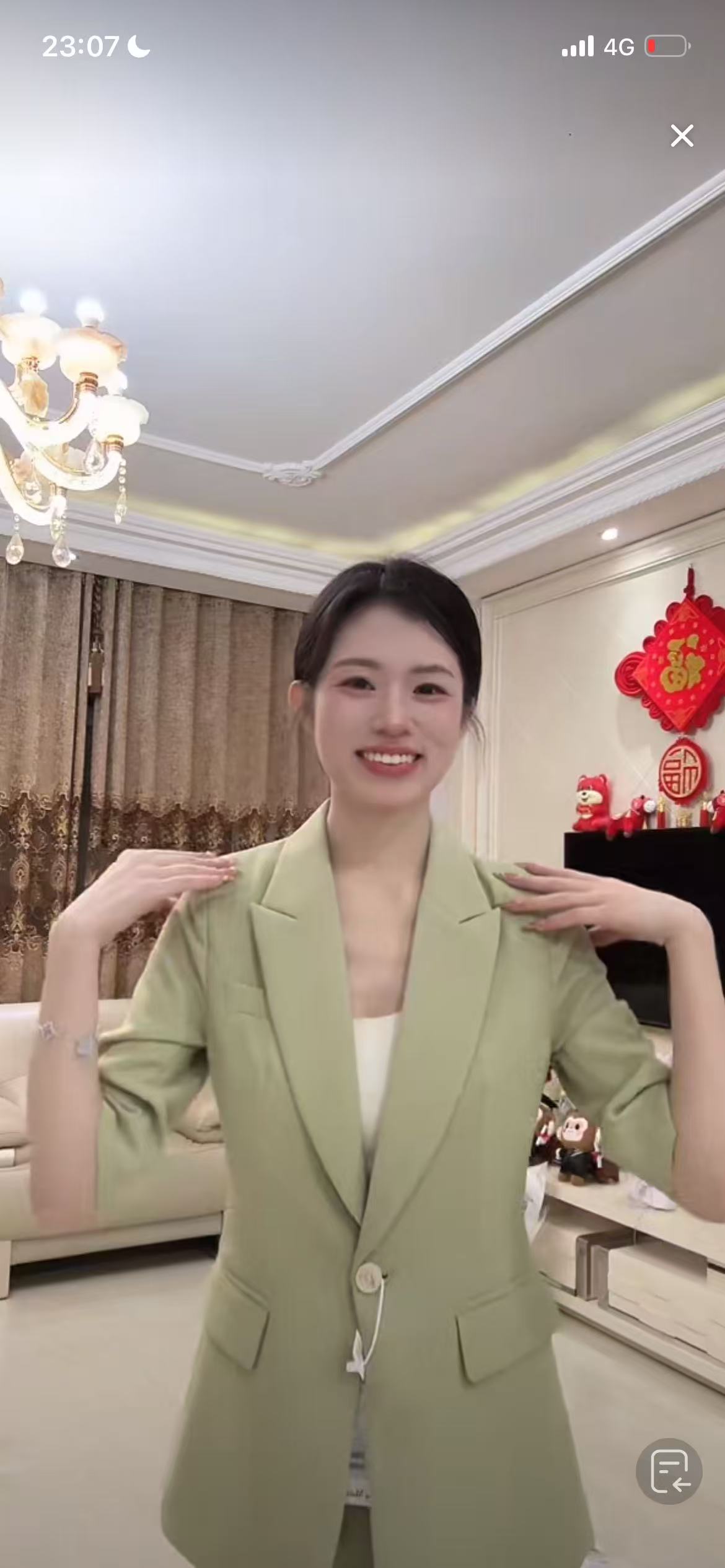 法小曼*子珍新款开春绿色七分袖套装清晰高级显瘦西服套装