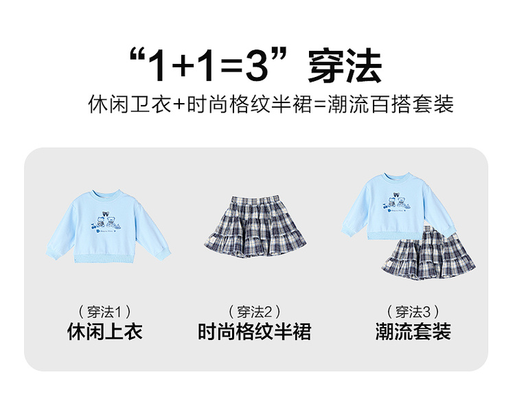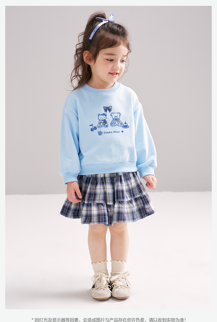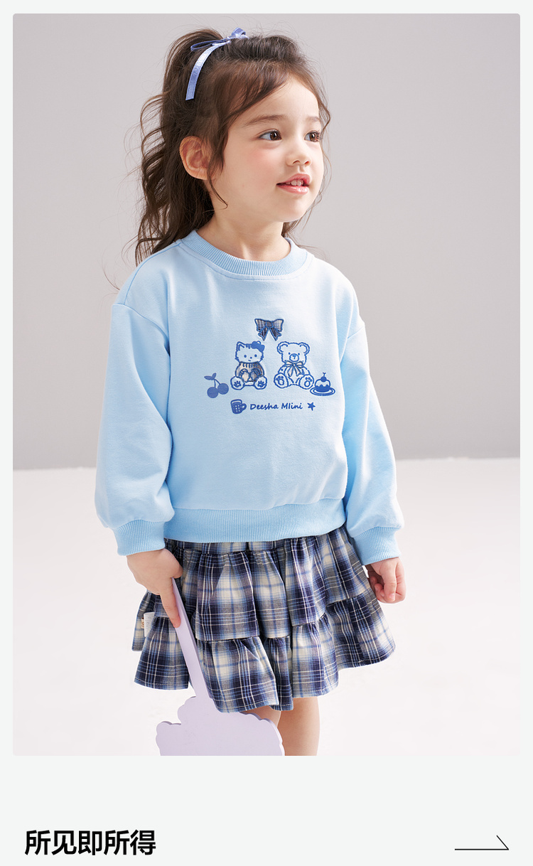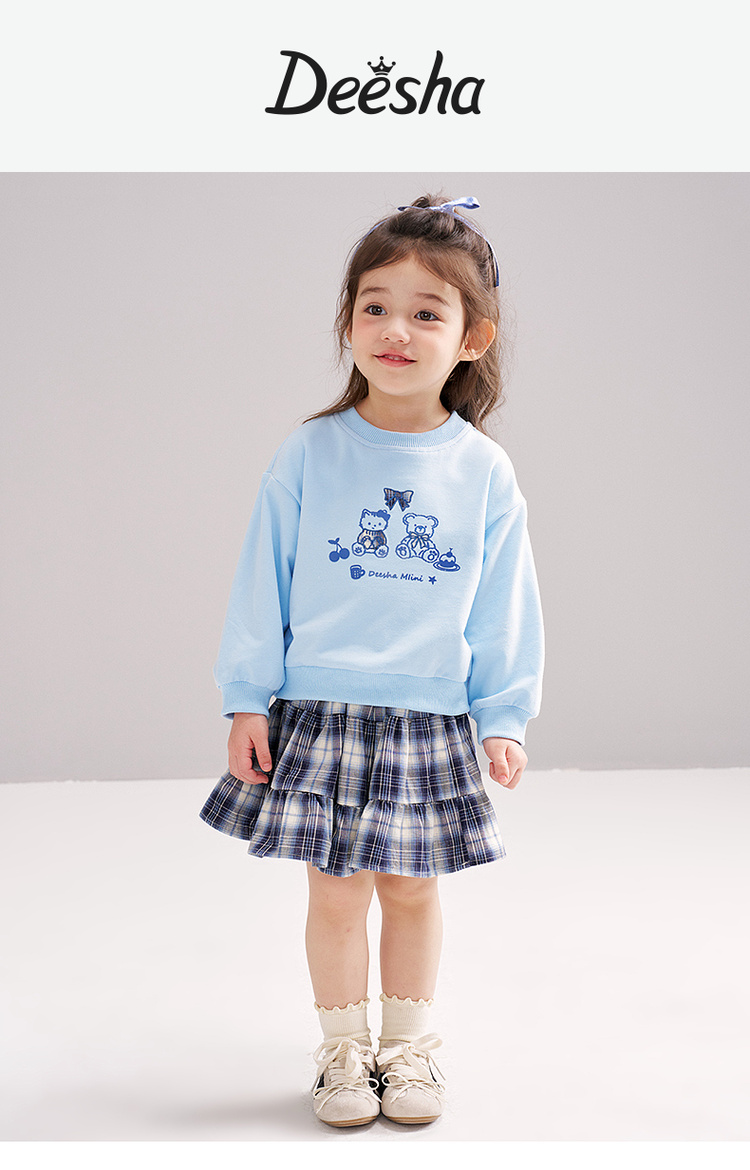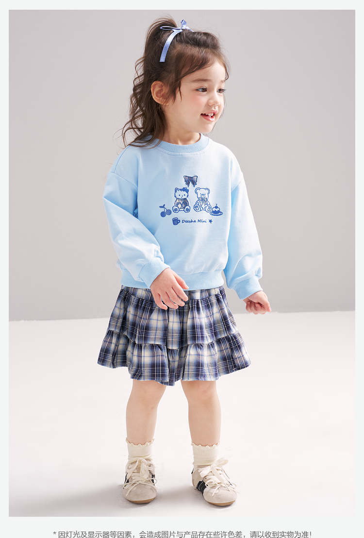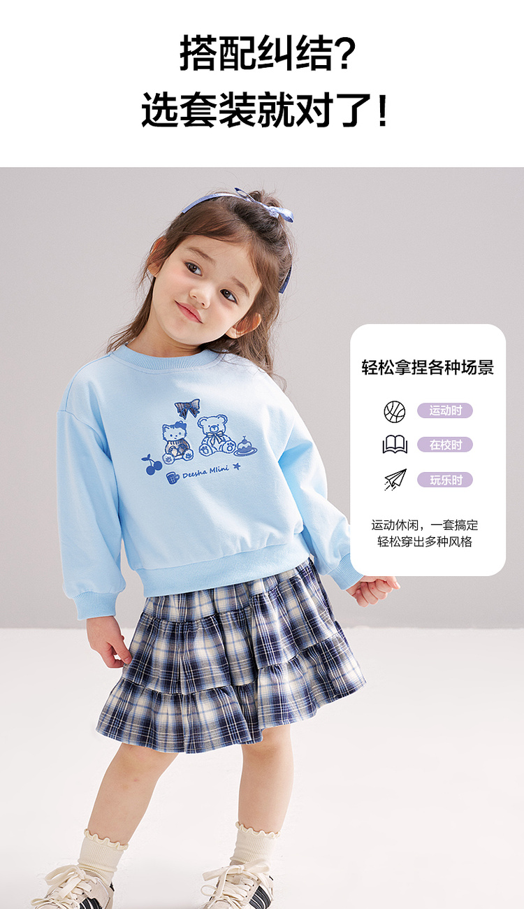 笛莎Deesha 2026春季女童休闲卫衣时尚格纹半裙套装