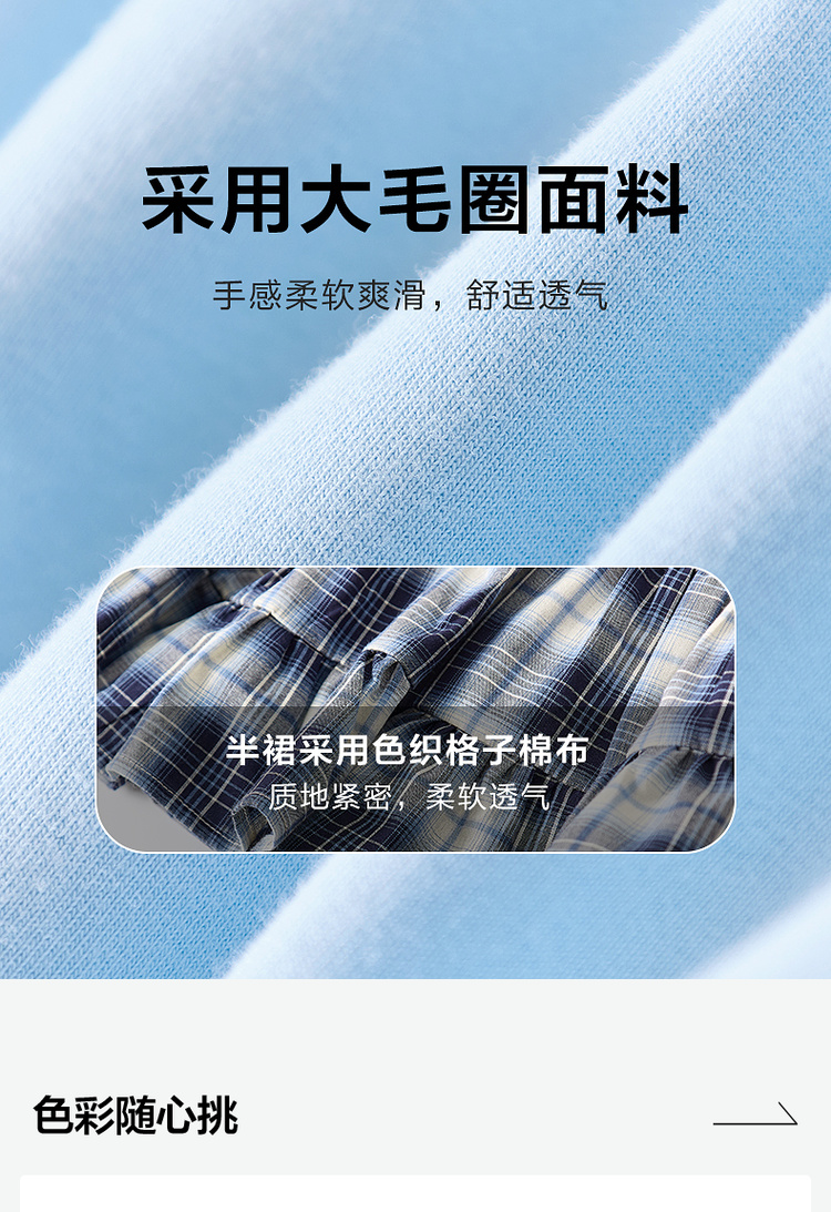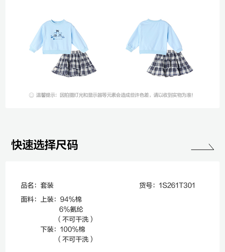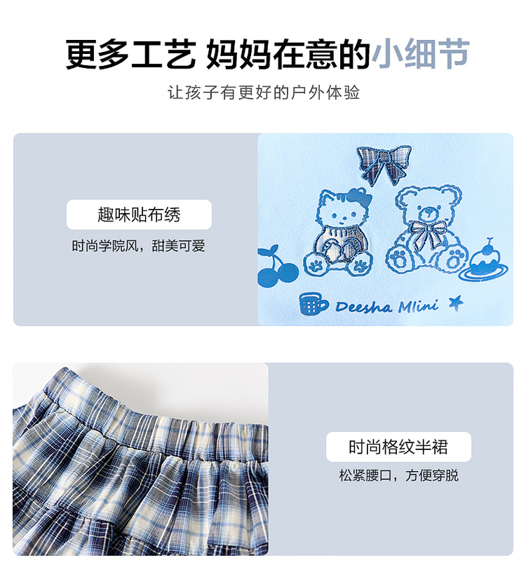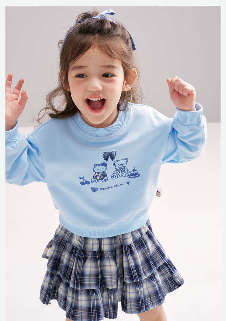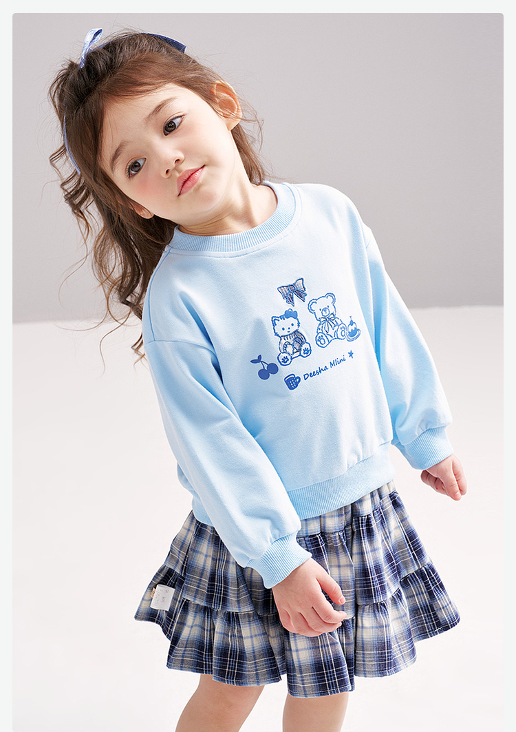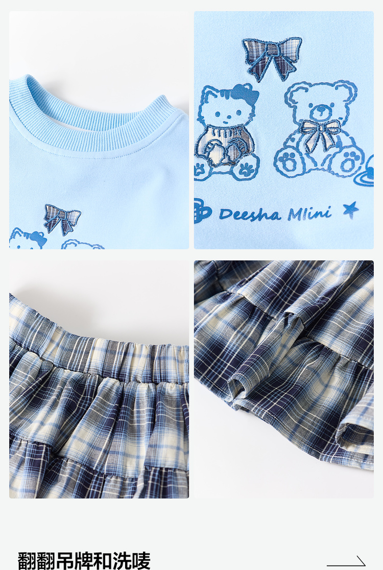 笛莎Deesha 2026春季女童休闲卫衣时尚格纹半裙套装