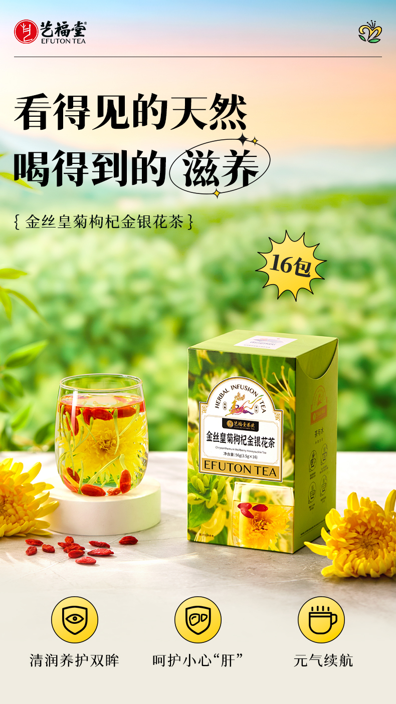 艺福堂金丝皇菊枸杞金银花茶56g/盒(3.5g*16)