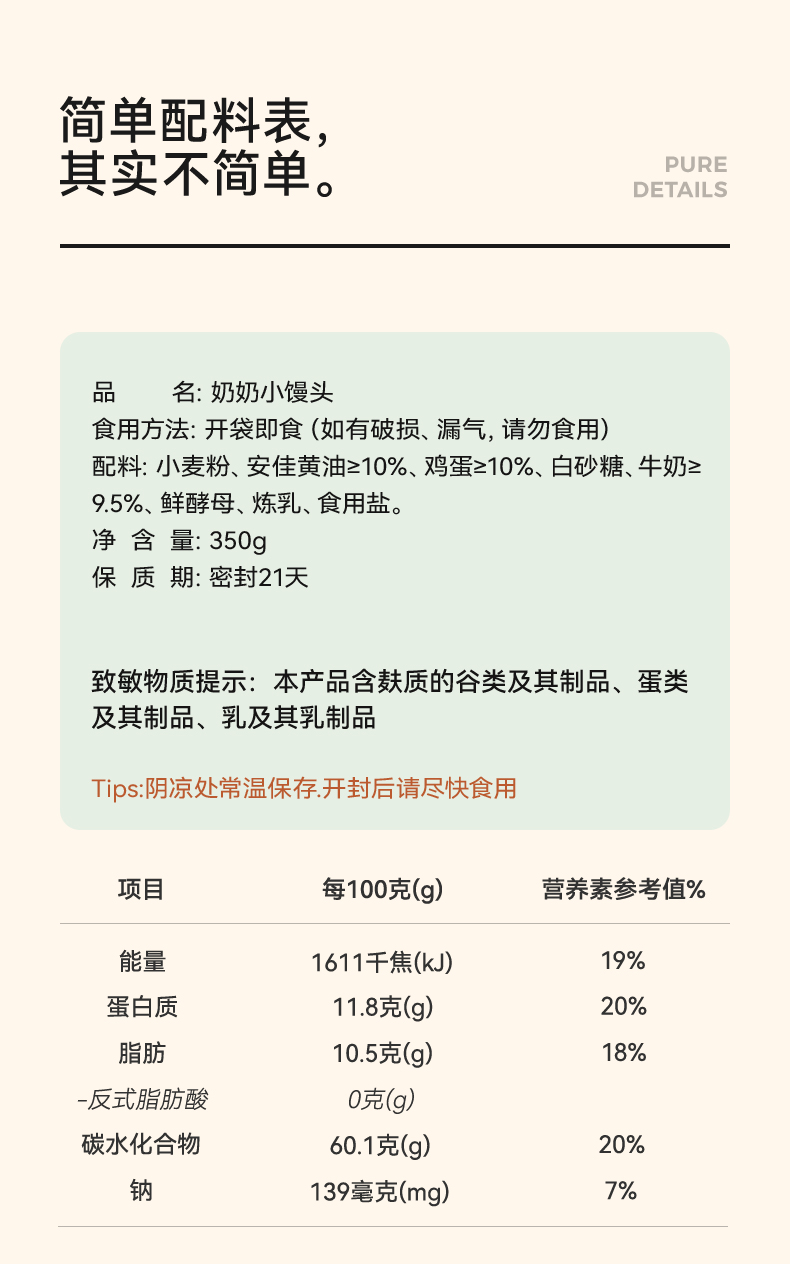 【产品配料】小麦粉、安佳黄油≥10%、鸡蛋≥10%、白砂糖、牛奶≥9.5%、鲜酵母、炼乳、食用盐