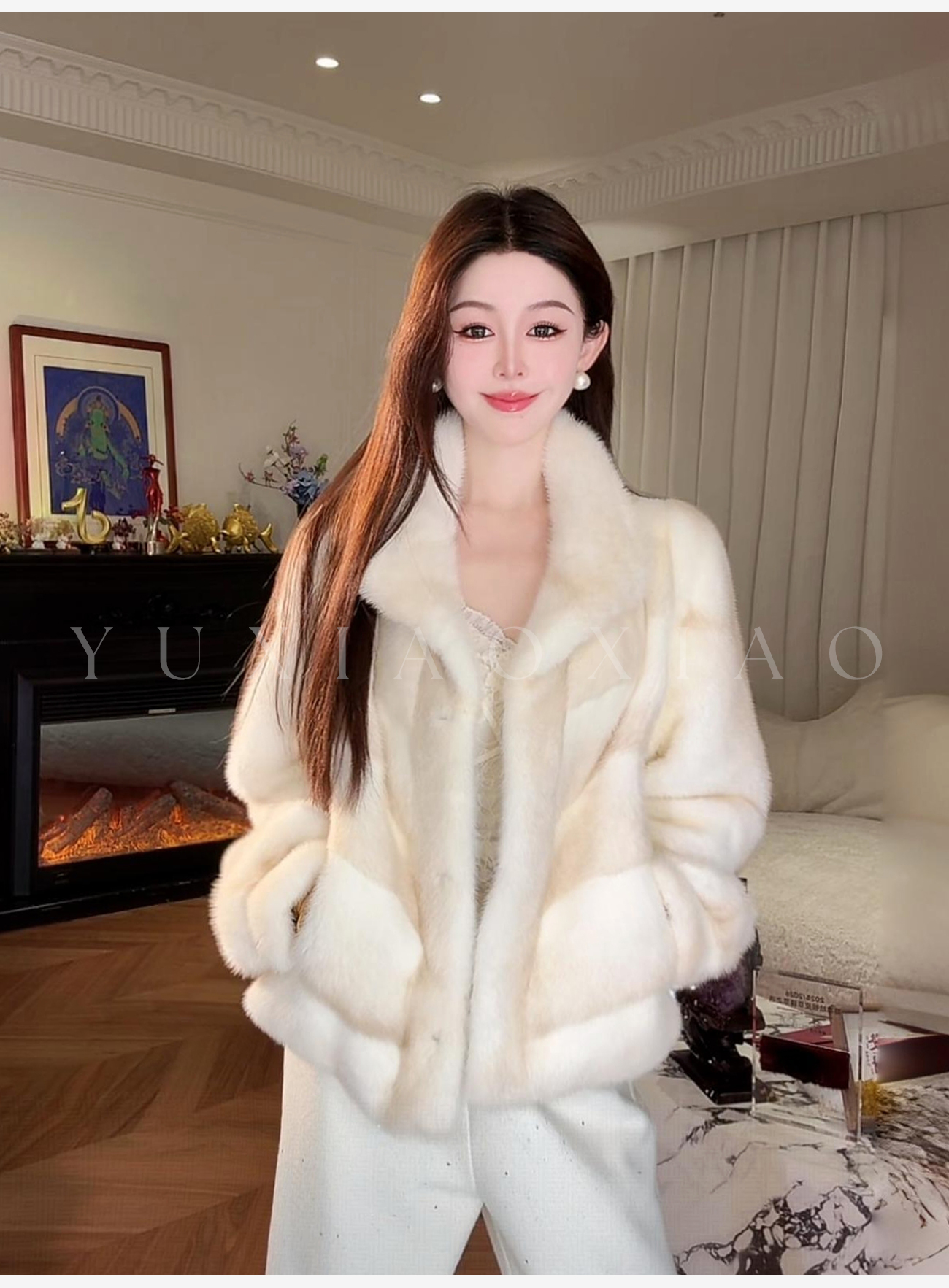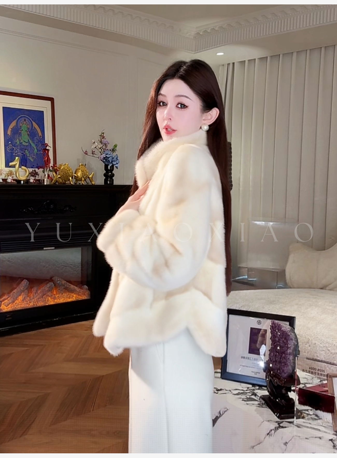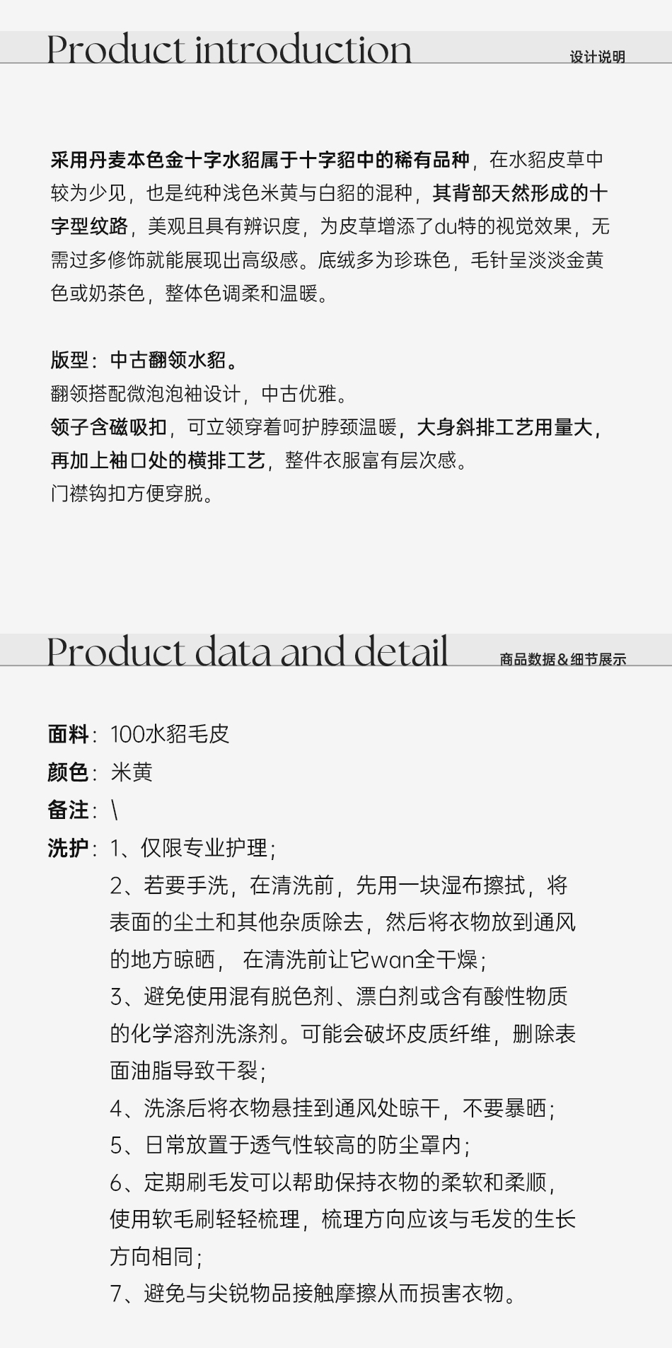 余潇潇【皇家气度】稀有本色金十字貂泡泡袖中古翻领水貂毛皮草外套
