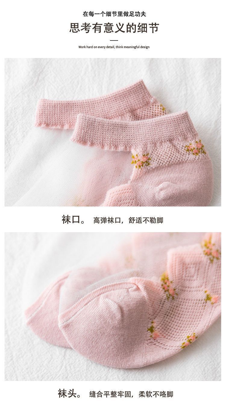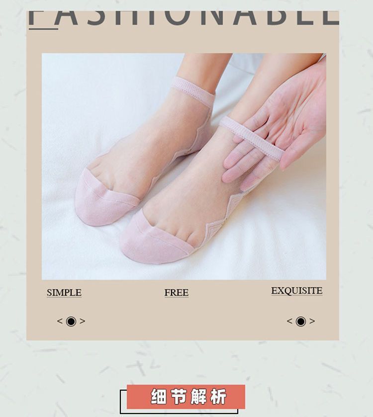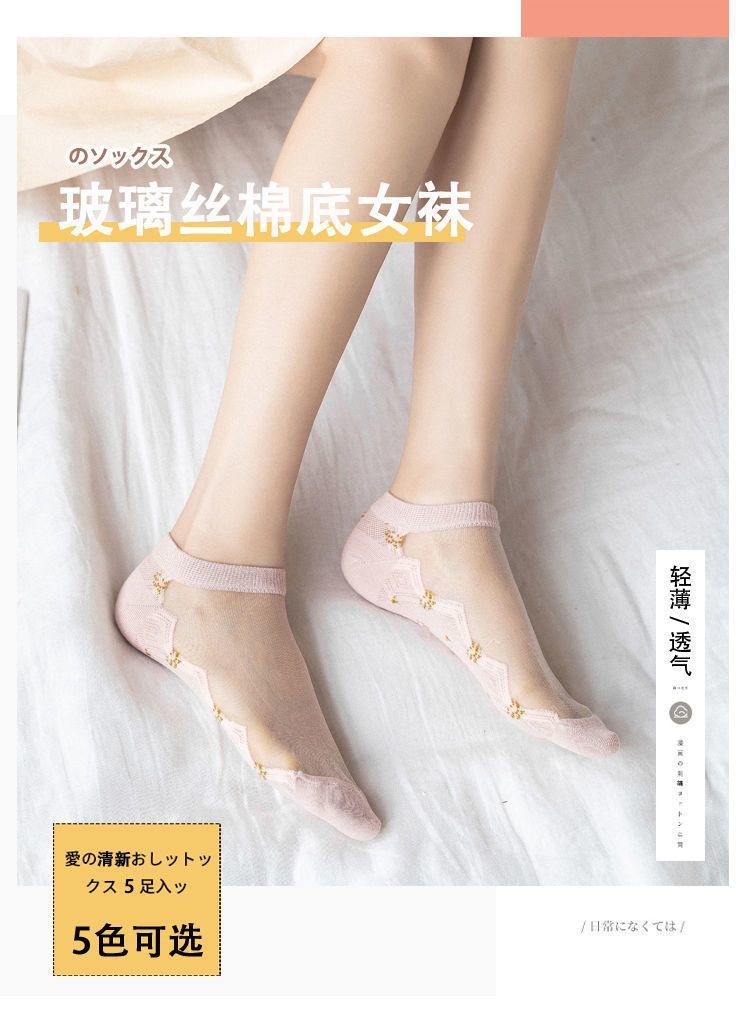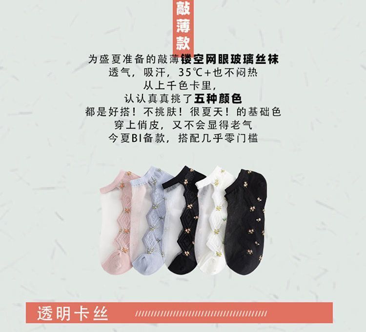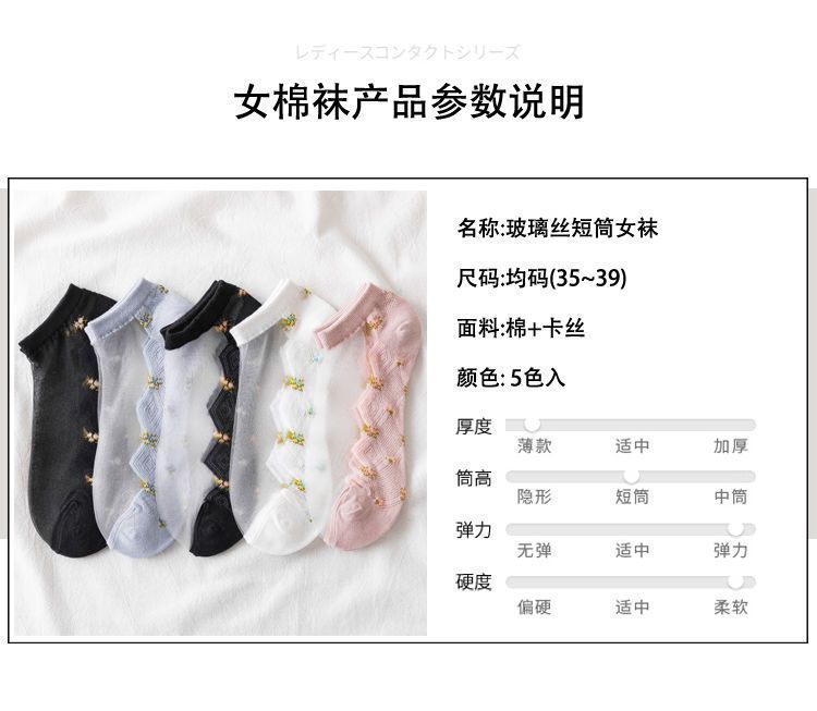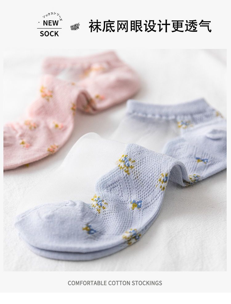 【舒适棉底,感受全新体验】袜子女夏季薄款韩版短袜ins玻璃水晶丝袜女透明棉底船袜防臭透气