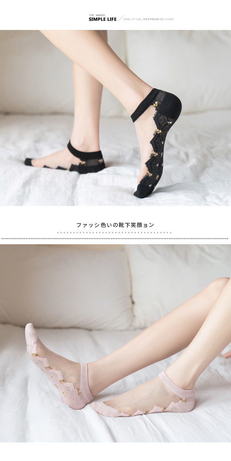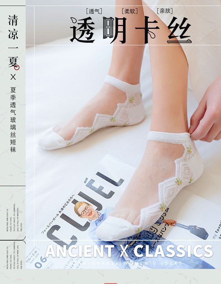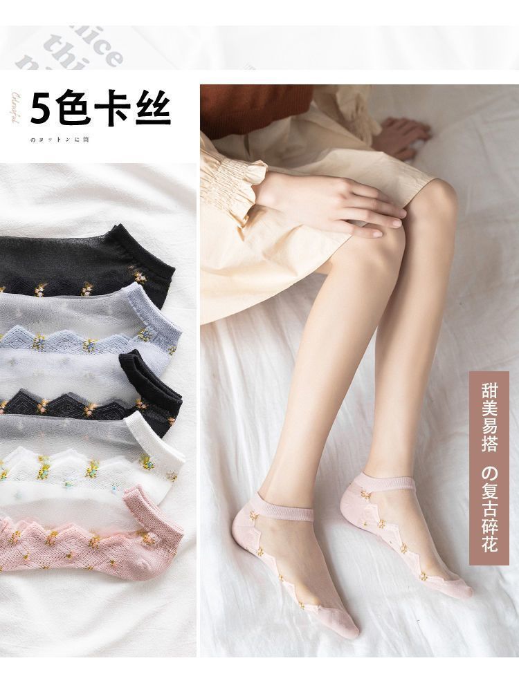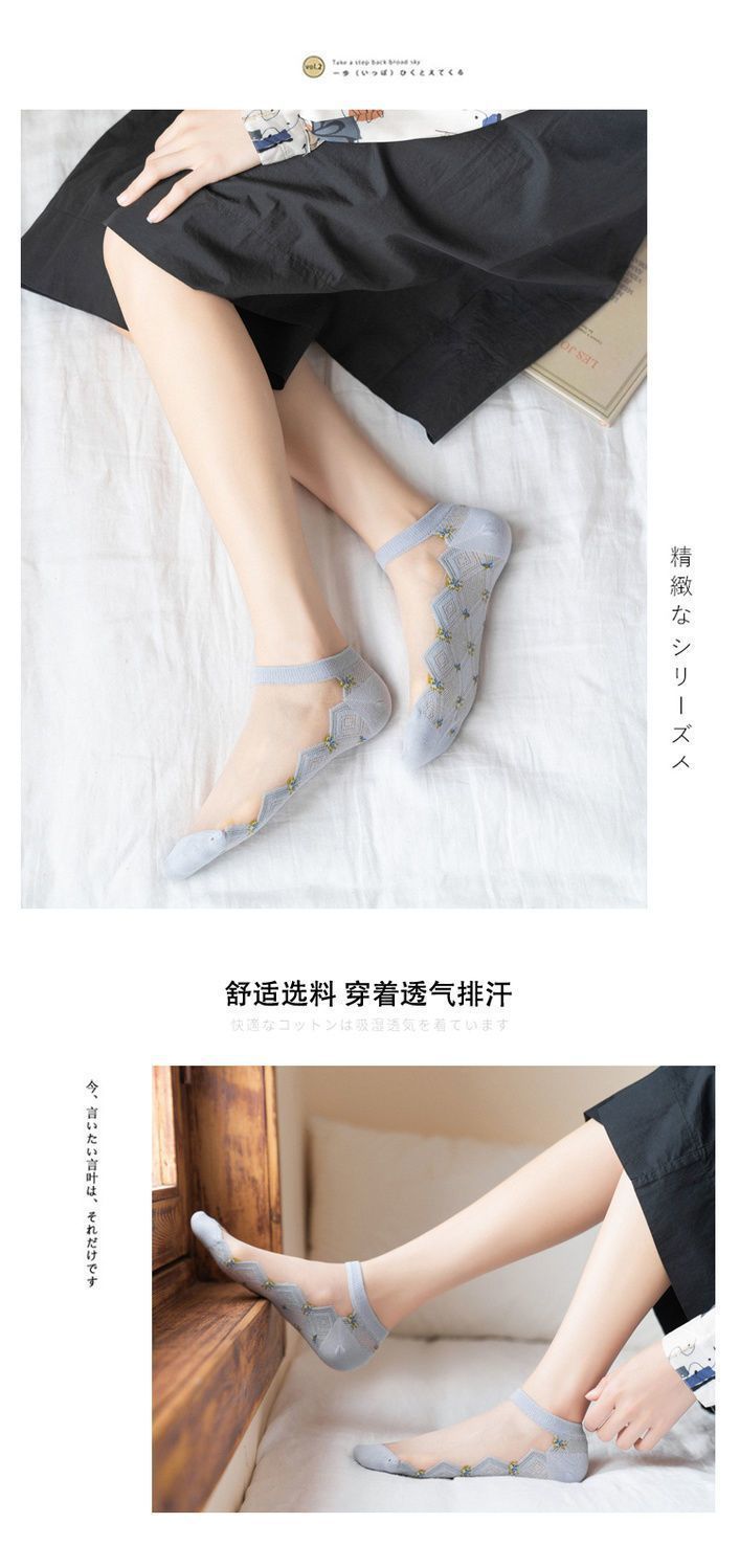 【舒适棉底,感受全新体验】袜子女夏季薄款韩版短袜ins玻璃水晶丝袜女透明棉底船袜防臭透气
