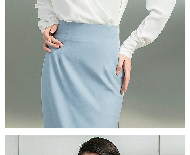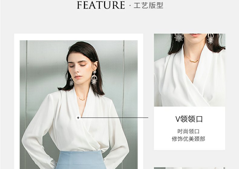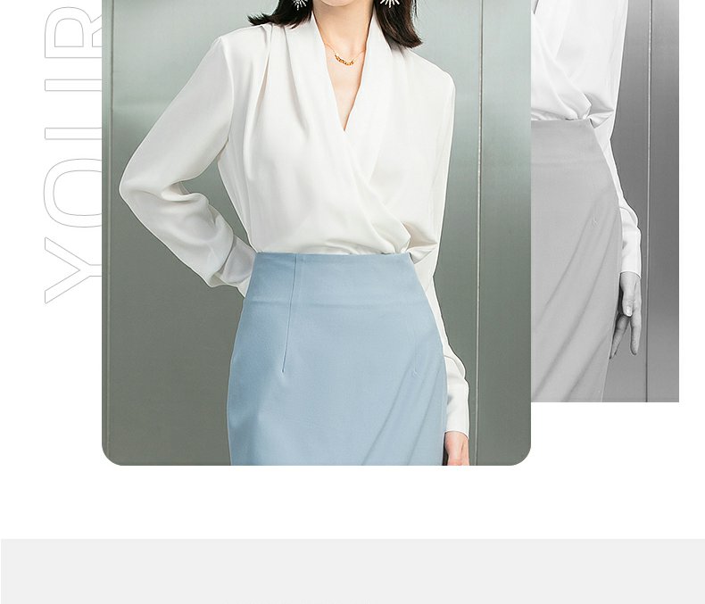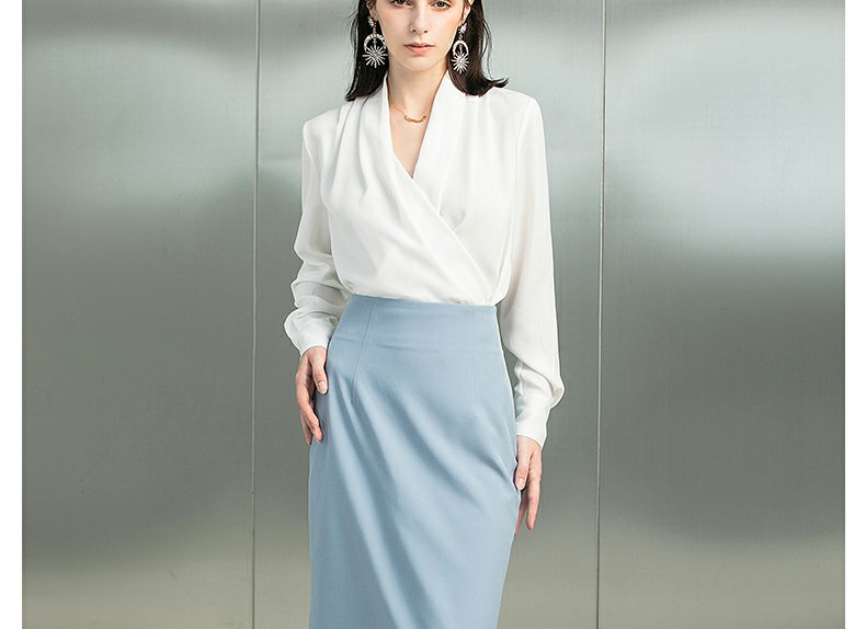IWY/时尚白衬衫女V领气质优雅职业衬衣白色半裙OL女装春秋打底衫223161B1