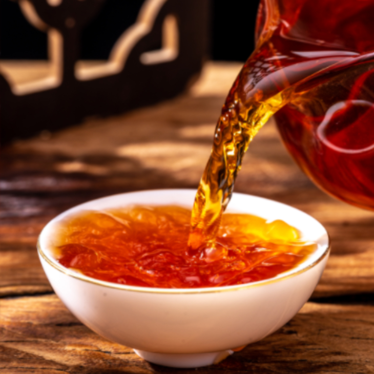 汤色红透亮,陈香浓郁,口感醇厚,厚实回甘,回味悠长。
