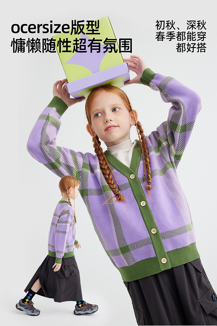 【咕噜日记】儿童学院风格纹开衫毛衣 PQMY2407