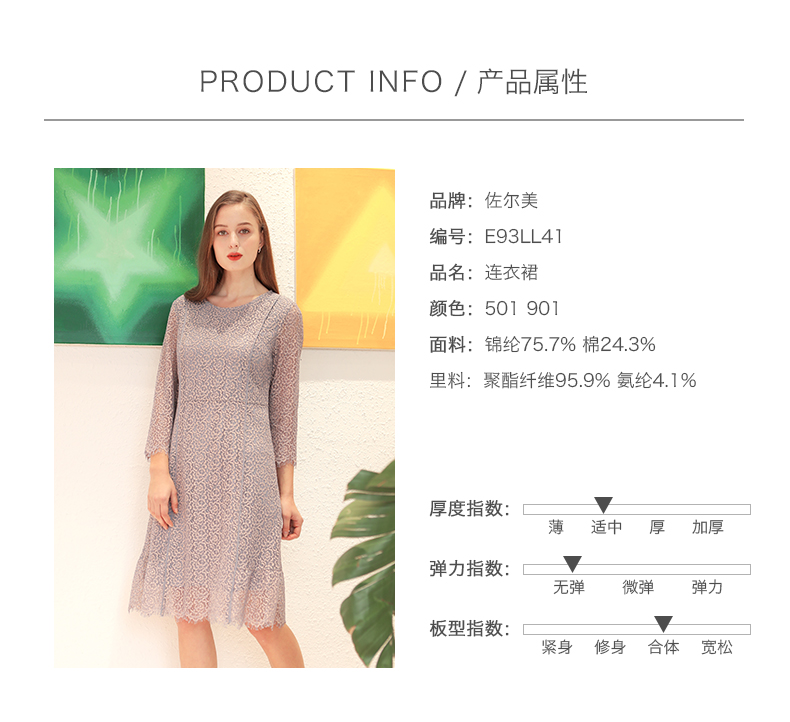 佐尔美春季新款女士连衣裙宽松收腰中长气质显瘦E93LL41
