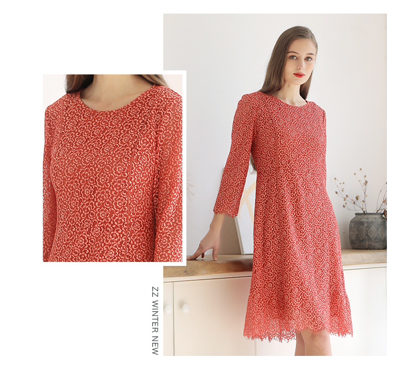 佐尔美春秋新品优雅气质休闲时尚复古波点收腰修身连衣裙E83LL43