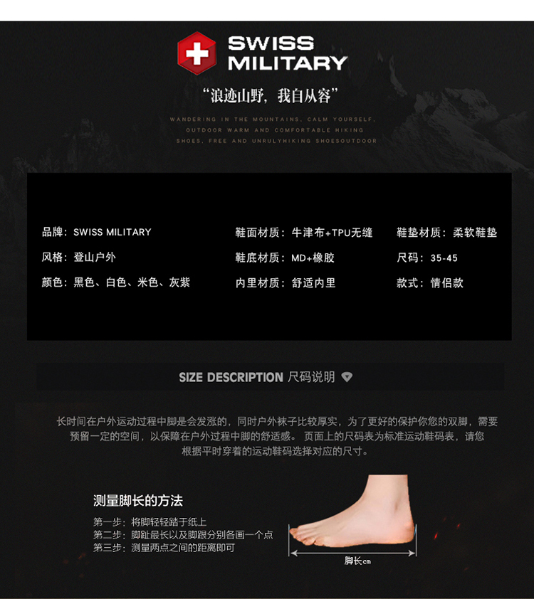 瑞士军工SWISS MILITARY运动品牌户外情侣款 户外舒适登山运动鞋/SM8321