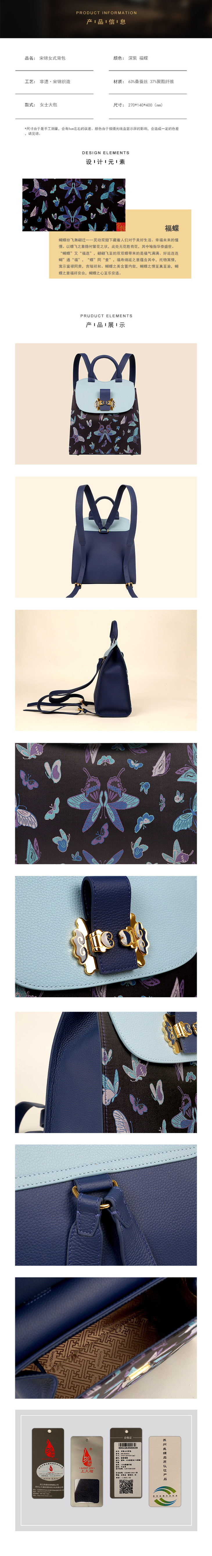 SAINTJOY/上久楷 宋锦女式背包 深紫·福蝶 BWS18A0501