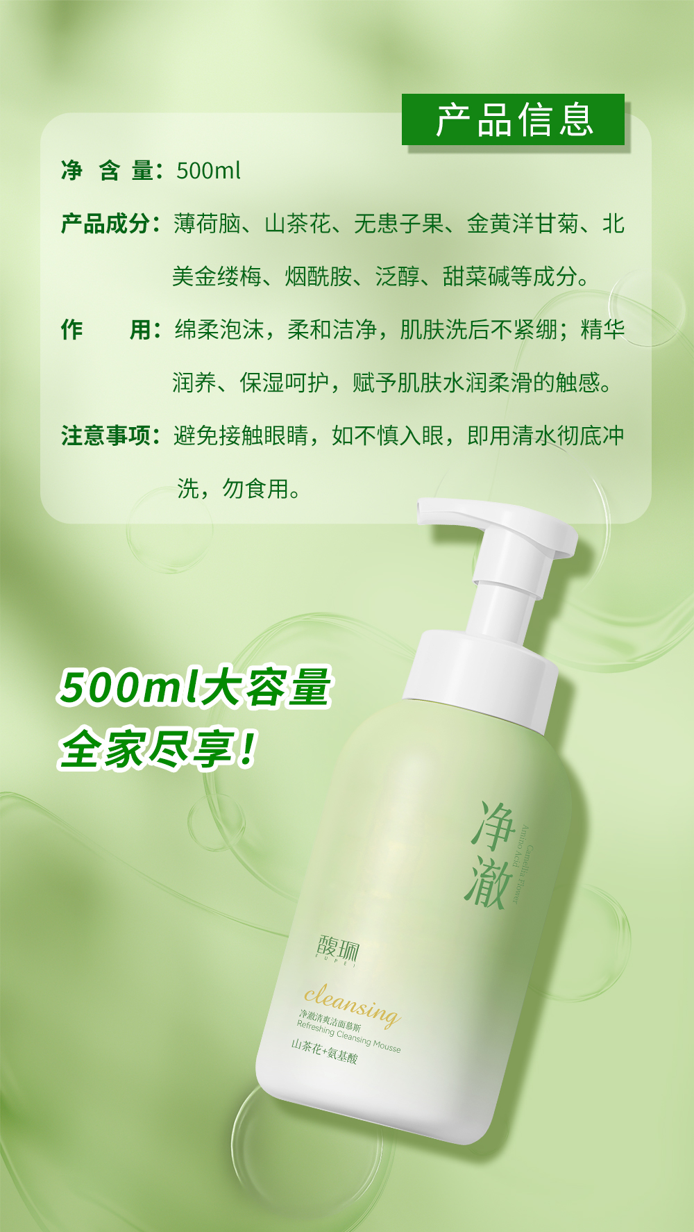 净澈清爽洁面慕斯500ml 深层清洁温和不刺激