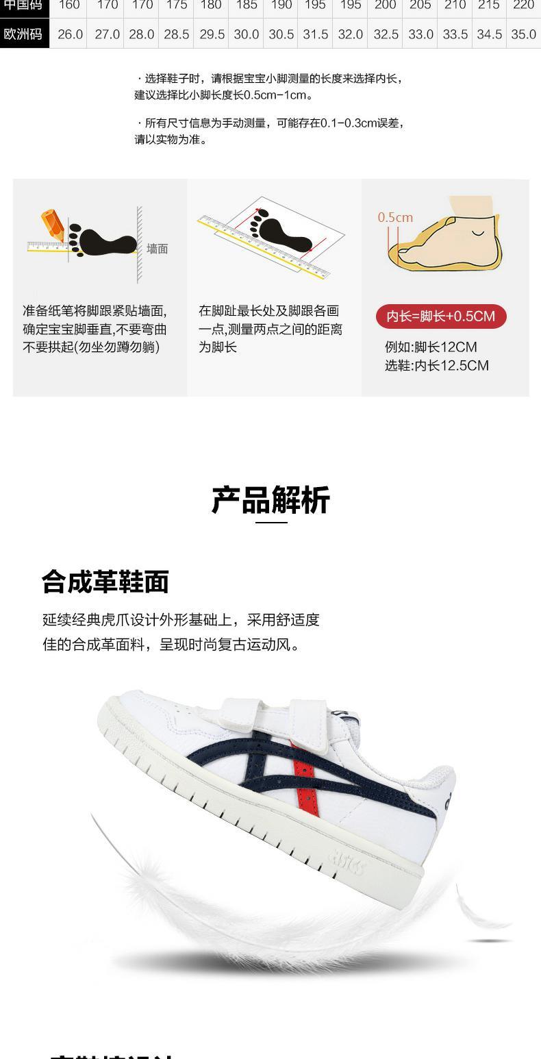 温馨提示:亚瑟士童鞋偏小一码,请对照尺码表鞋子内长拍相应码数