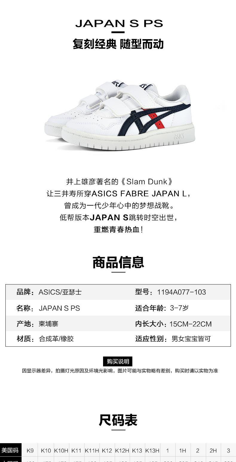 ASICS/亚瑟士童鞋男女儿童休闲经典板鞋3-7岁亲子日本品牌JAPAN S 27-35码